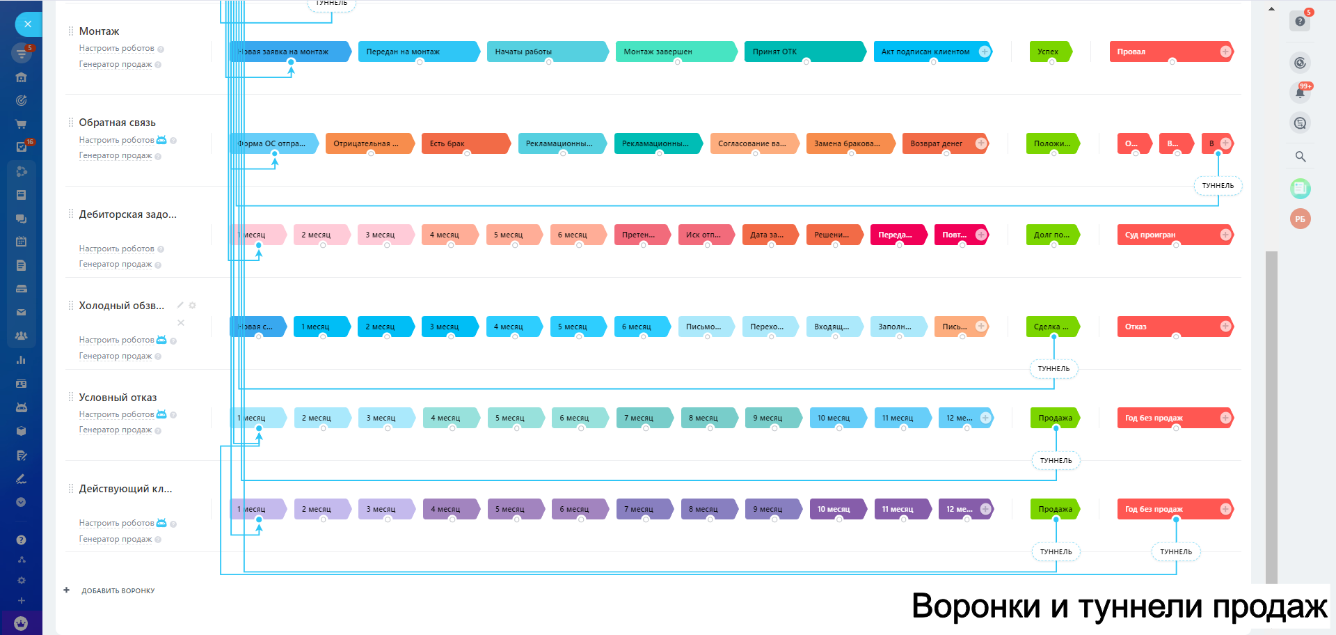 Маркетинговые автоворонки: воронка для обратной связи, дебиторской задолженности, автоворонка для потерянных клиентов, автоворонка для холодного обзвона, автоворонка для повторных продаж.