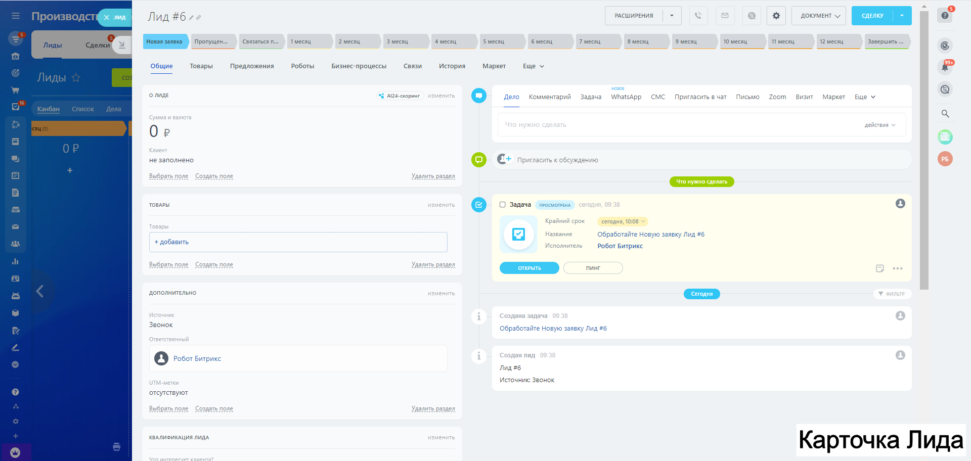 - Поле Название лида