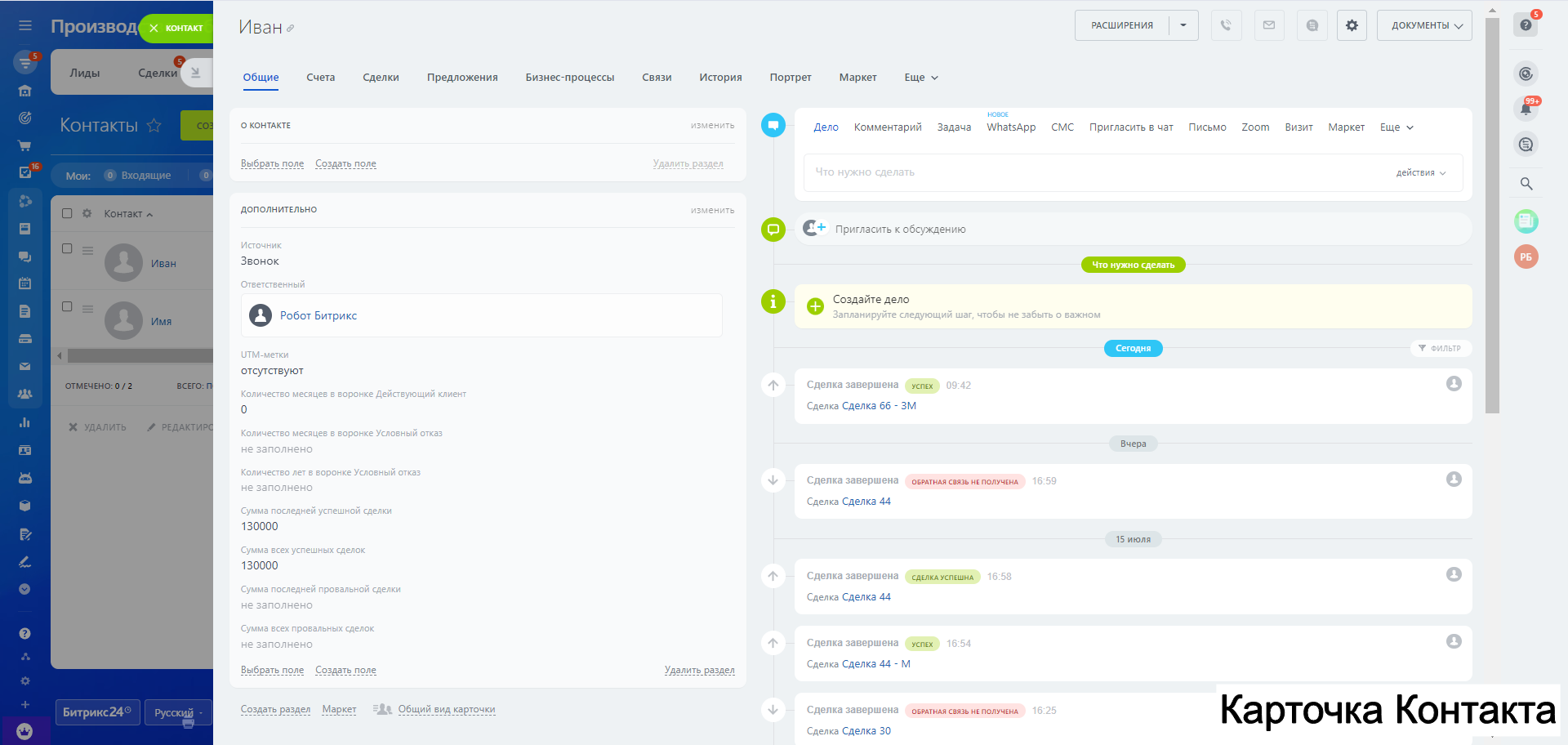 - Поле Контакт