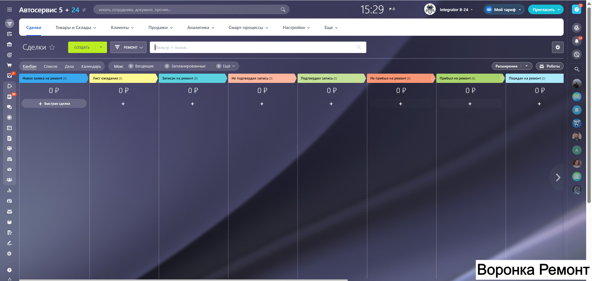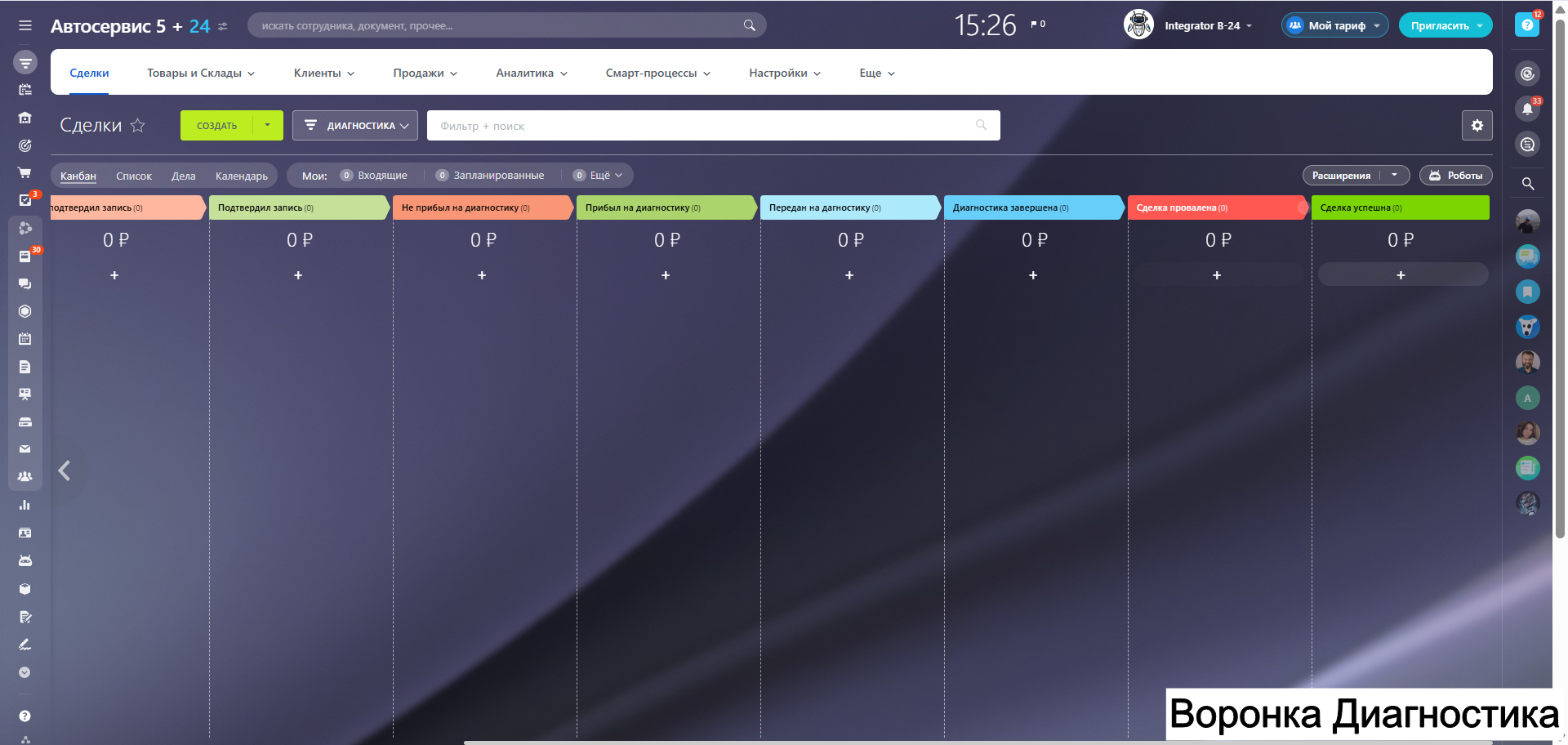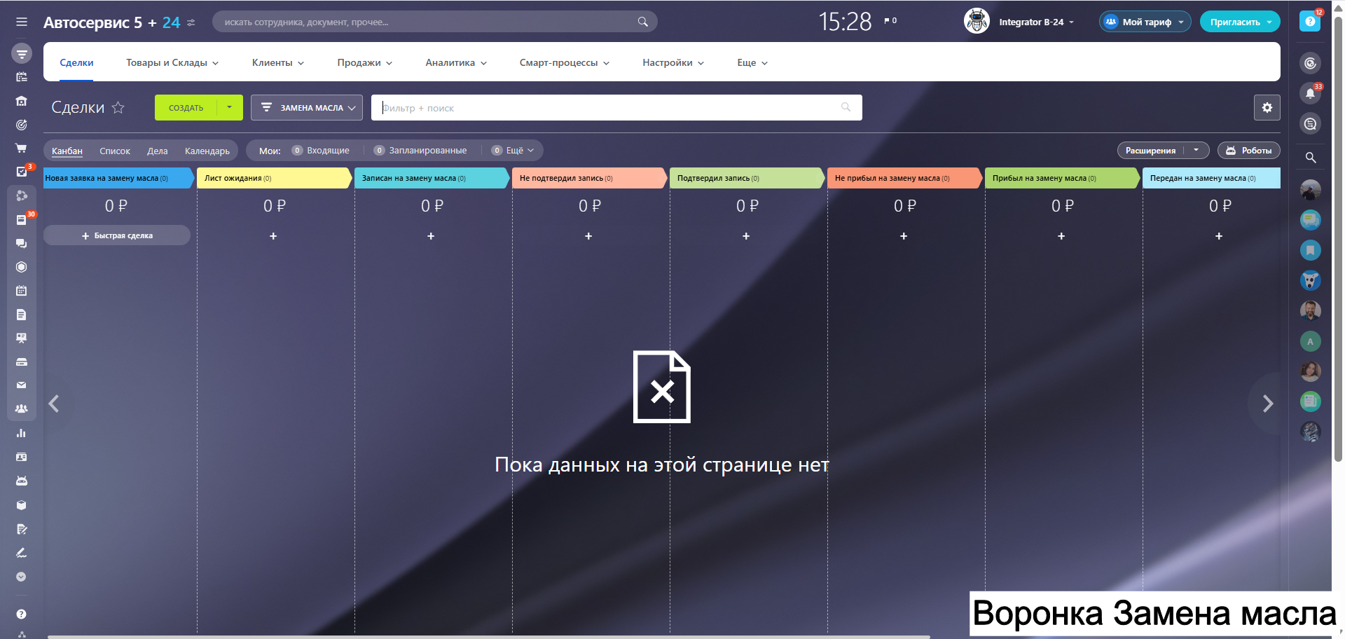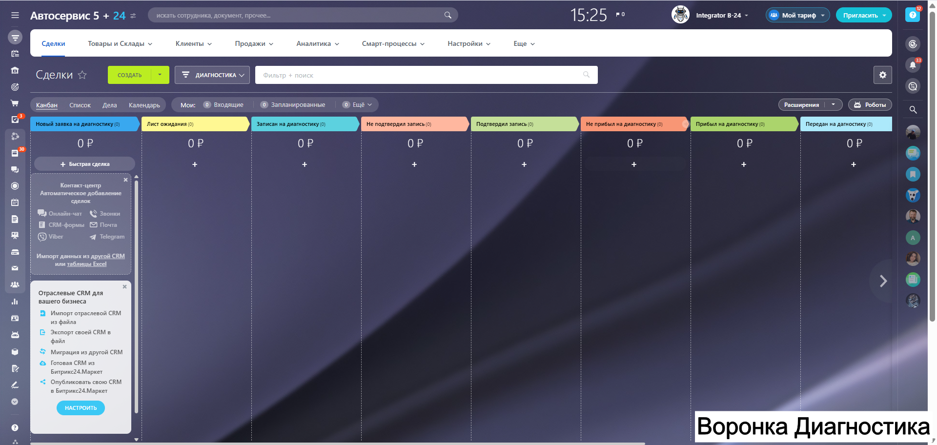 - Готовые воронки продаж под ключевые услуги автосервиса.