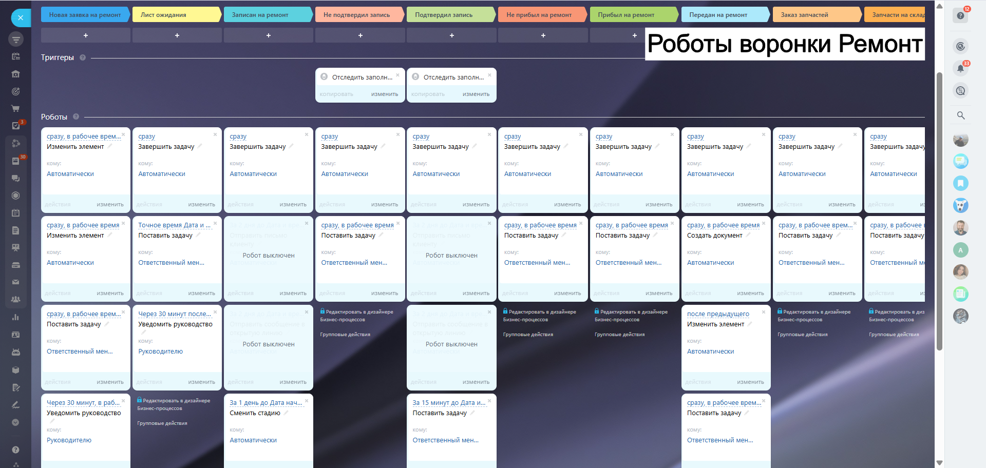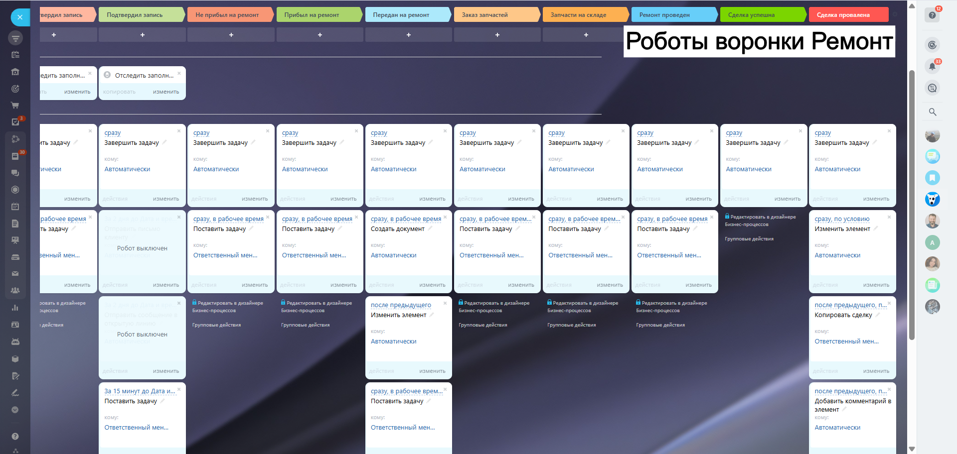 Готовая CRM АвтоМастер - 5 рабочих воронок для СТО