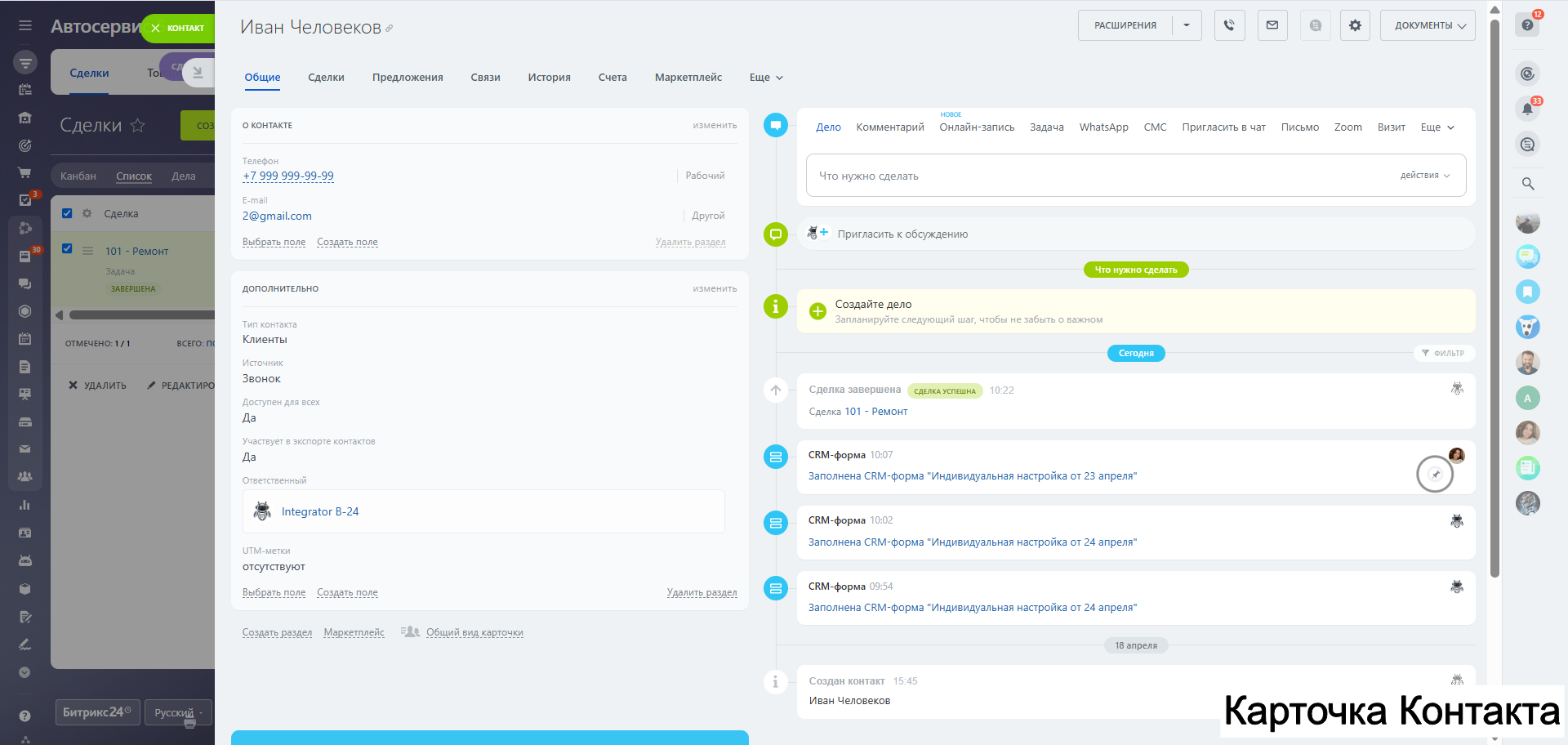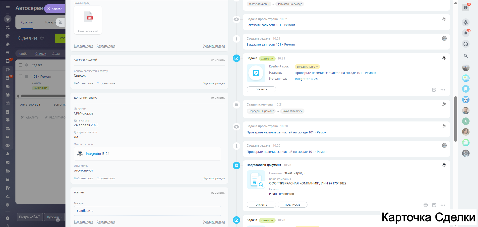 Видео обзор по работе с готовой CRM CTO в RuTube: https://vkvideo.ru/video-188724600_456239341