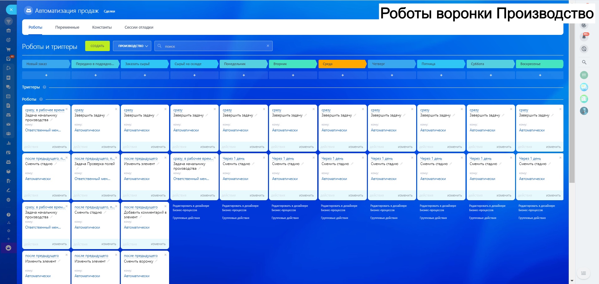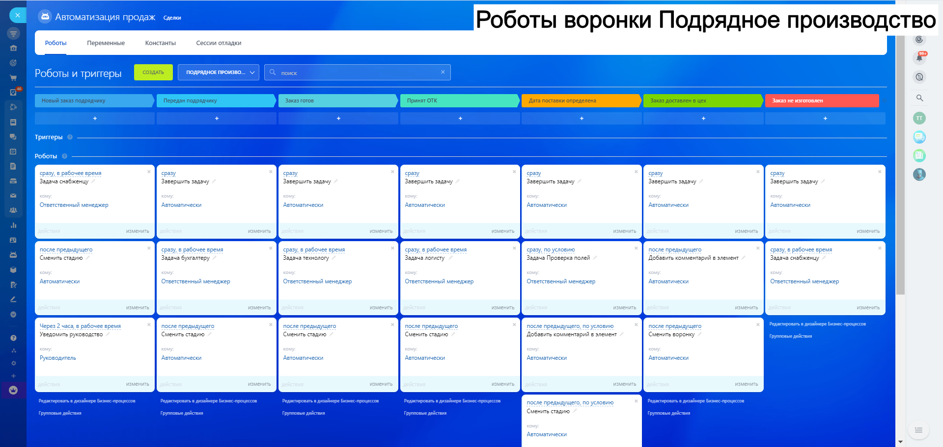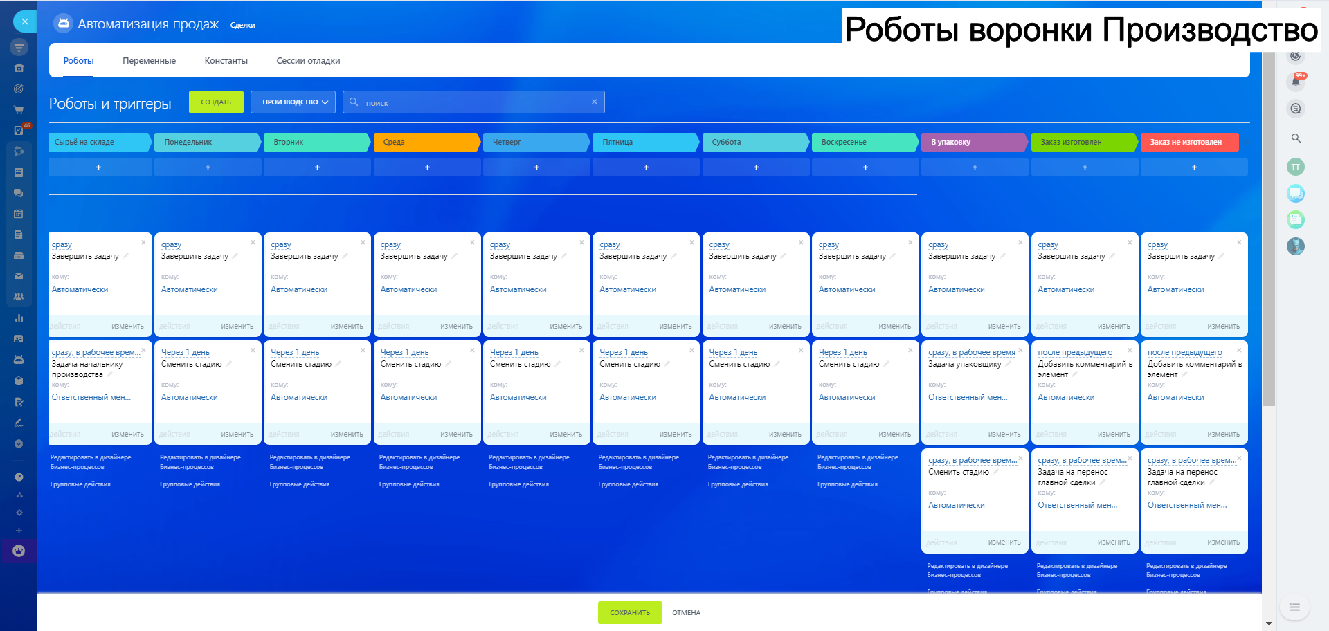 Готовая CRM для любой производственной компании отлаженное на множестве производств, подойдет для тарифов Битрикс24 Стандартный, Профессиональный и выше.
