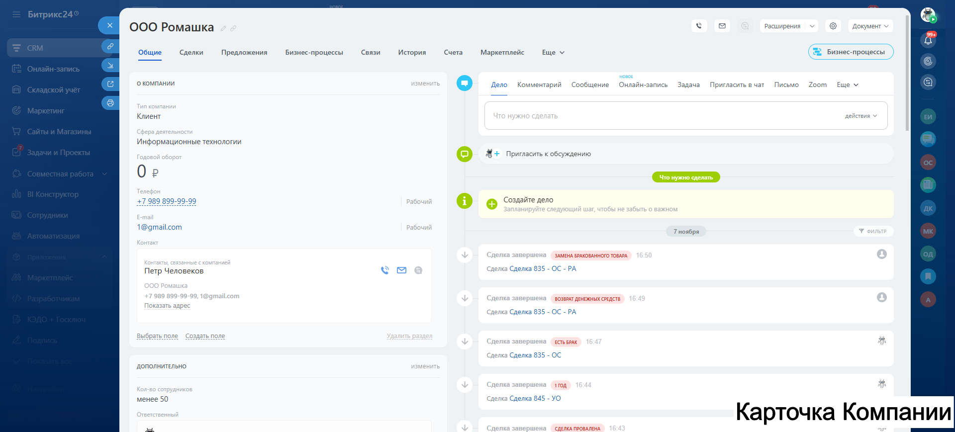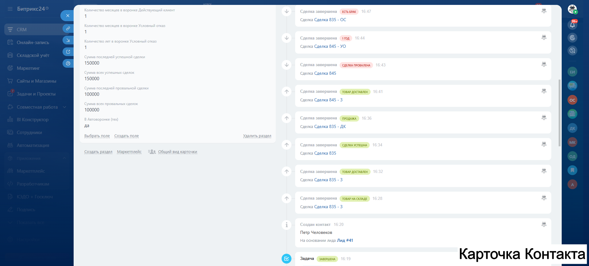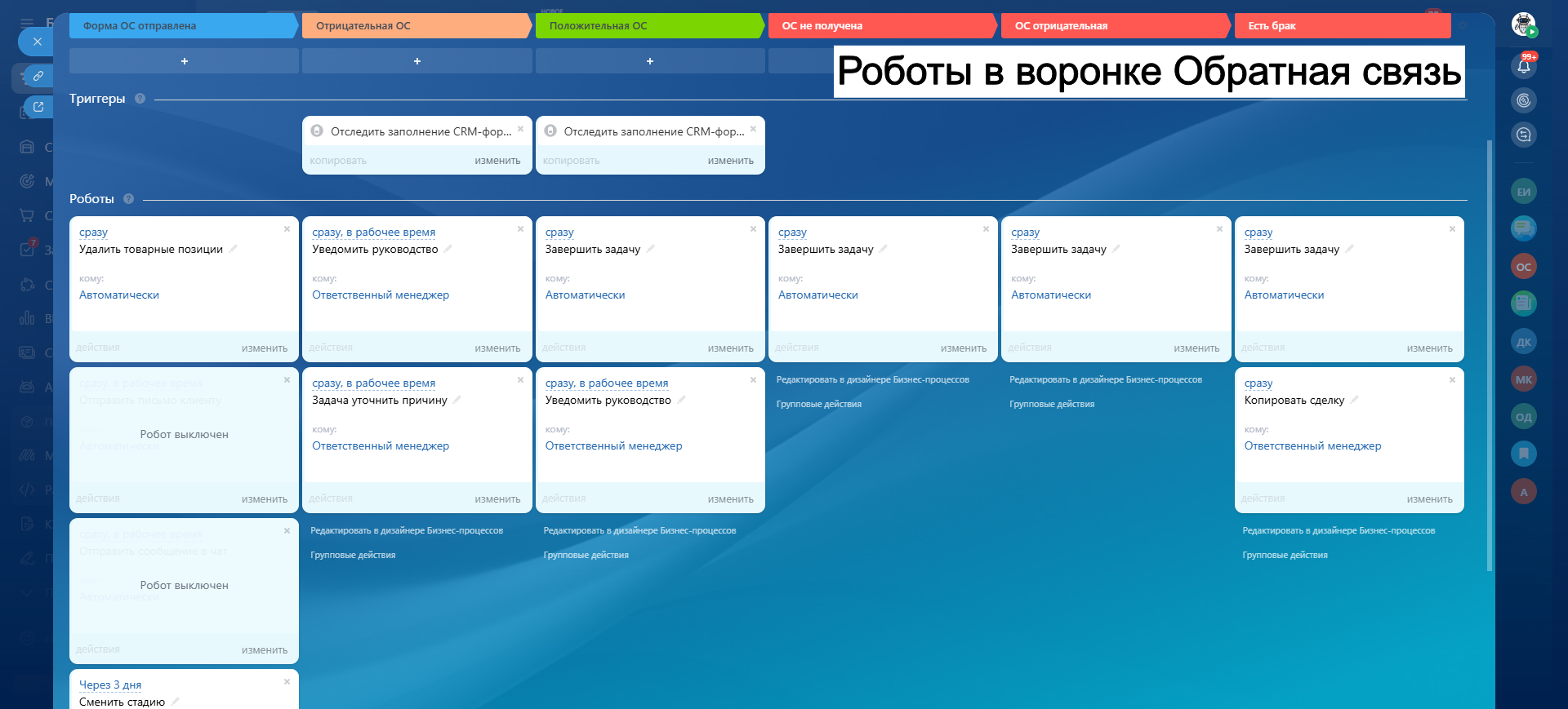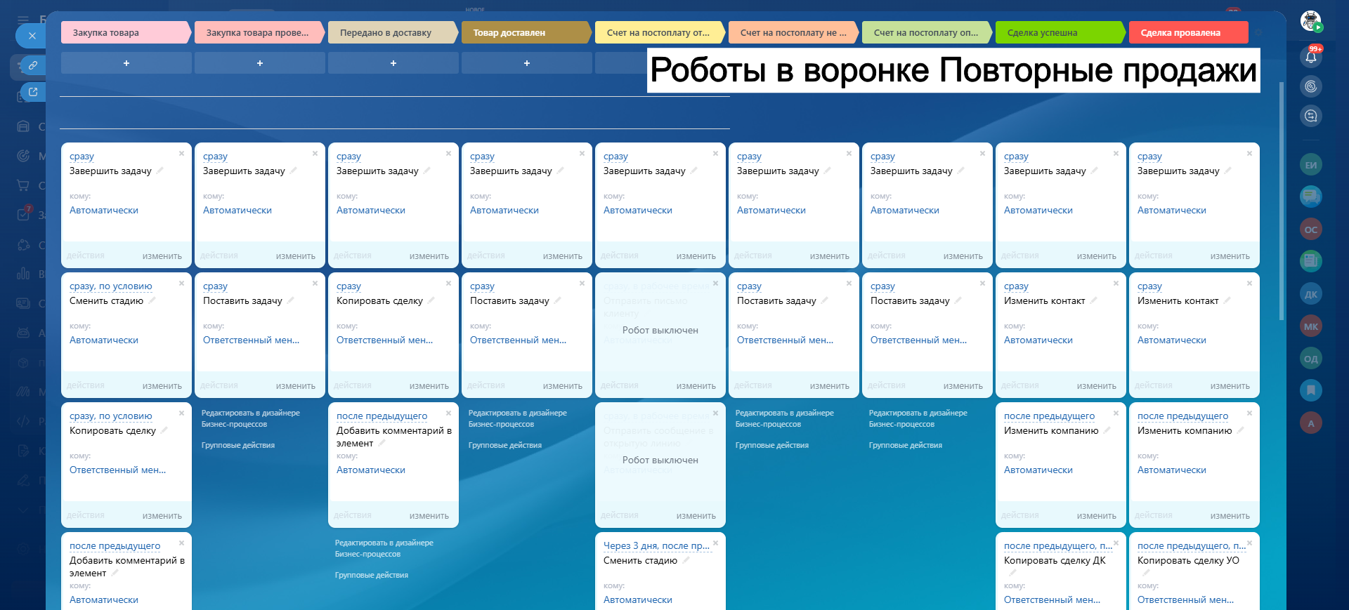 Создаются отдельные сделки по доставке: сборка, упаковка, передача в ТК, отслеживание, контроль недоставки.