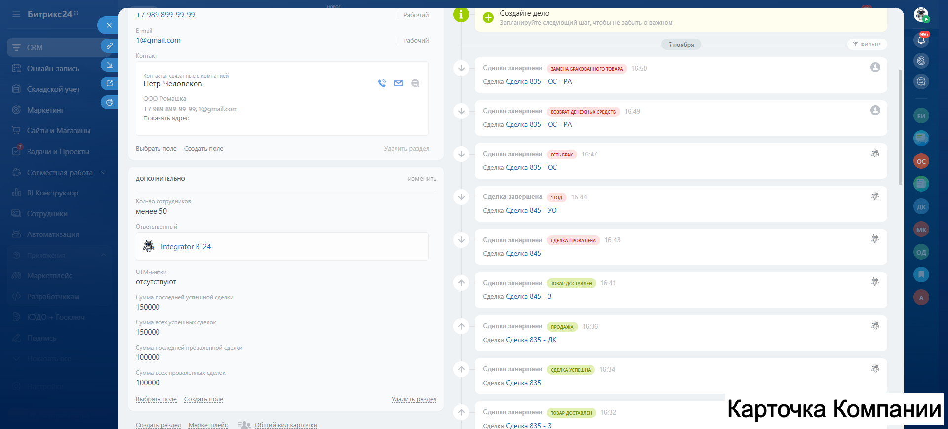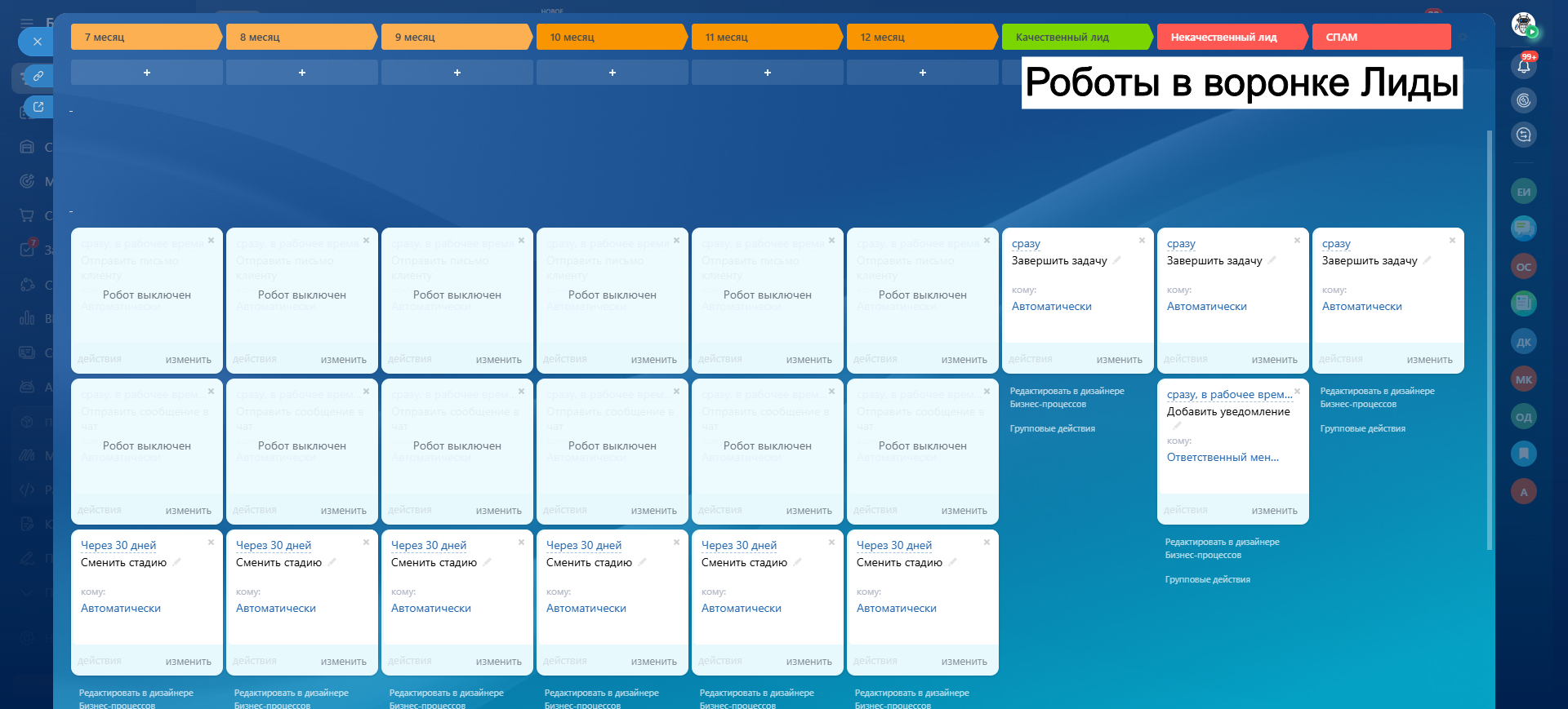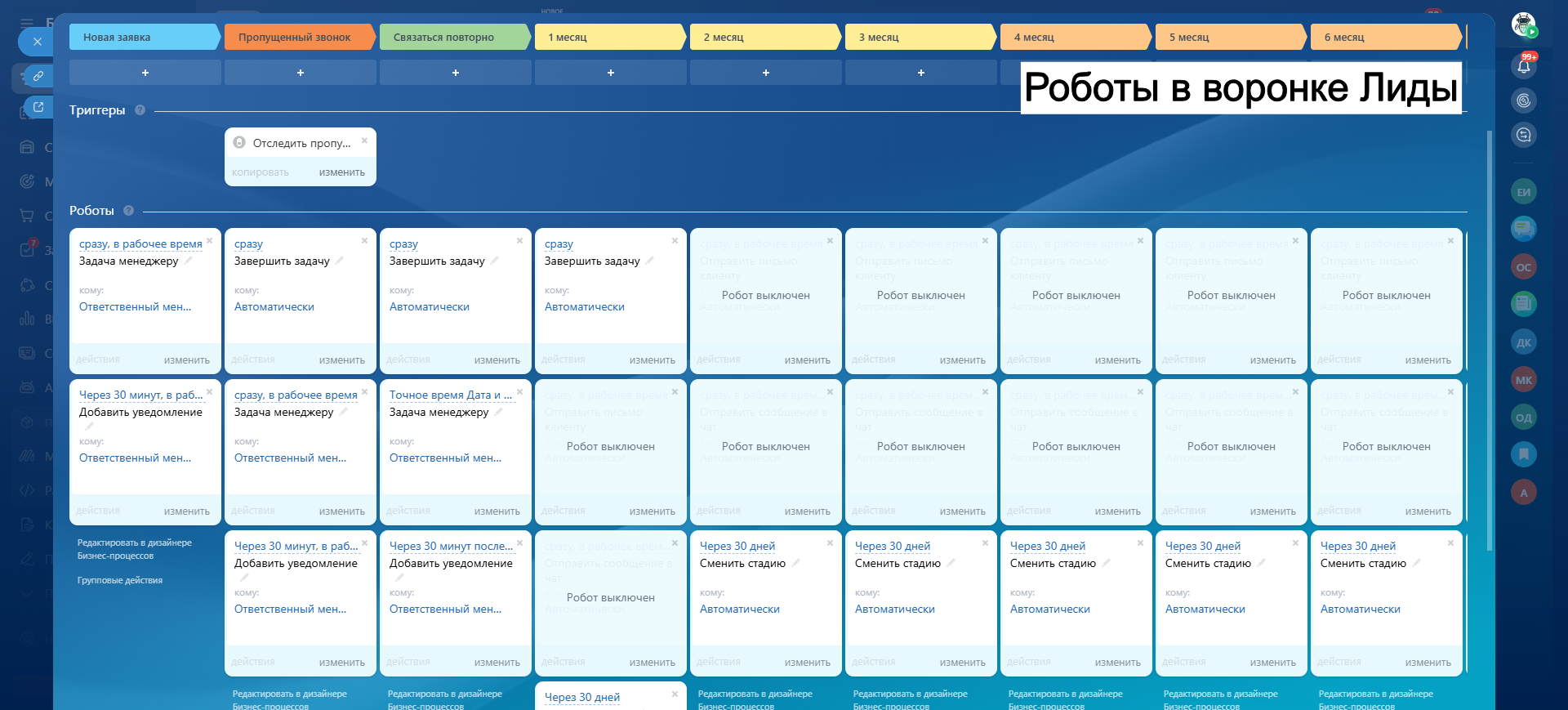 Все лиды из телефонии, WhatsApp, почты и сайта автоматически создаются, классифицируются и попадают в правильную стадию.