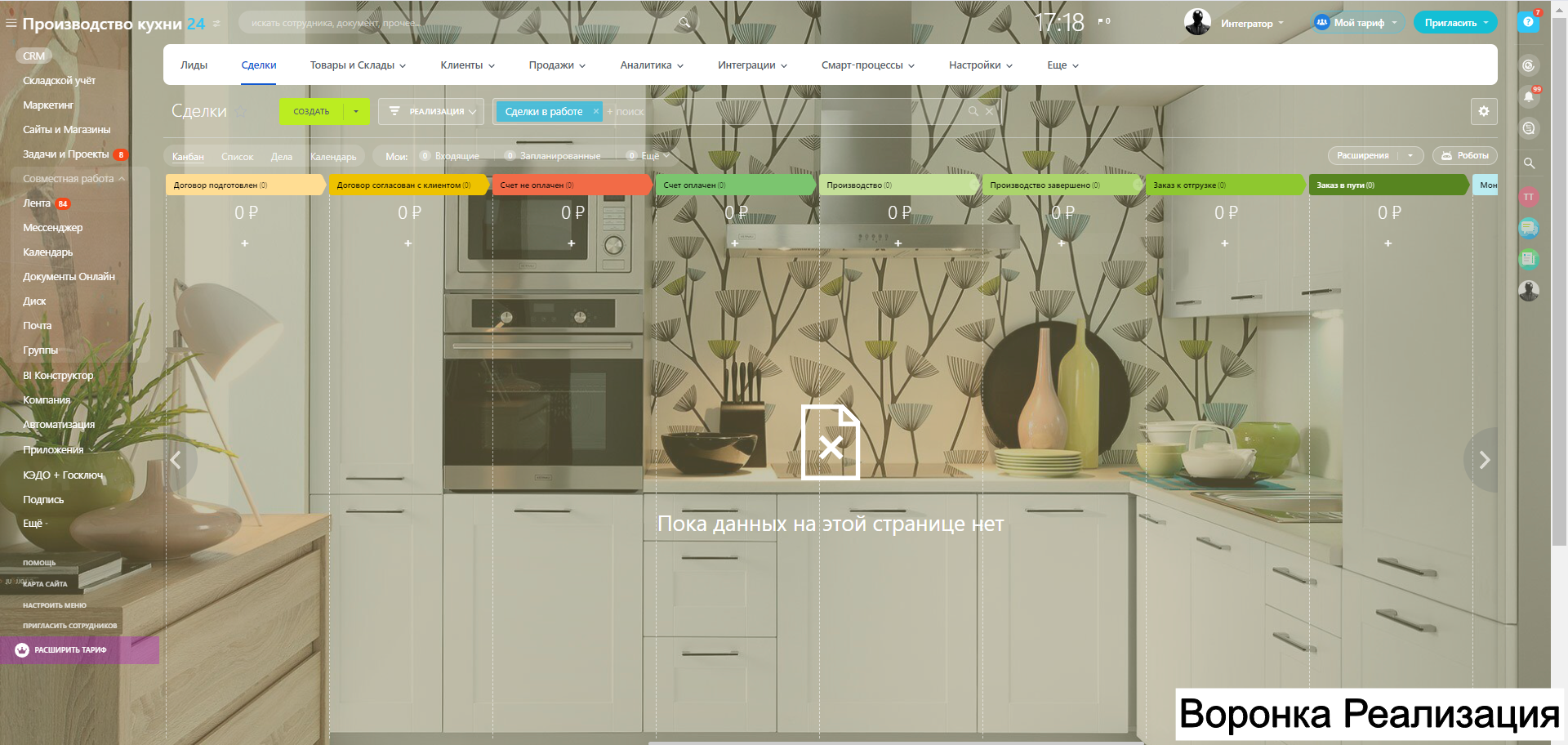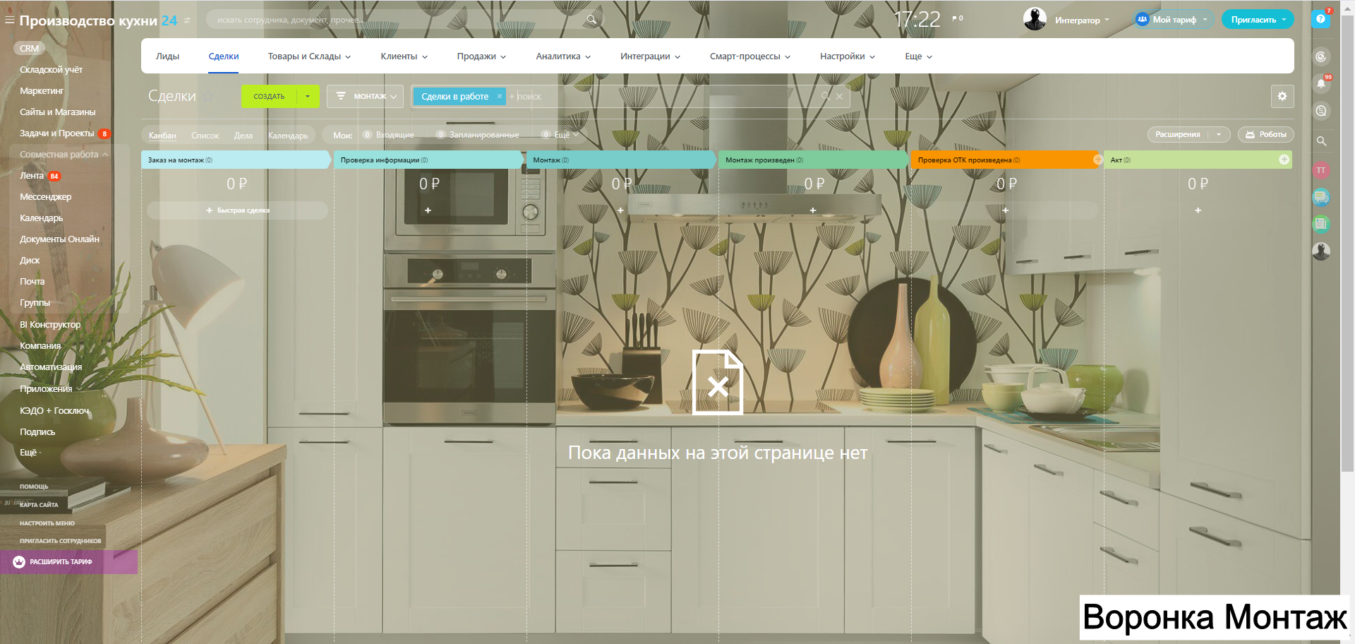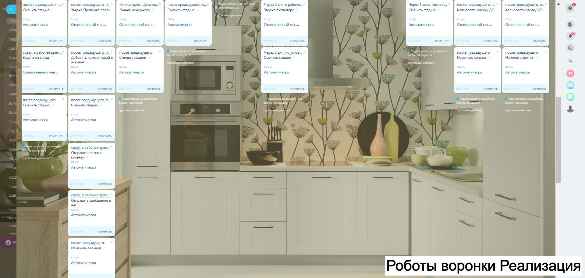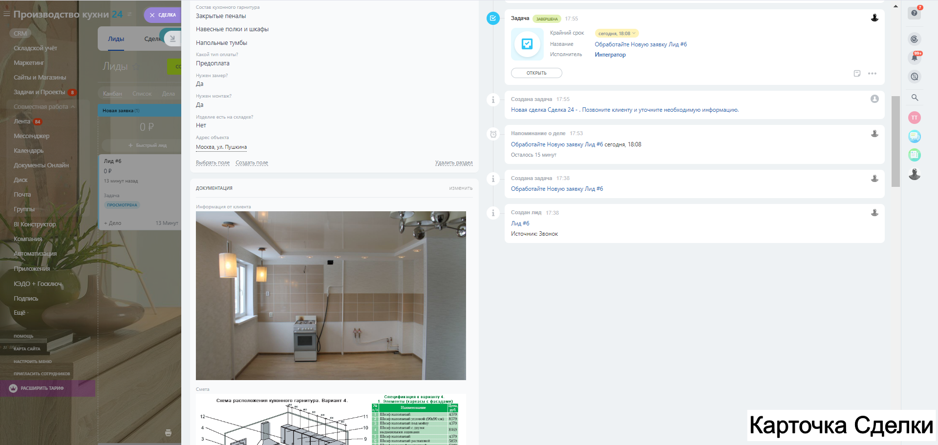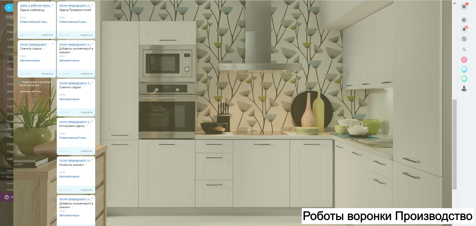 Готовая CRM для компаний, занимающихся проектированием, изготовлением, продажей и сборкой кухонных гарнитуров.