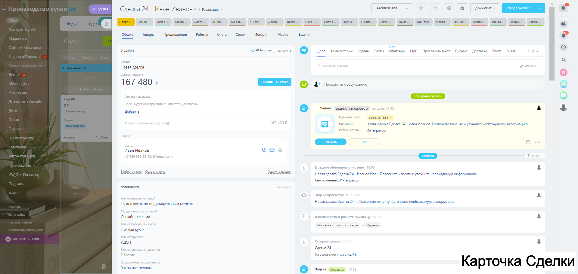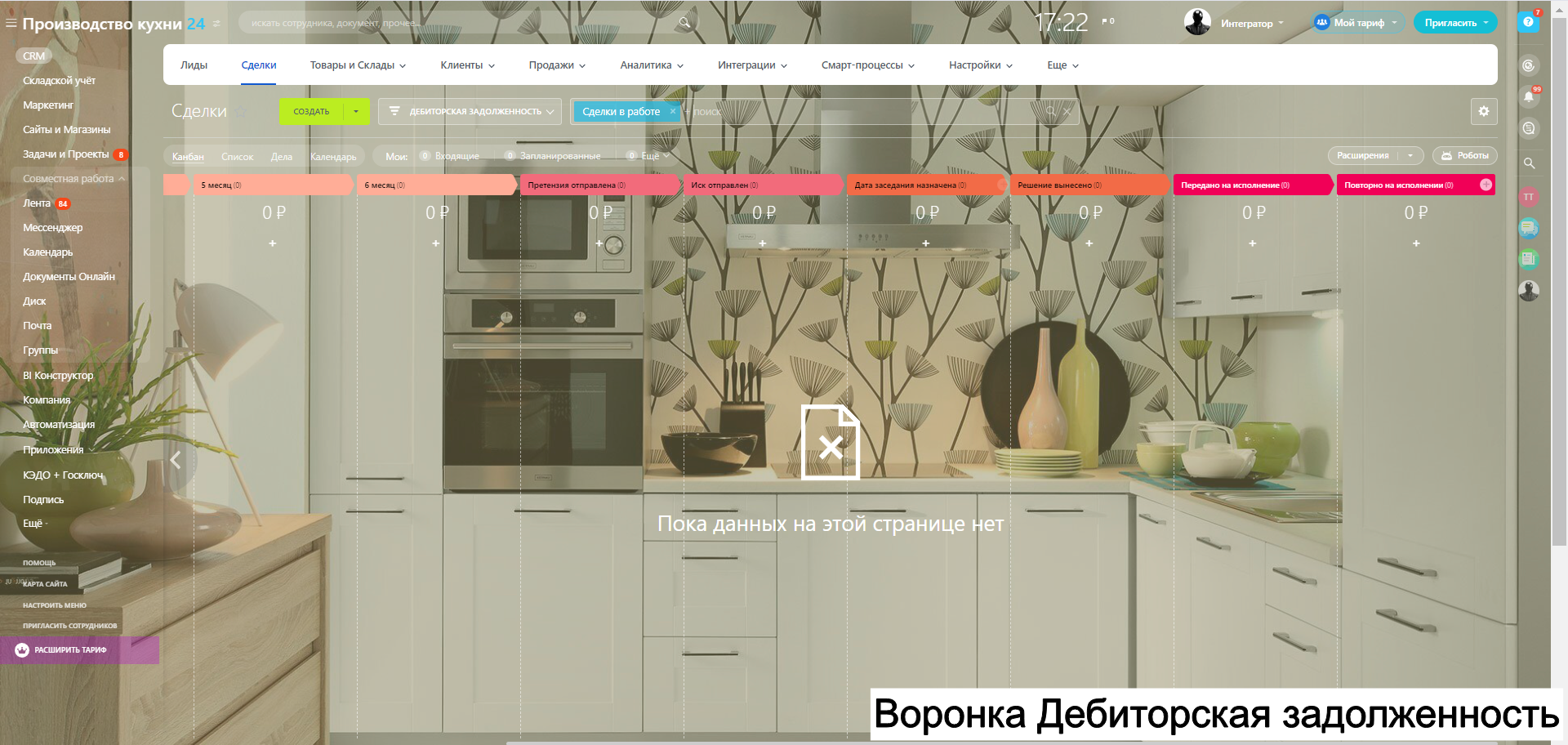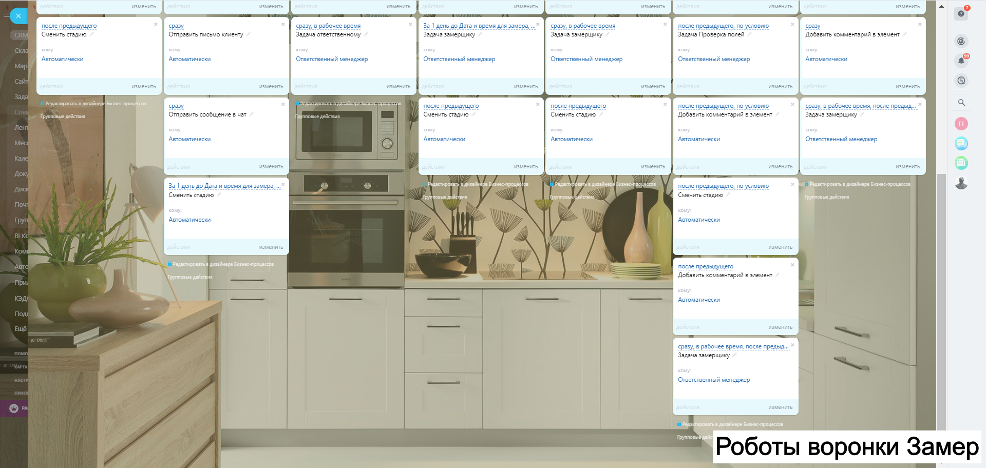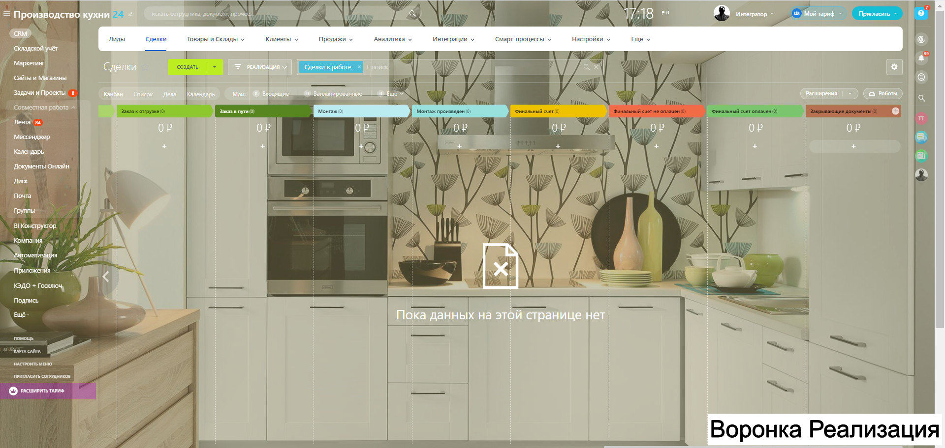 Готовая CRM для компаний, занимающихся проектированием, изготовлением, продажей и сборкой кухонных гарнитуров.