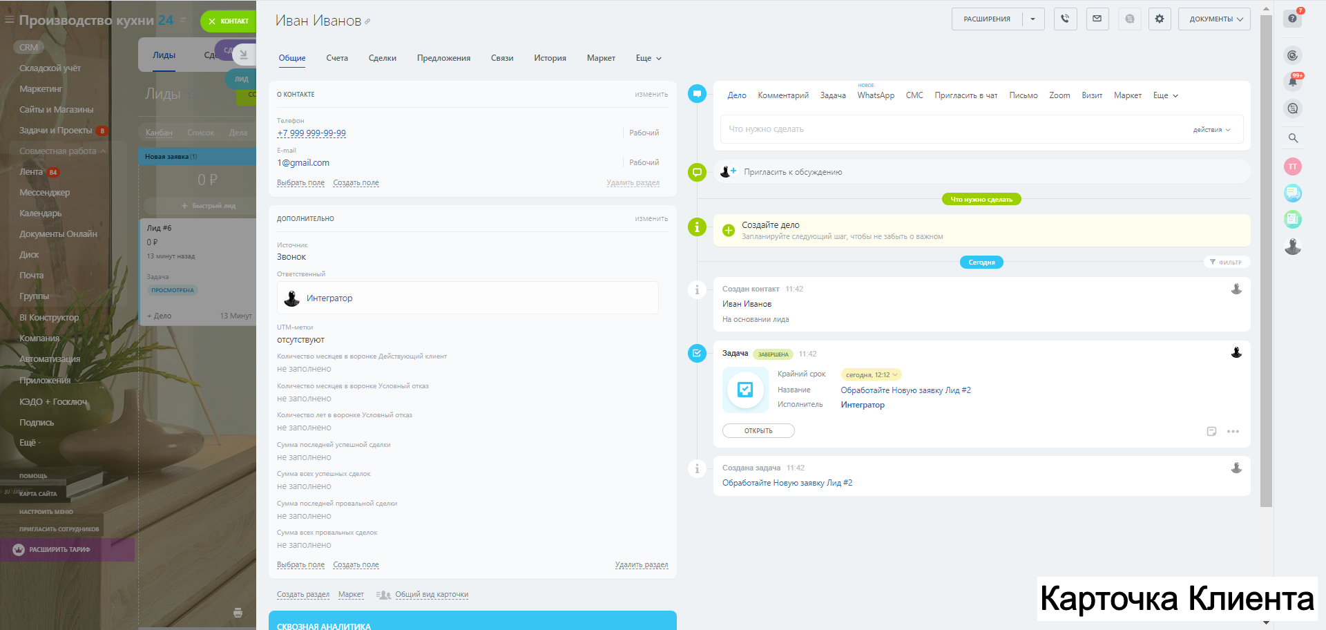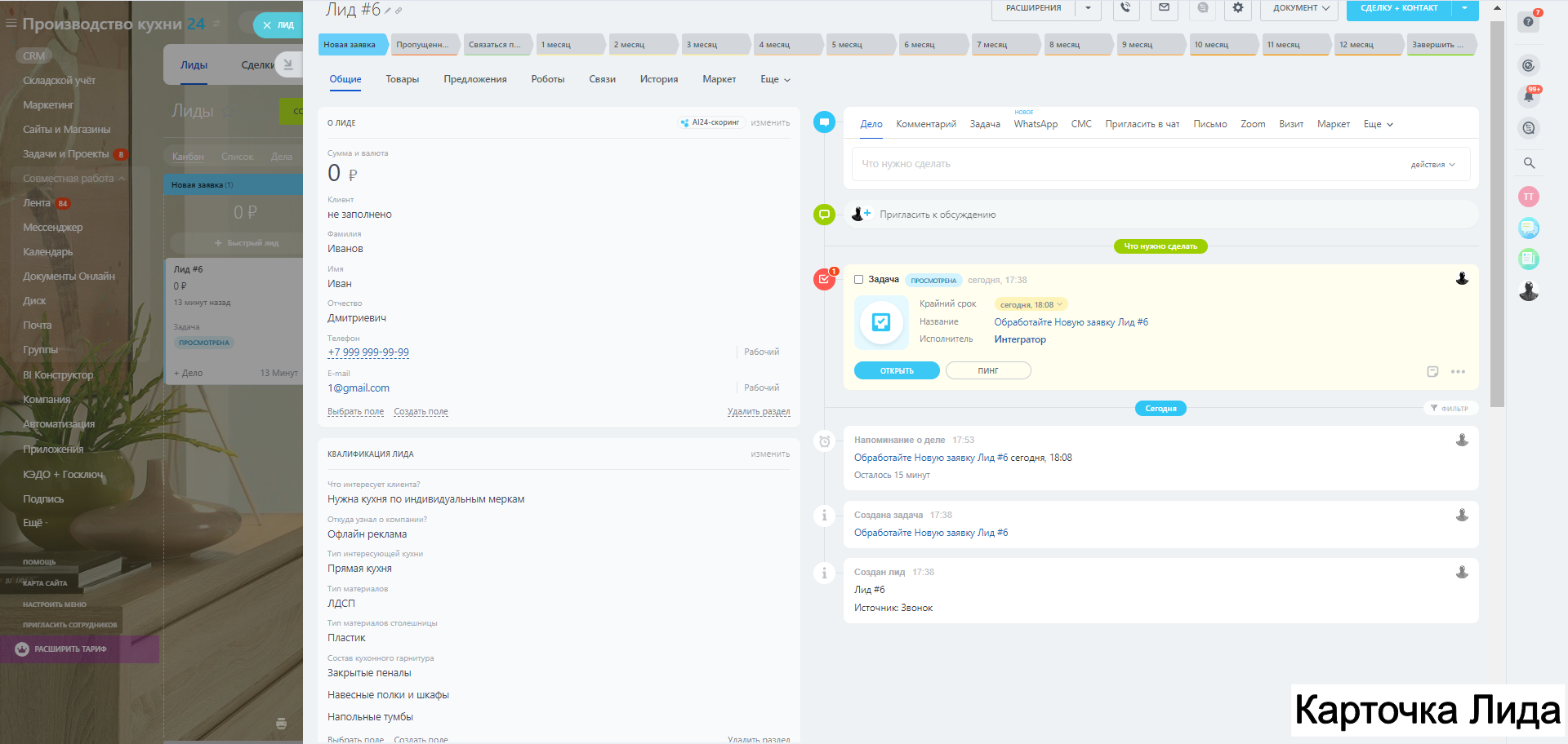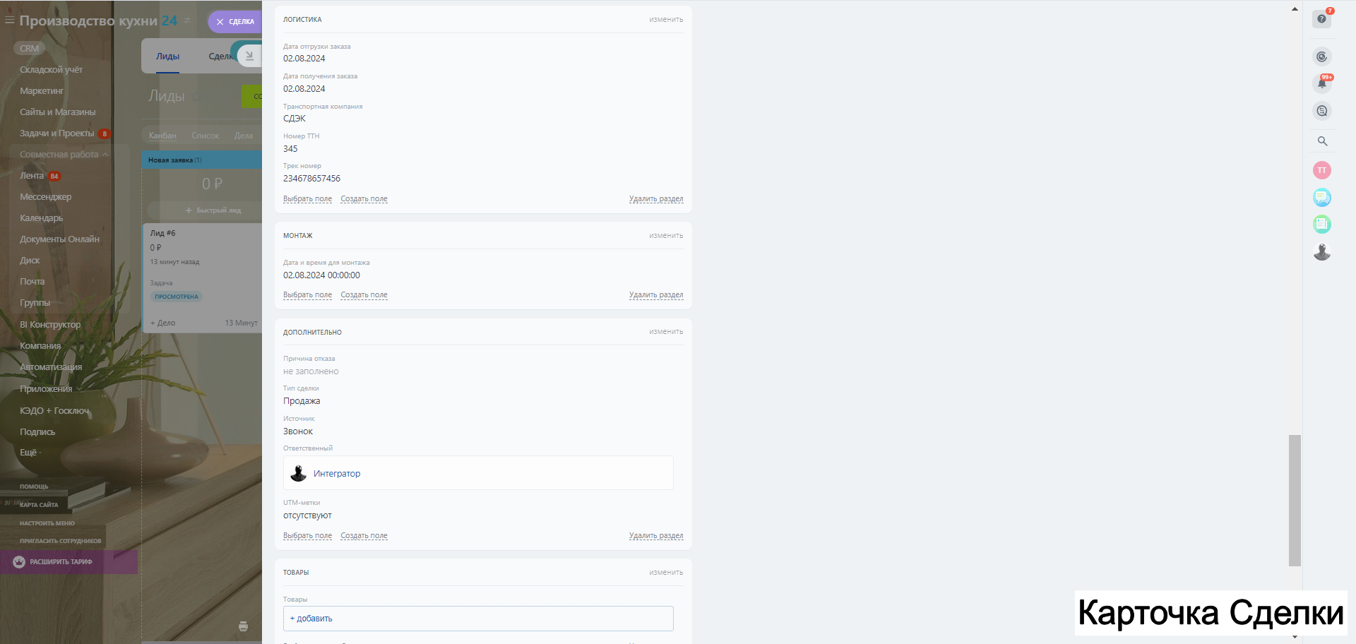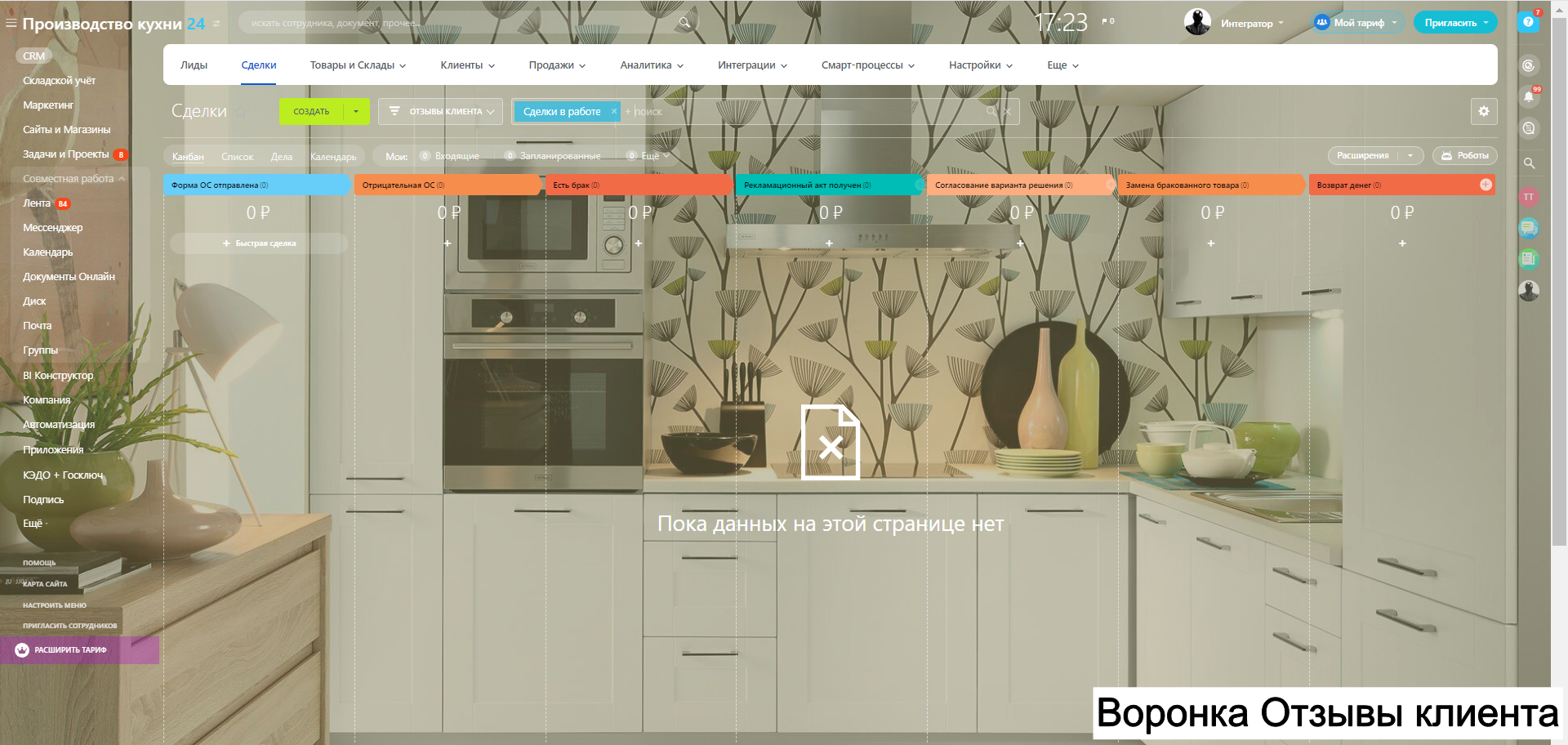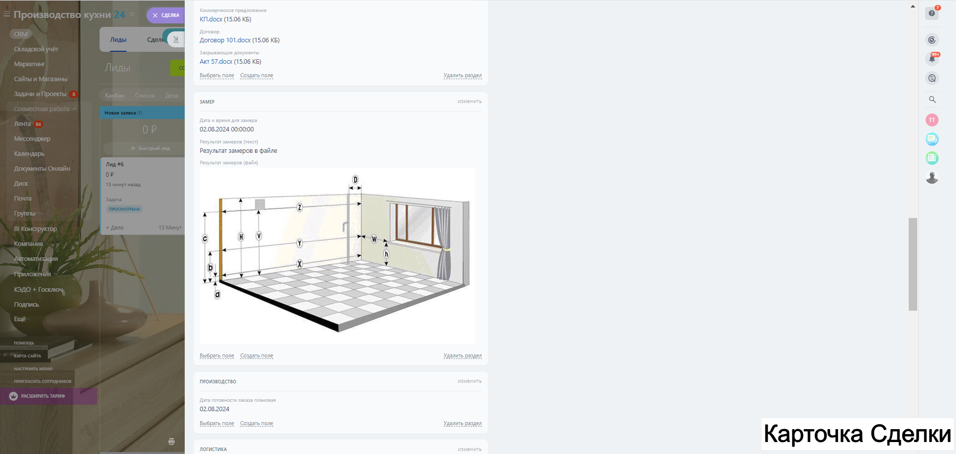 Готовая CRM для компаний, занимающихся проектированием, изготовлением, продажей и сборкой кухонных гарнитуров.