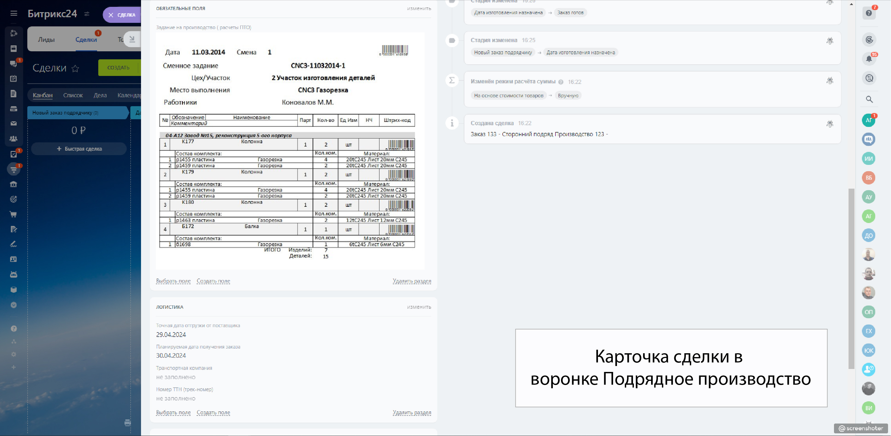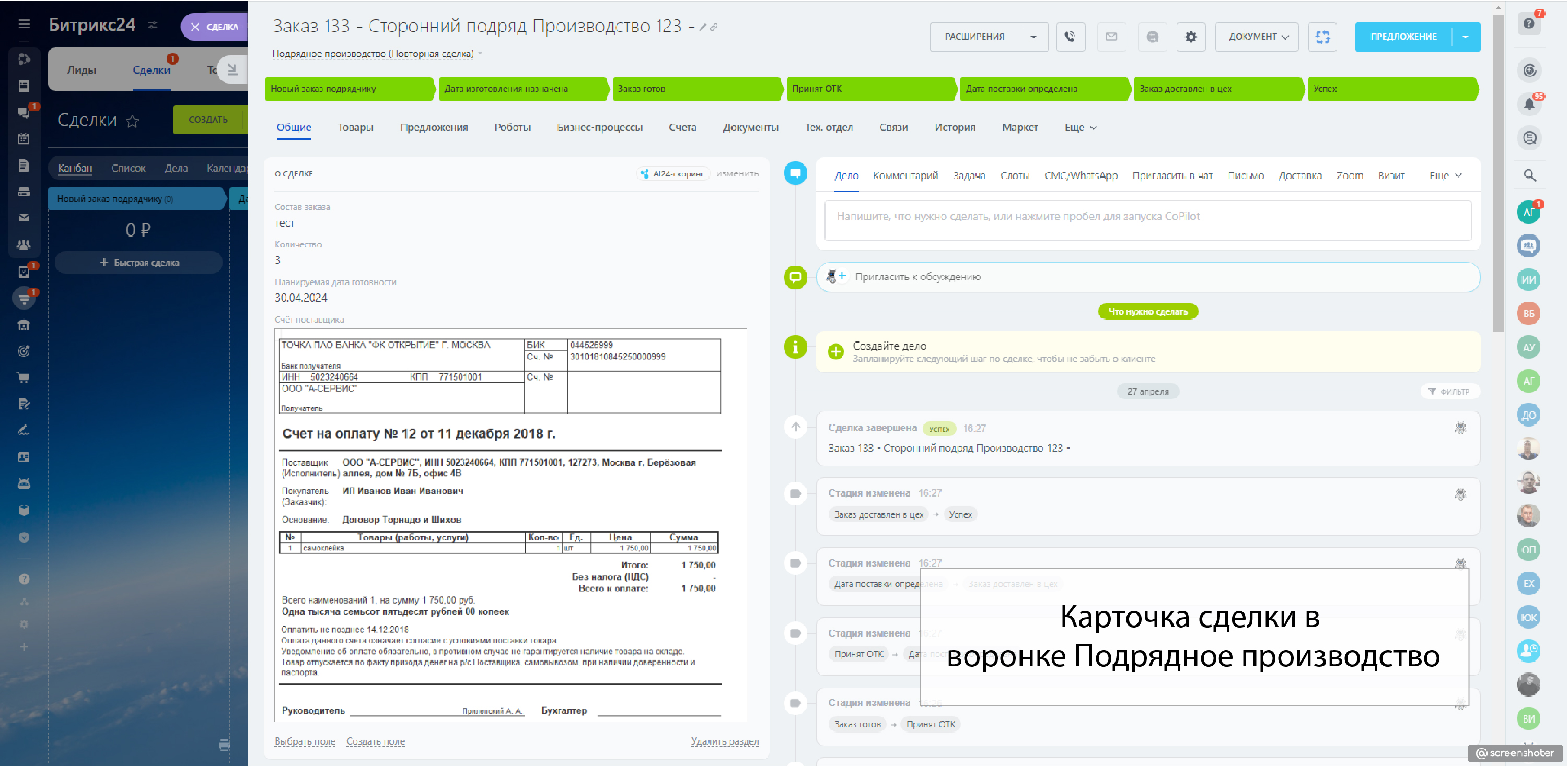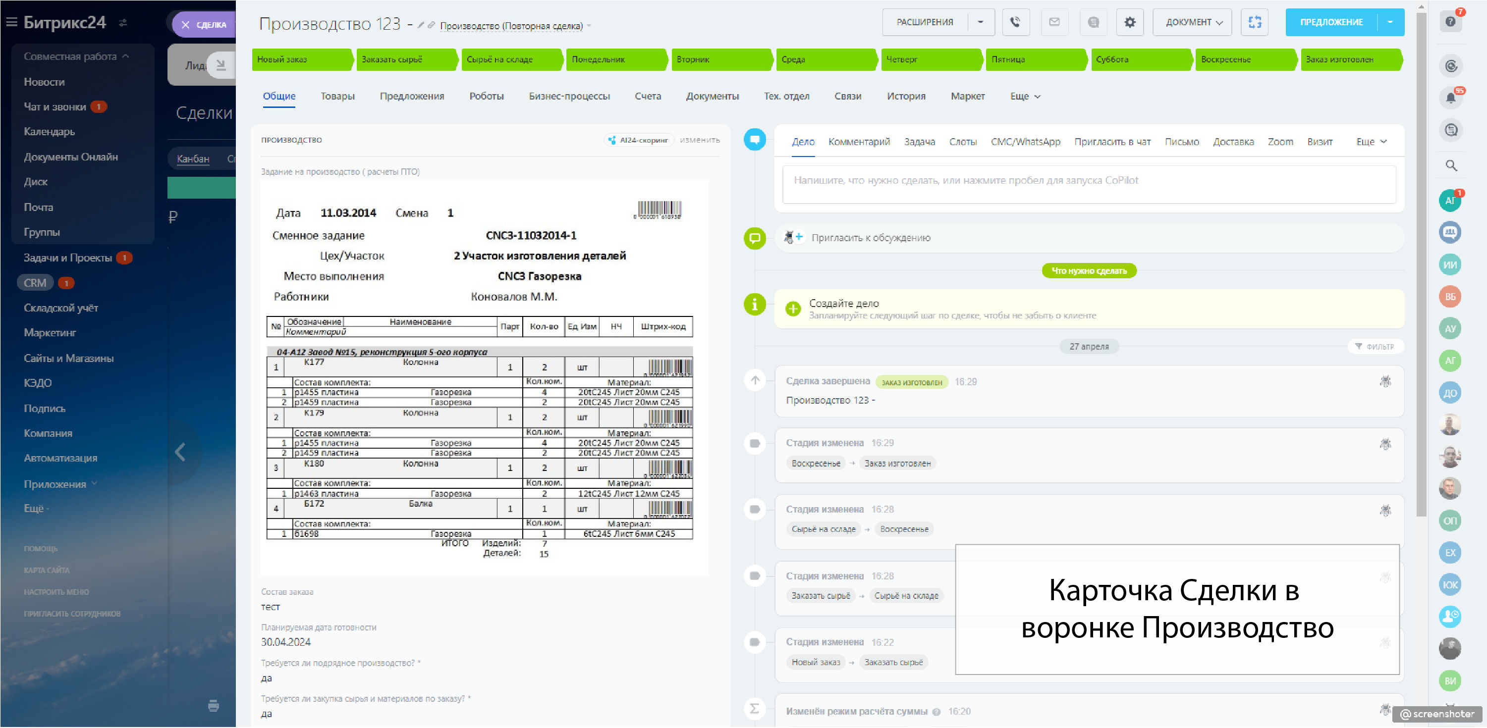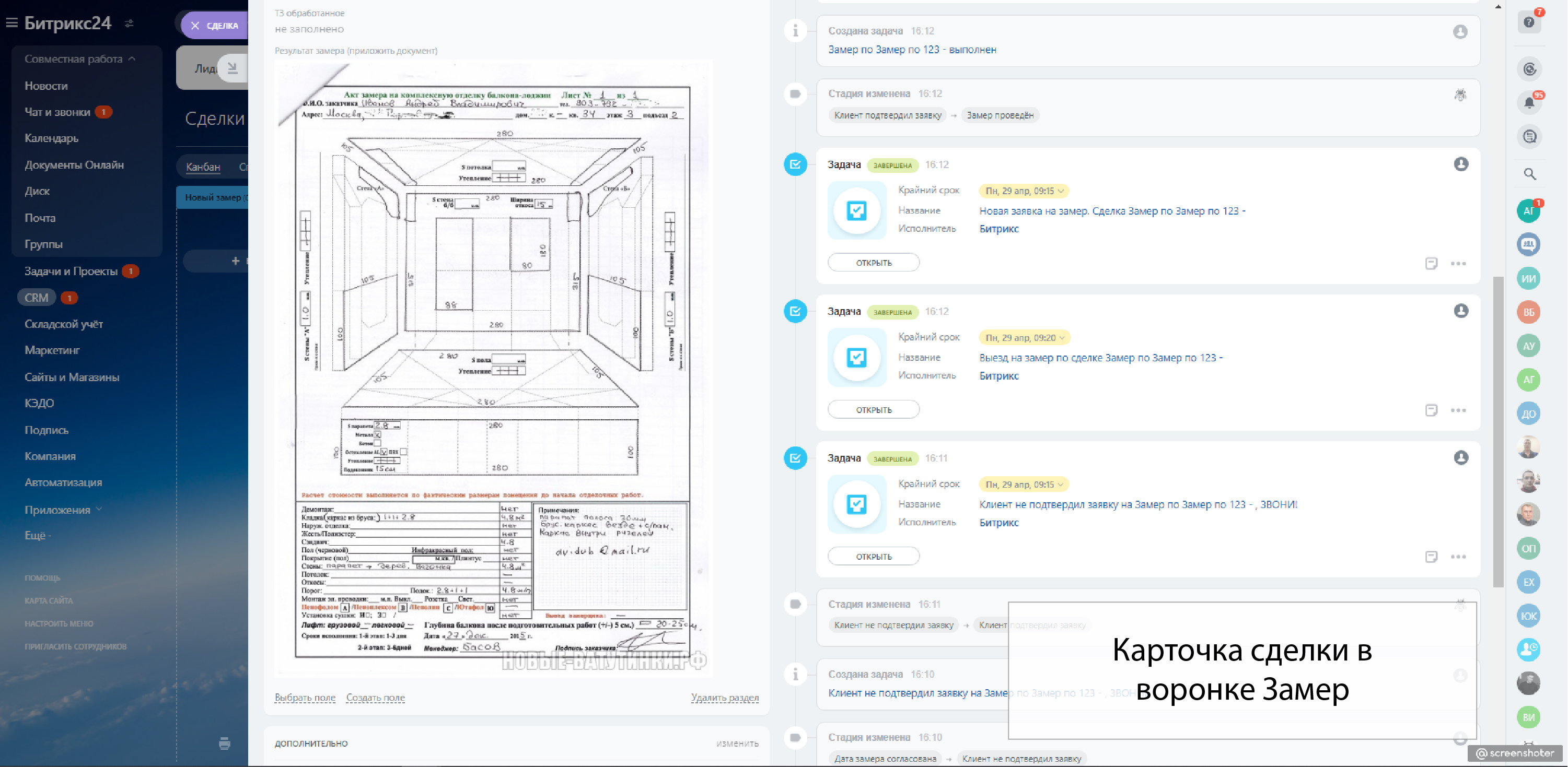 Готовая CRM для Производства с замером, монтажом, закупкой, подрядным производством и автоворонками.