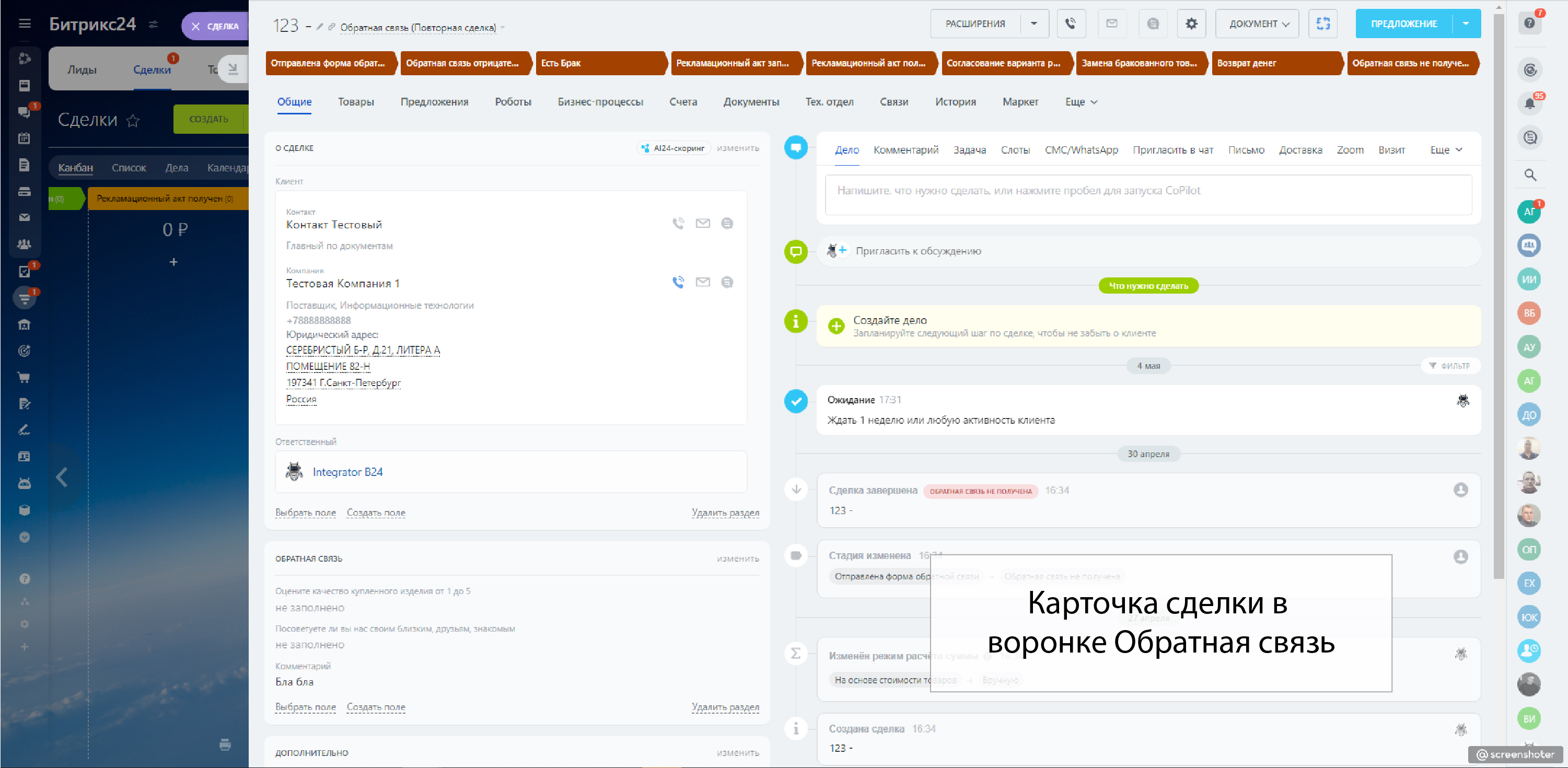 9. Автоворонка для получения обратной связи и работе с рекламацией