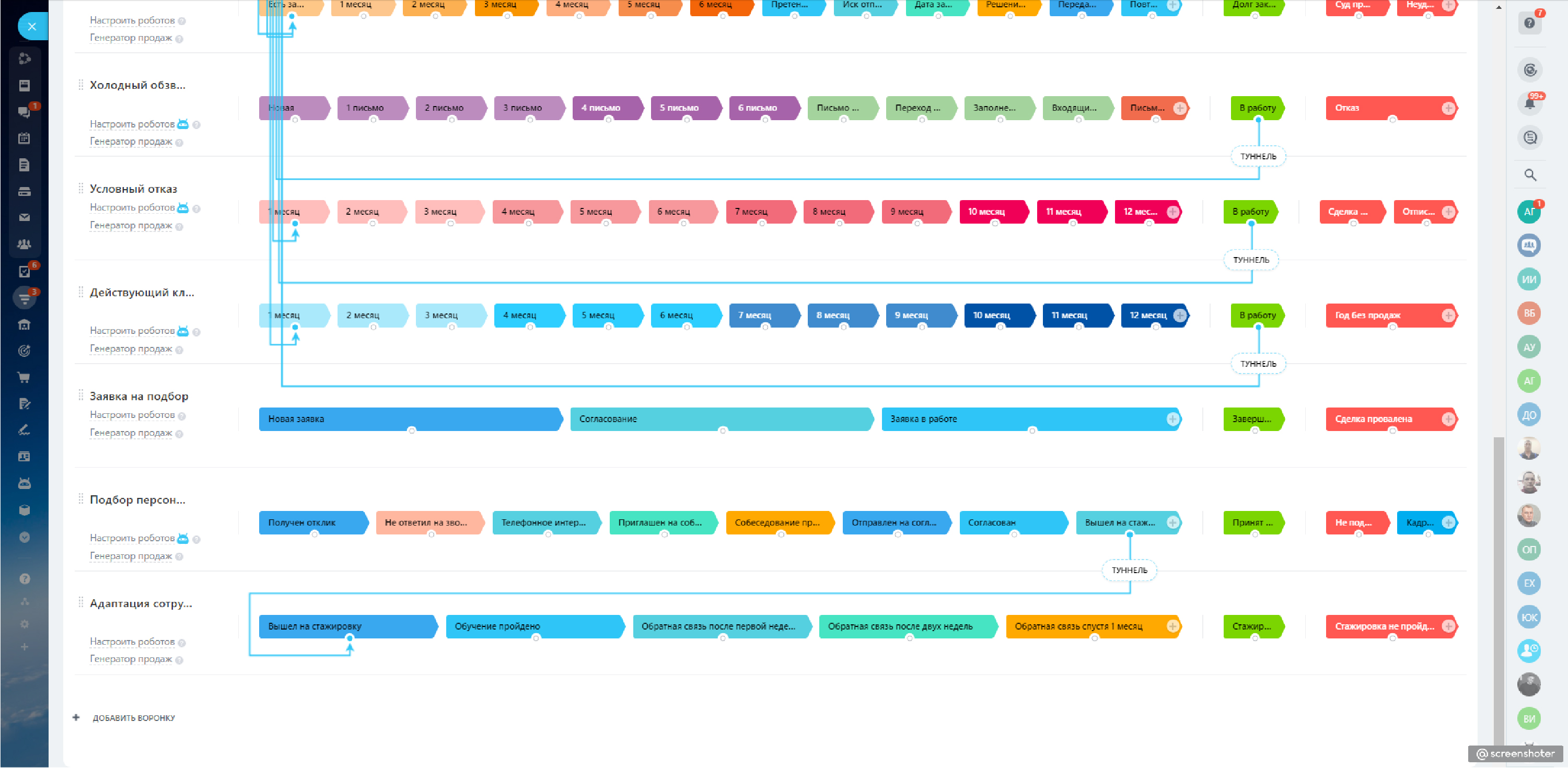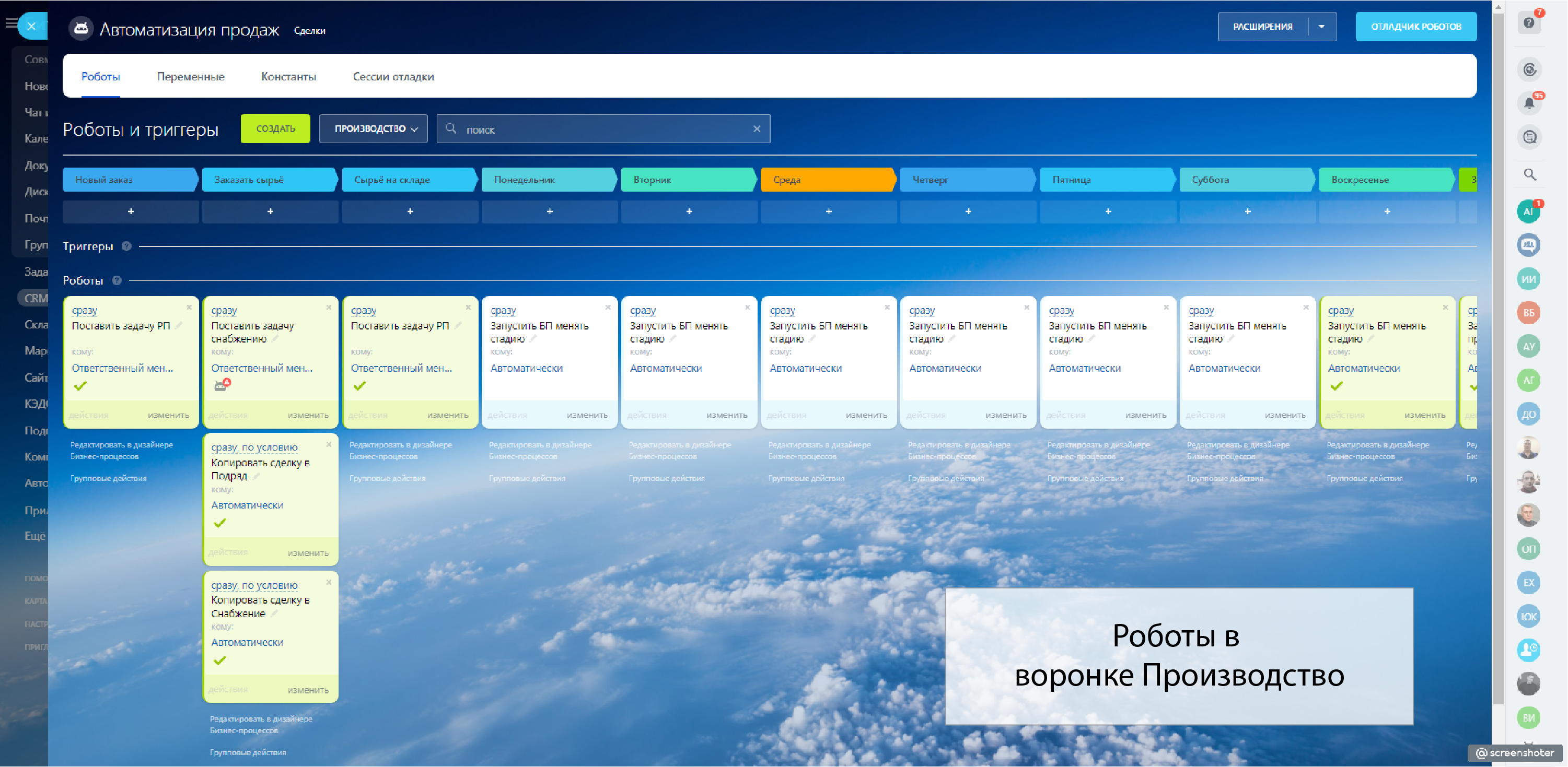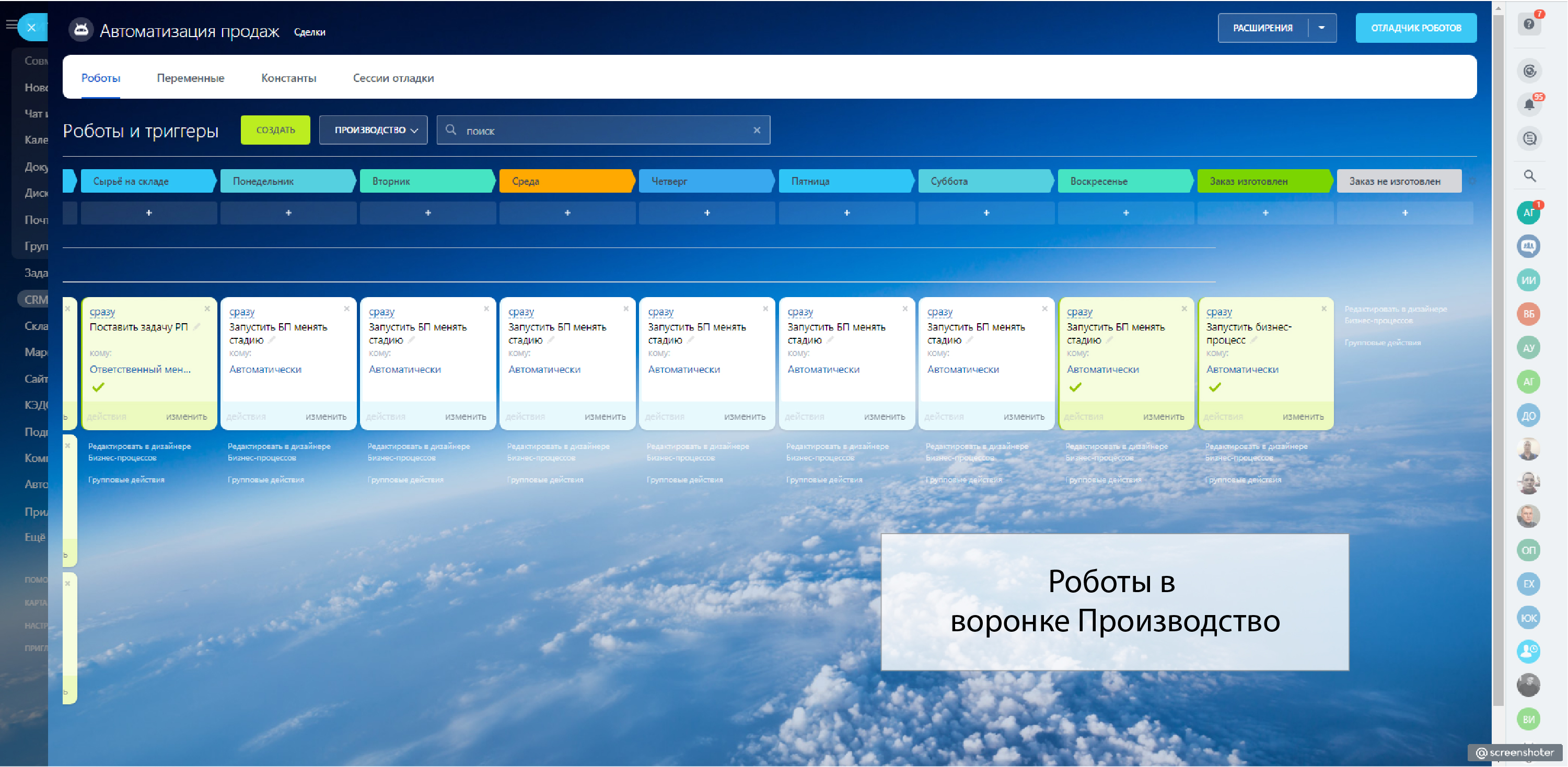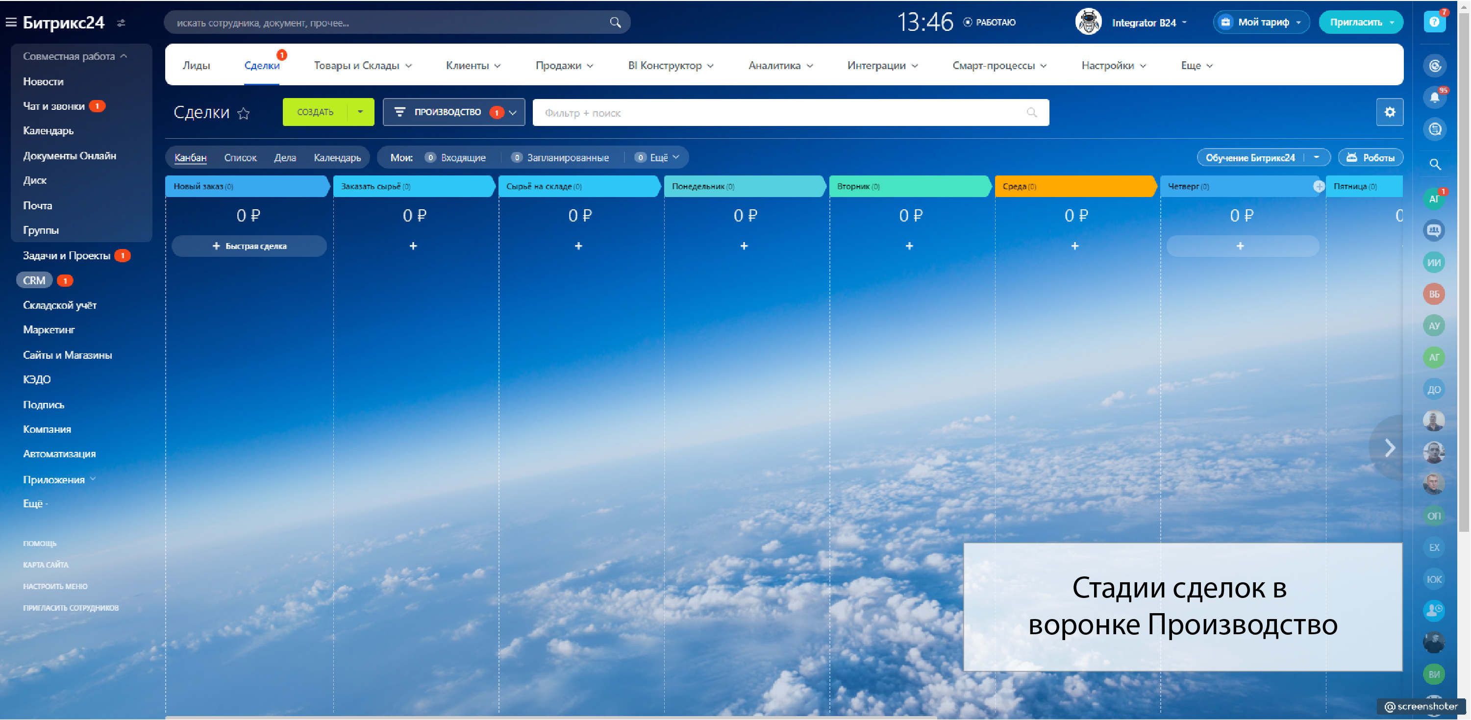 Готовая CRM для производственной компании отлаженное на множестве производств, содержащая процессы лидогенерации, продаж, продаж через замер, производственная воронка, монтаж, расчет и согласование коммерческого предложения, создание и согласование договора, воронка для подрядного производства, воронка для процесса закупки, воронка для получения обратной связи и рекламации, HR воронка.