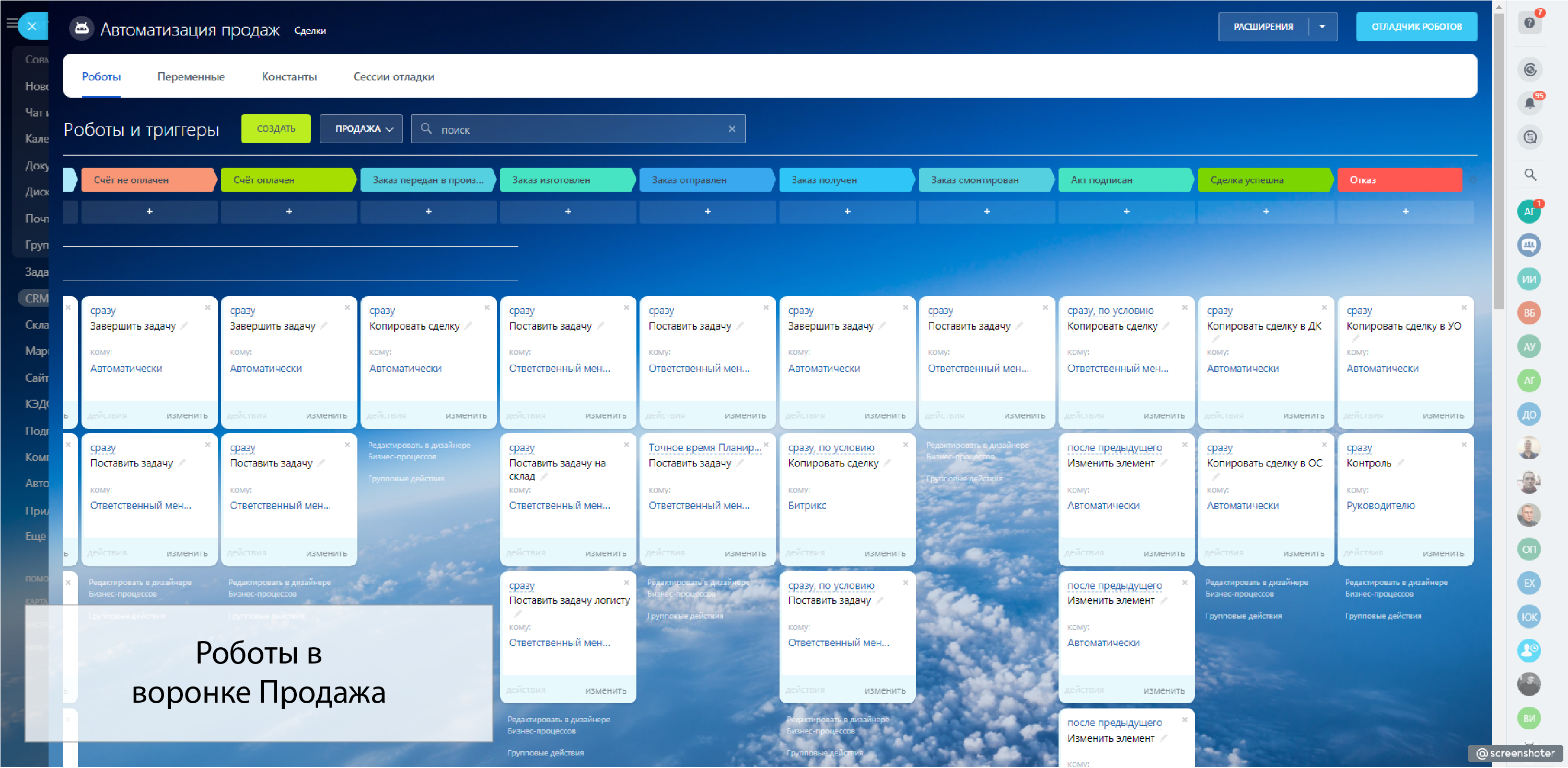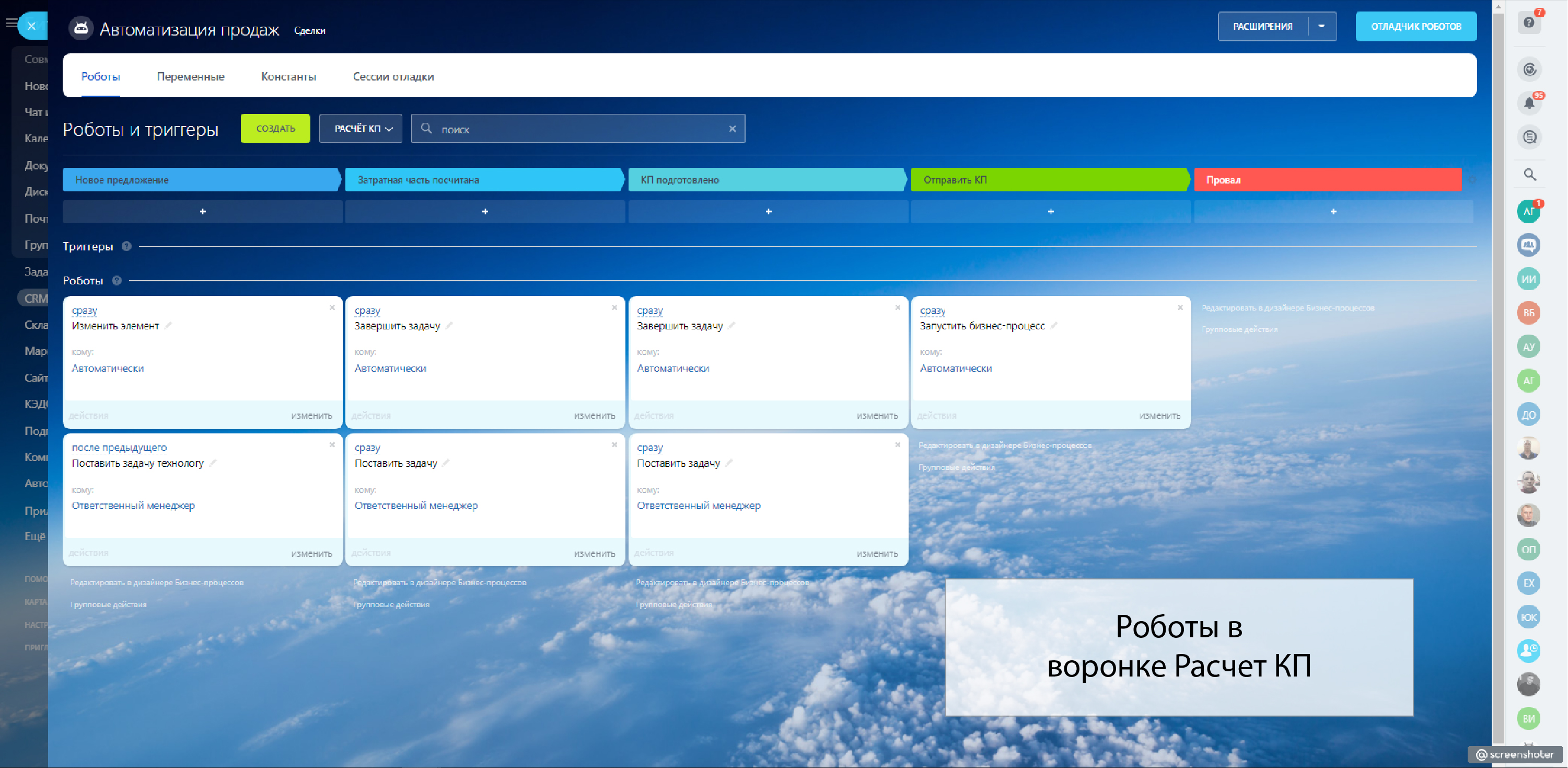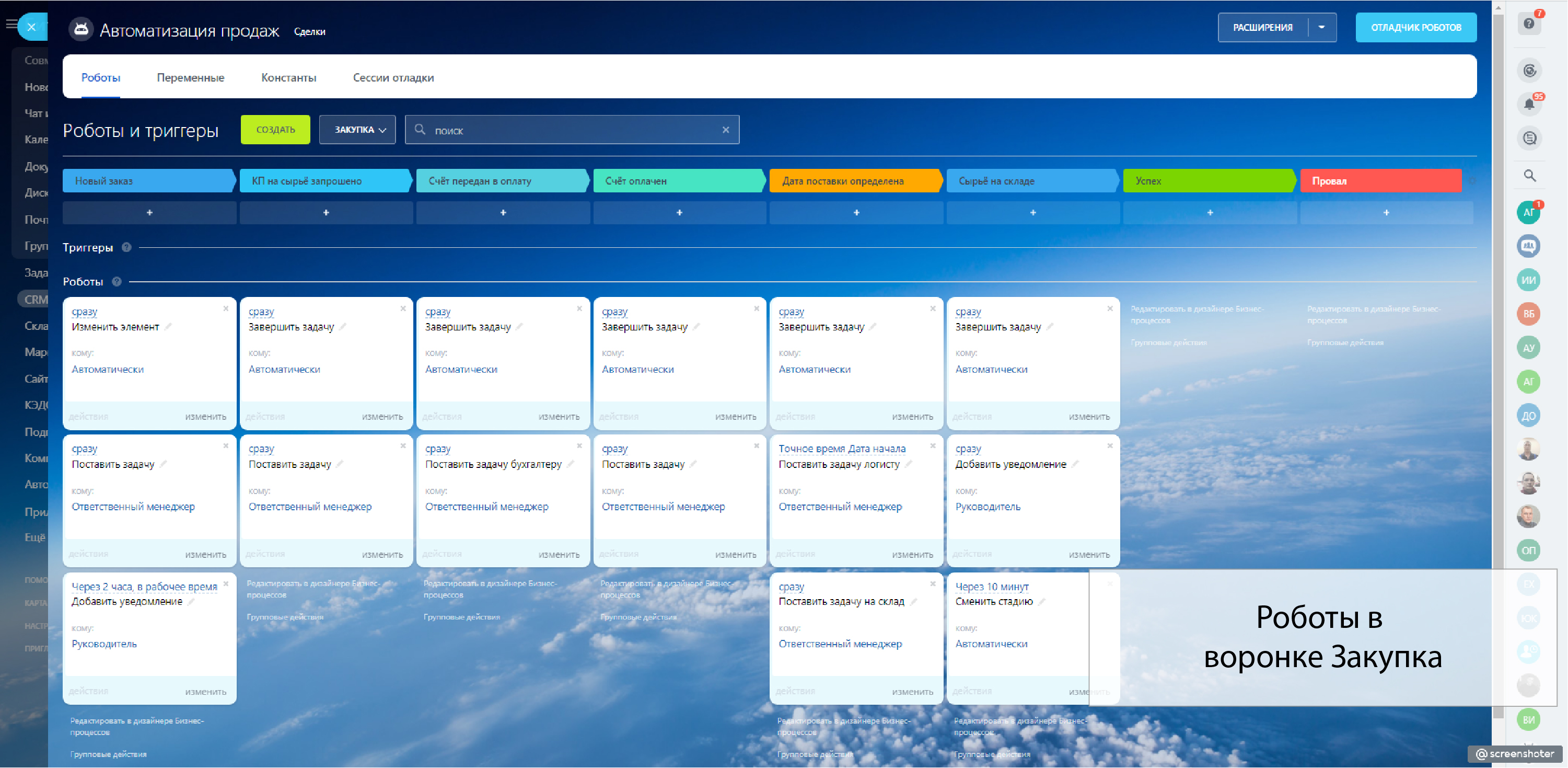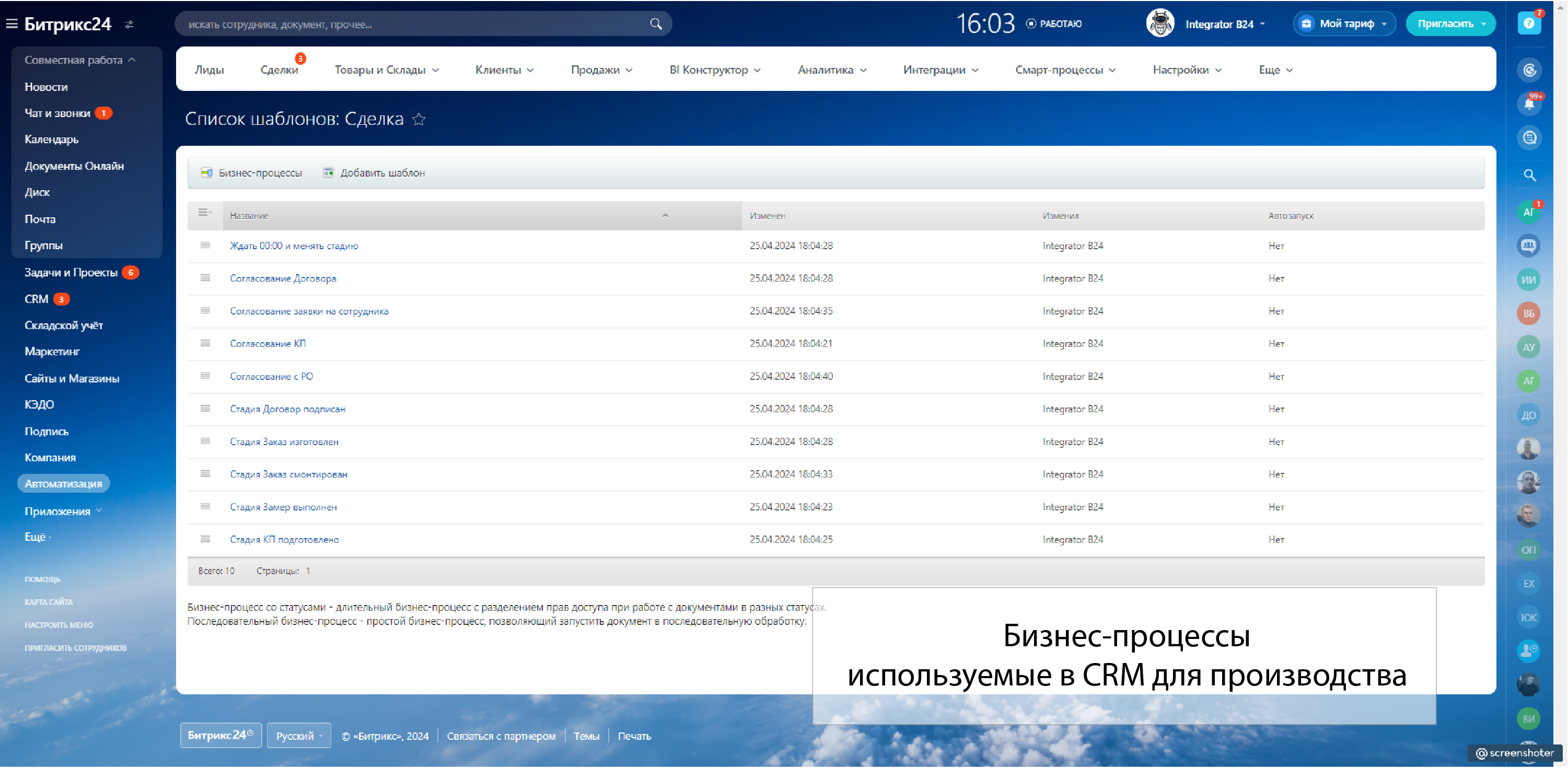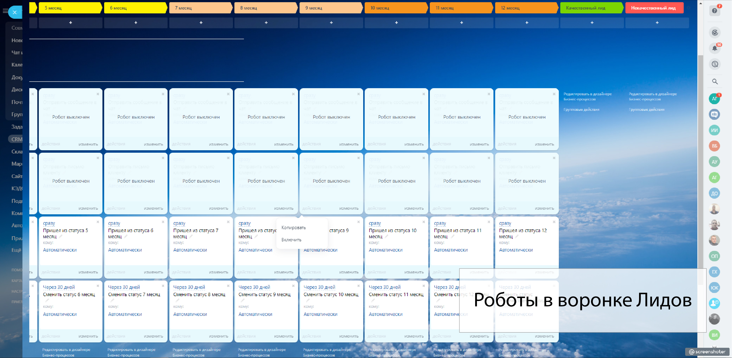 Готовая CRM для производственной компании отлаженное на множестве производств, содержащая процессы лидогенерации, продаж, продаж через замер, производственная воронка, монтаж, расчет и согласование коммерческого предложения, создание и согласование договора, воронка для подрядного производства, воронка для процесса закупки, воронка для получения обратной связи и рекламации, HR воронка.