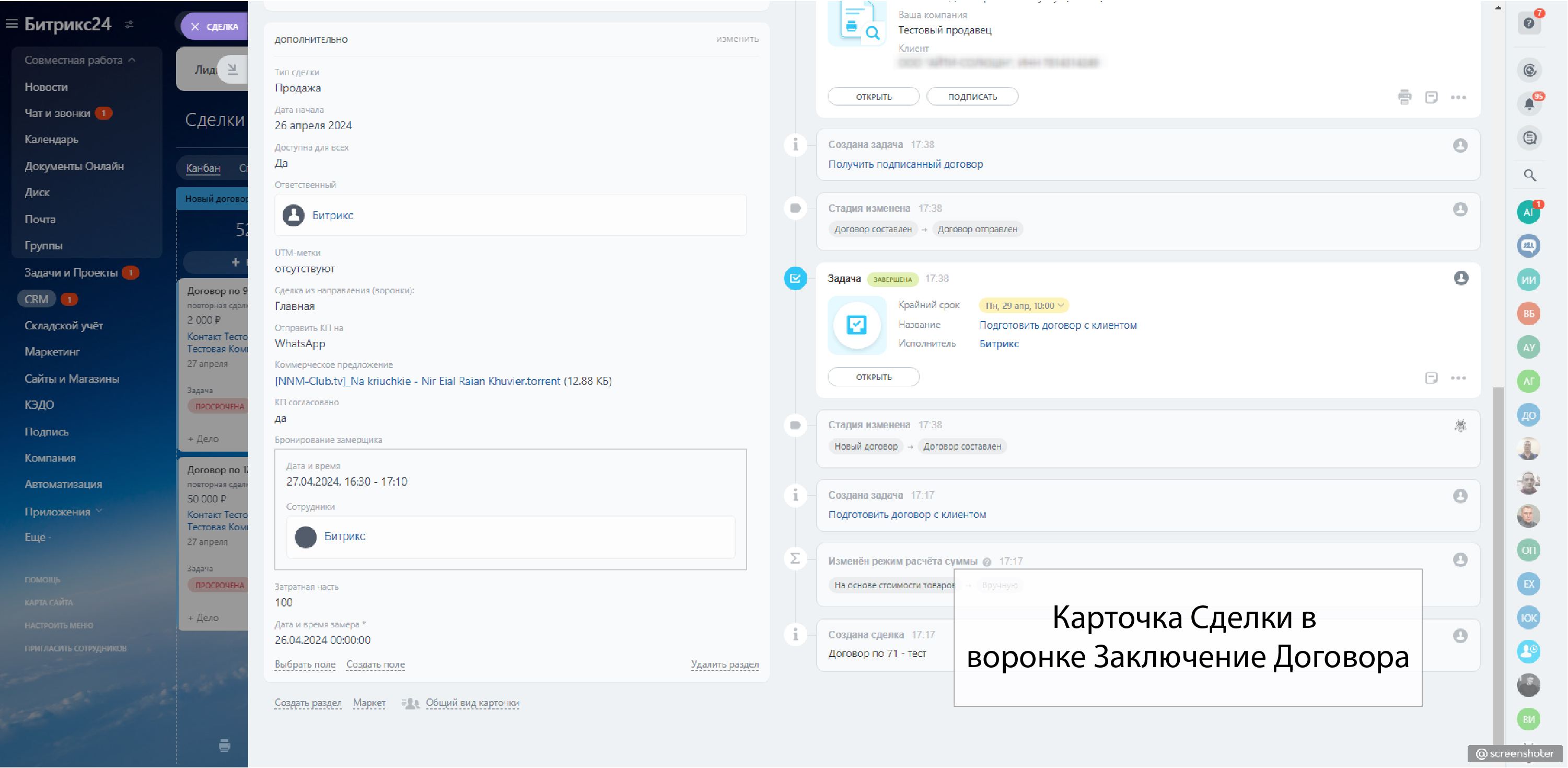 3. Основную воронку Продажа с подпроцессами Замер, Расчет КП и Договор