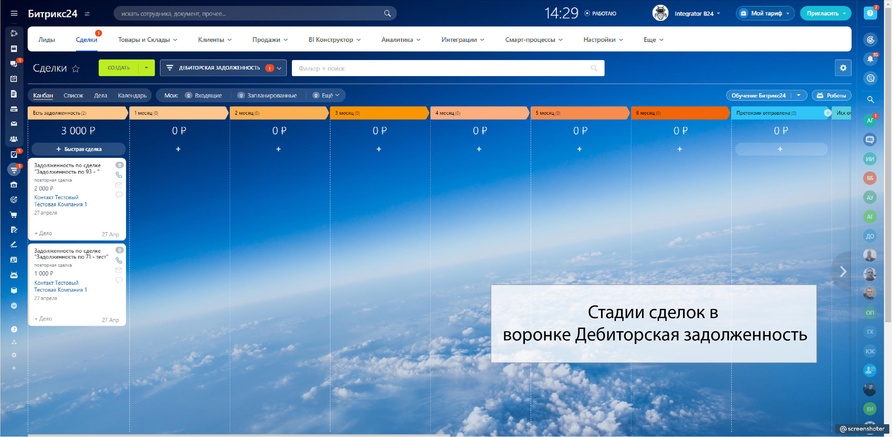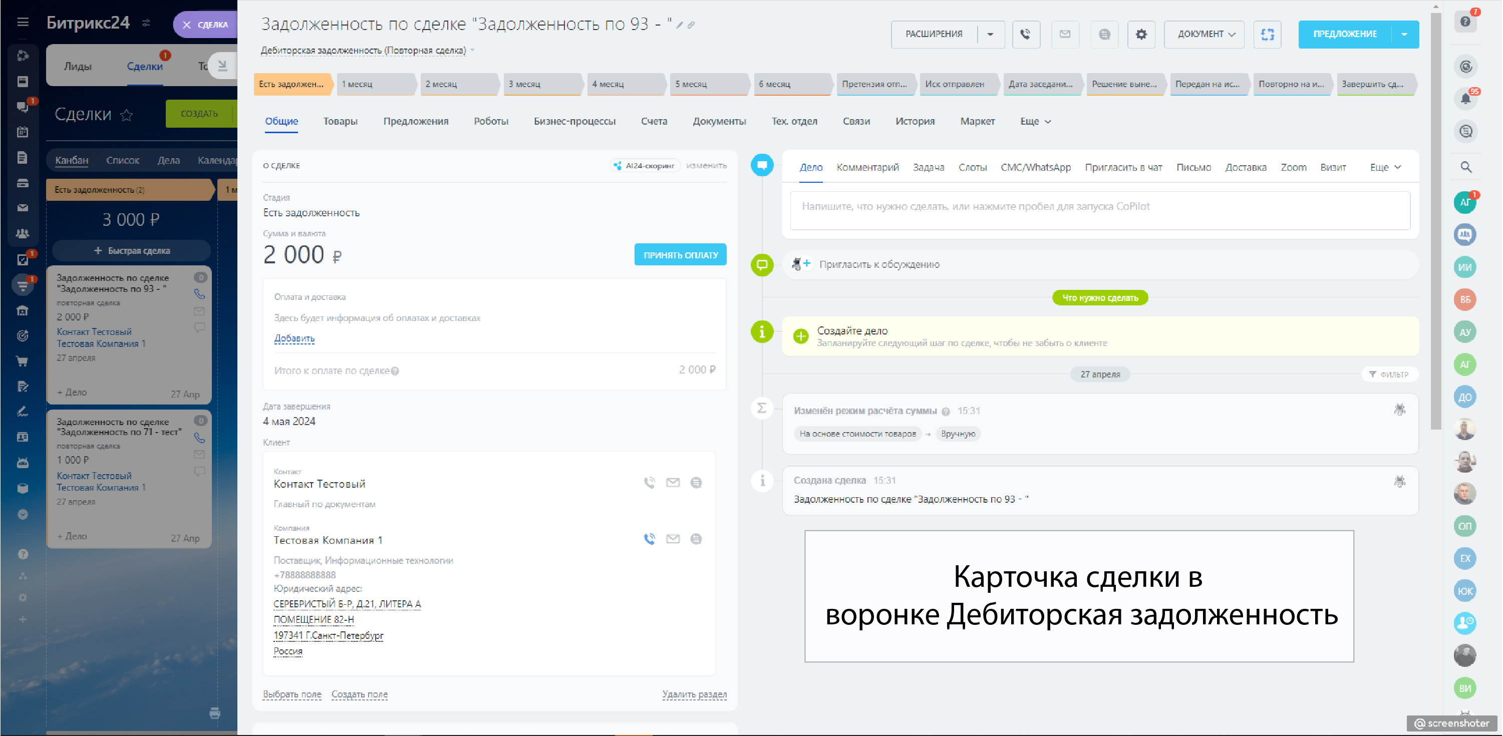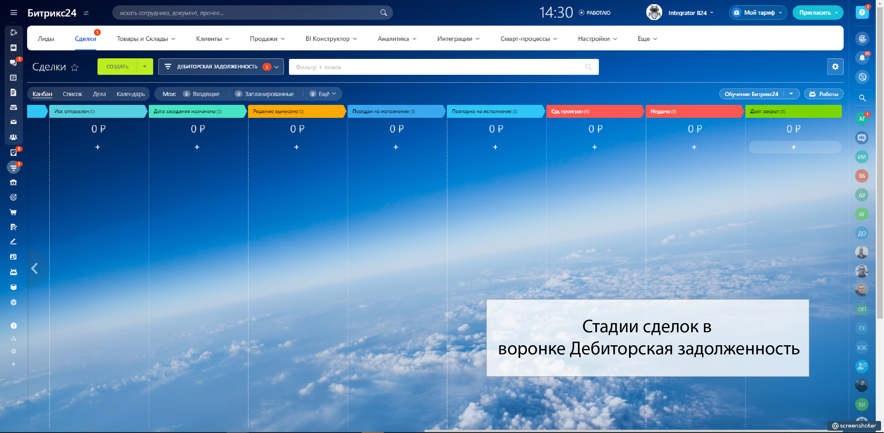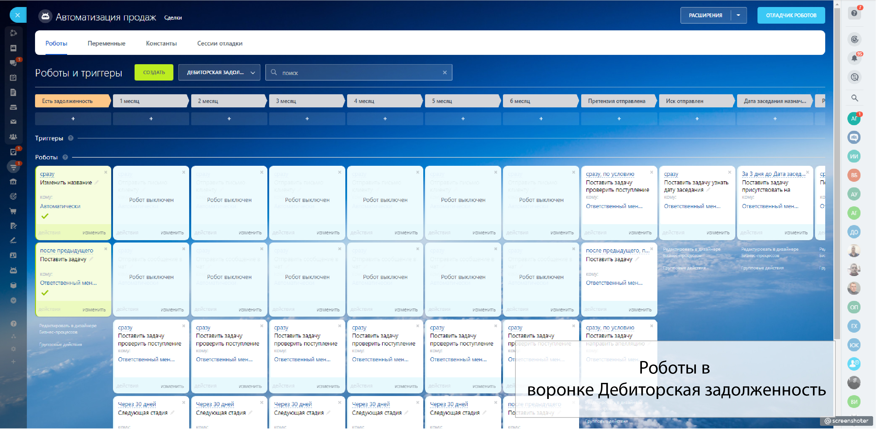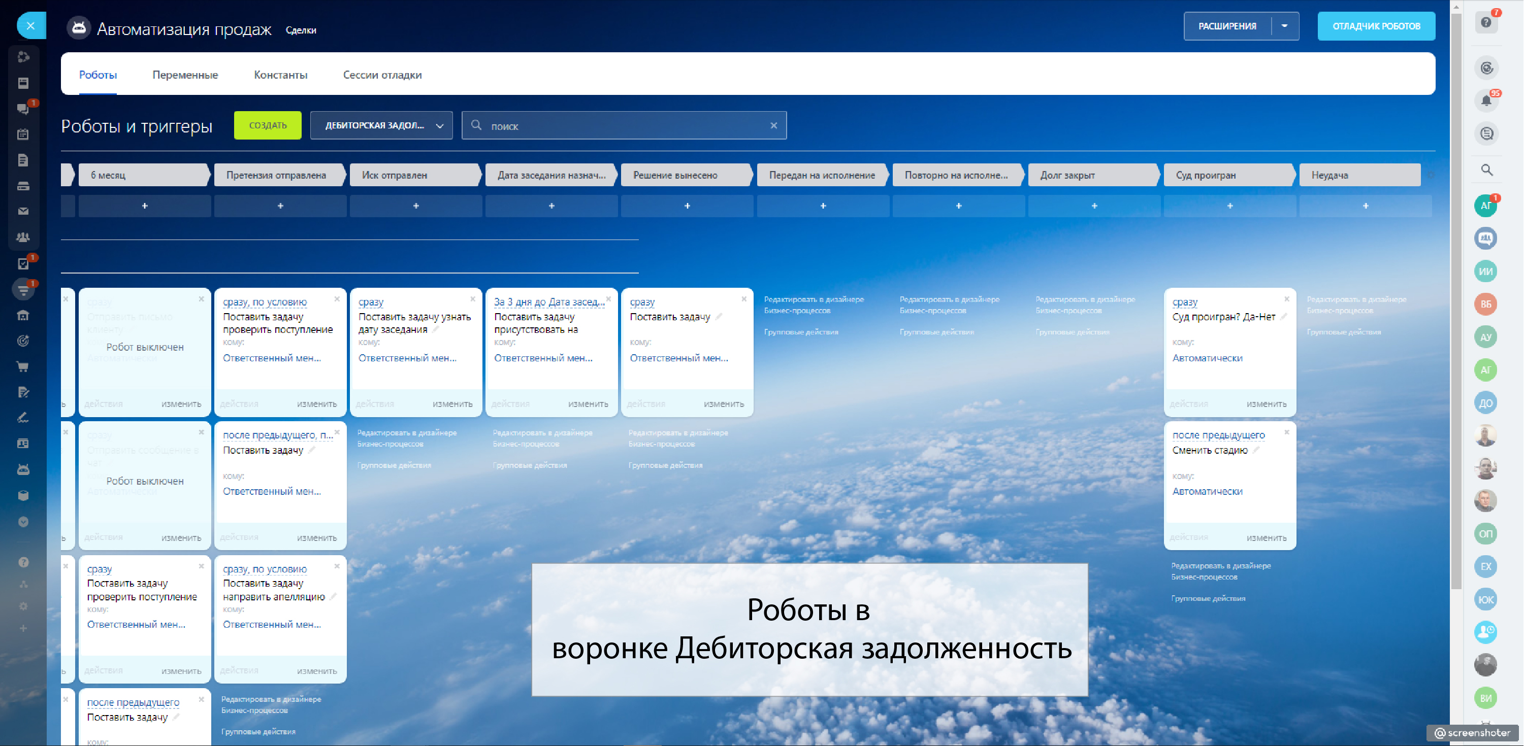 8. Автоворонку Дебиторская задолженность - для работы с клинтами по отсрочке и взысканий задолженности как финансовой так и закрывающих документов