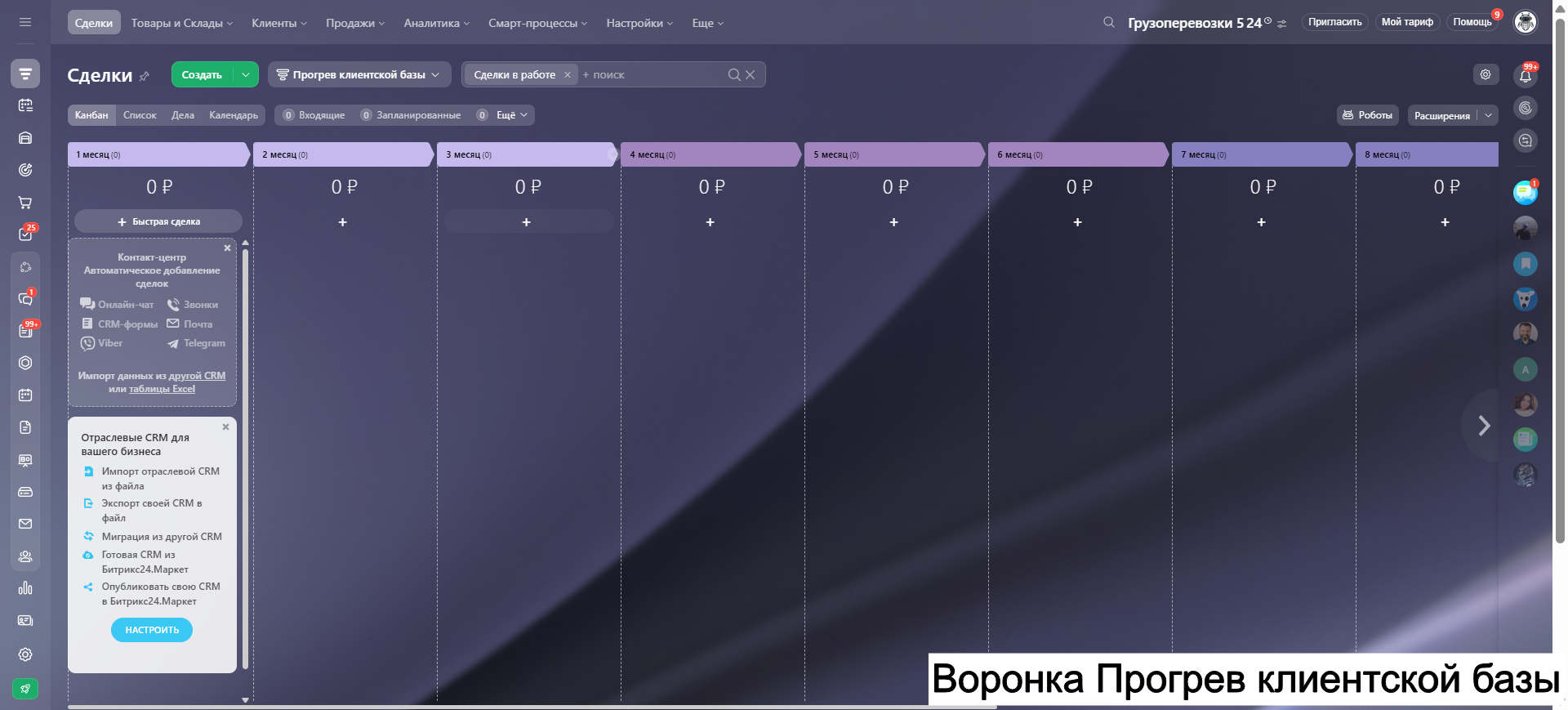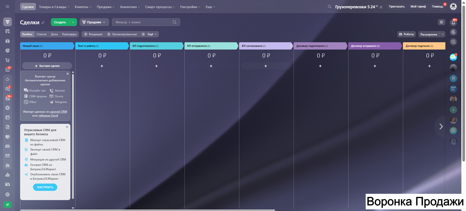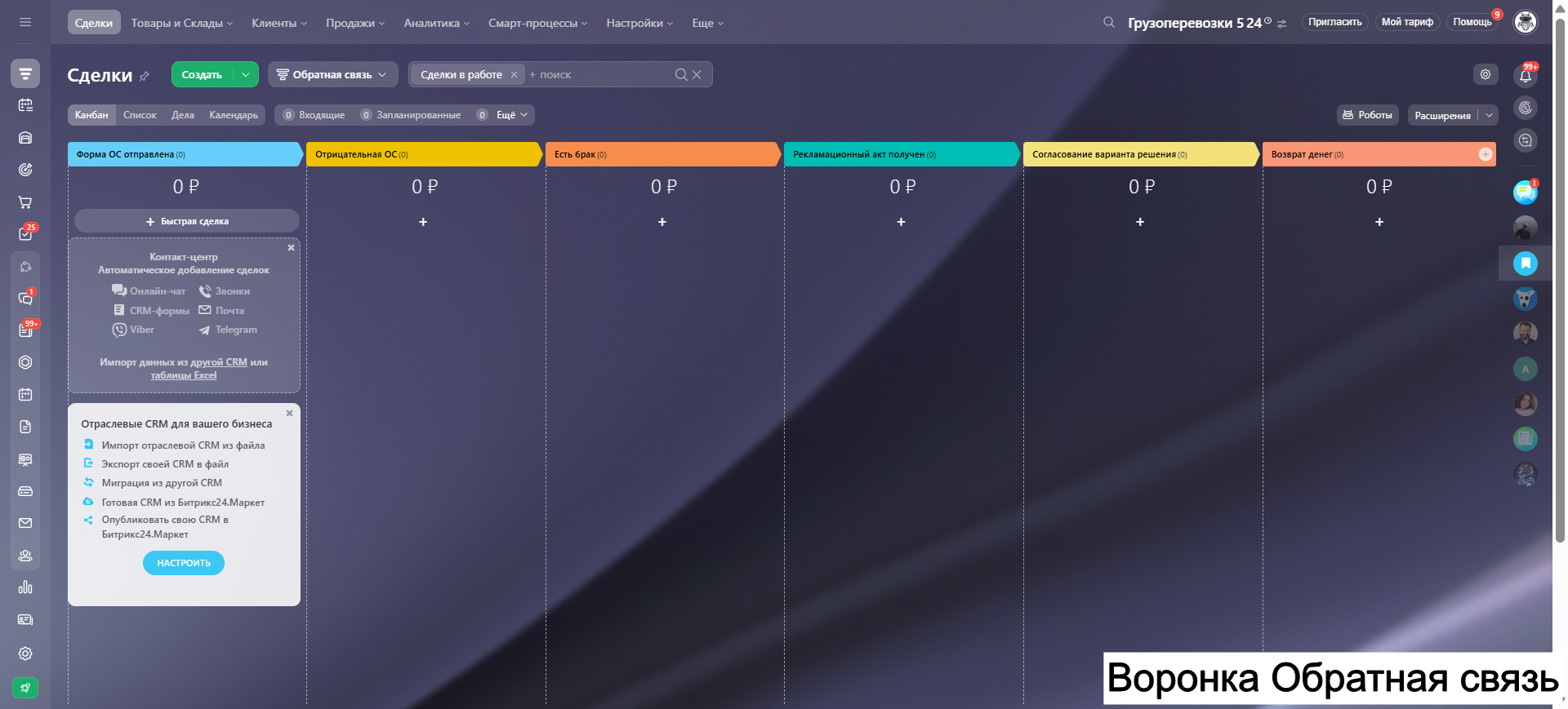 ЛОГИСТИКА - ГОТОВАЯ CRM система: 5 воронок - автоматизация продаж, перевозки, обратная связь, действующие клиенты и холодные обзвоны
