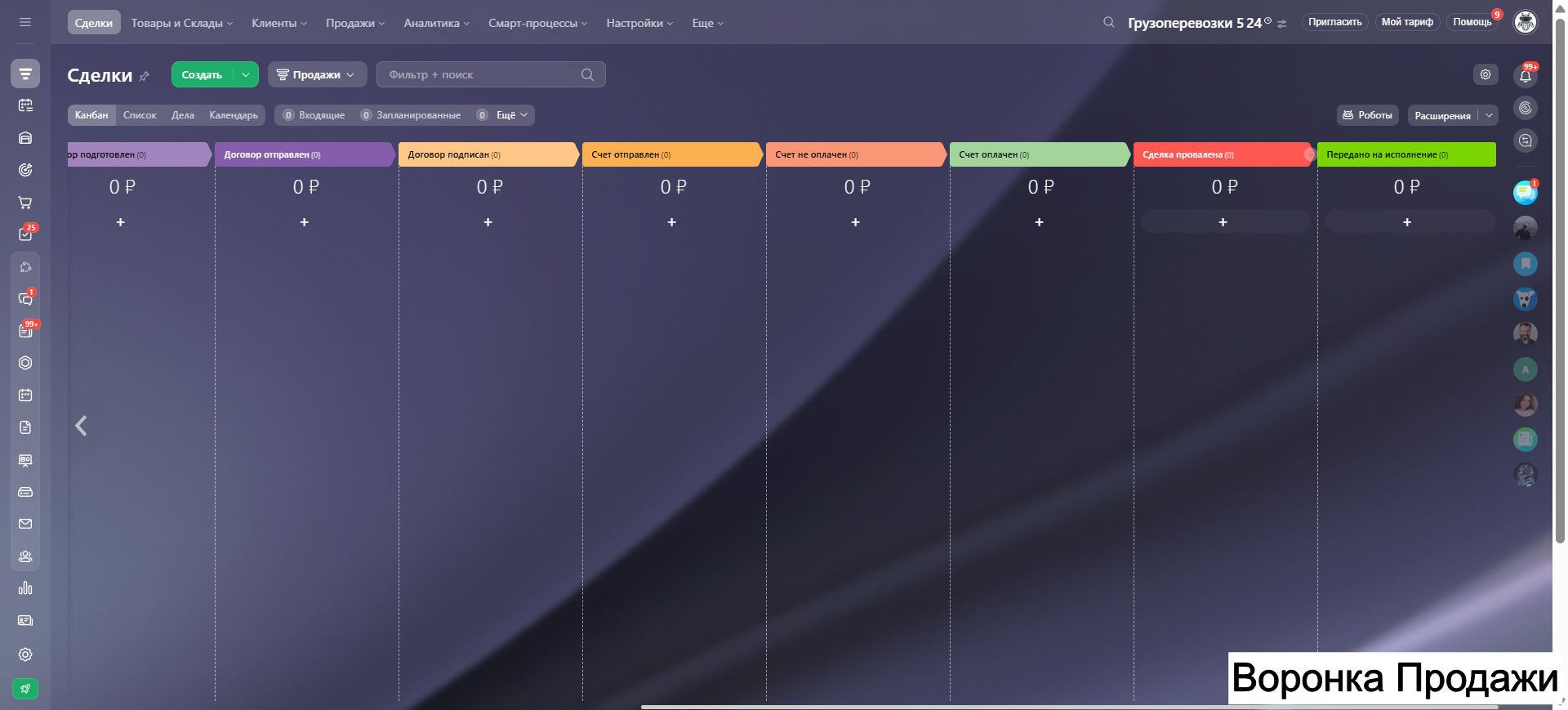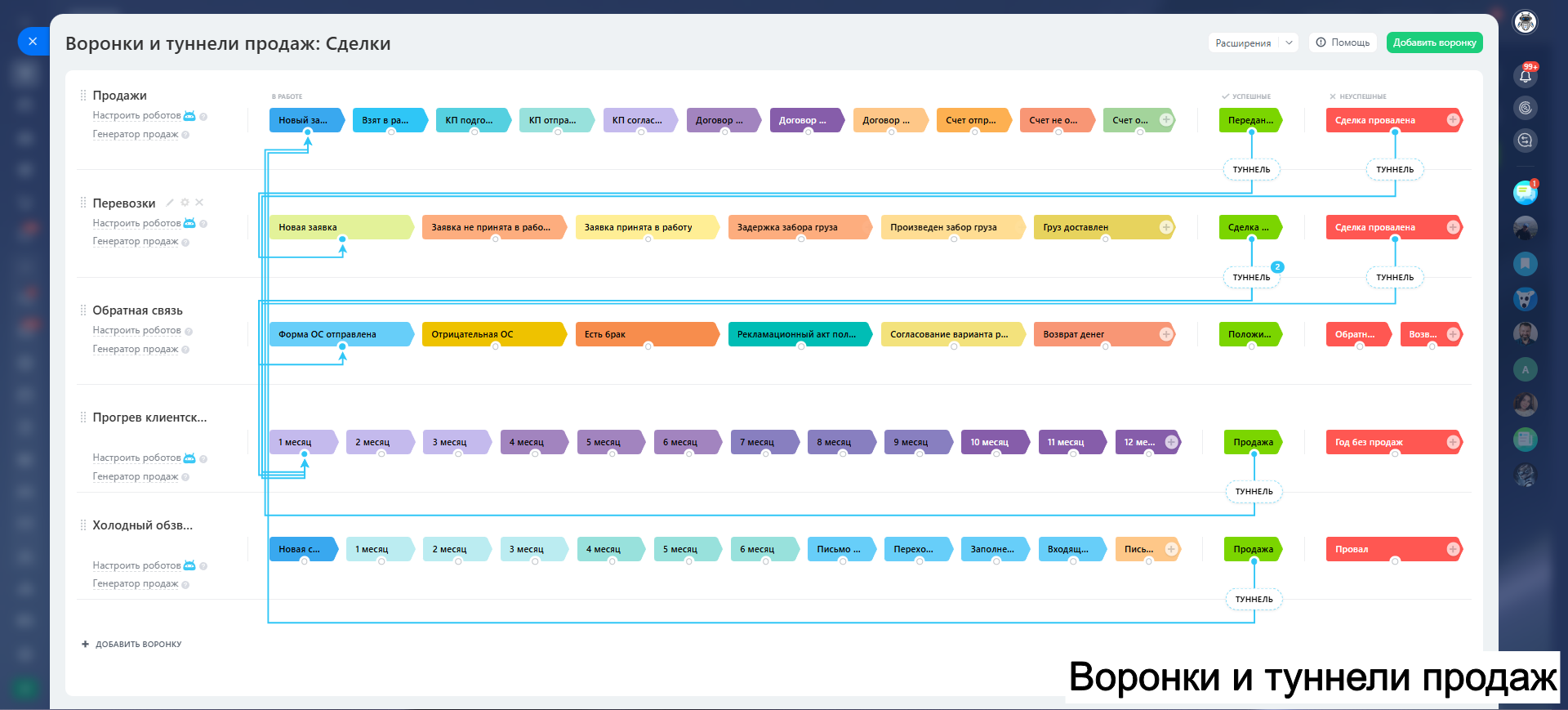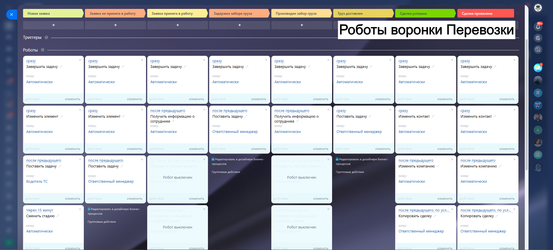 ЛОГИСТИКА - ГОТОВАЯ CRM система: 5 воронок - автоматизация продаж, перевозки, обратная связь, действующие клиенты и холодные обзвоны