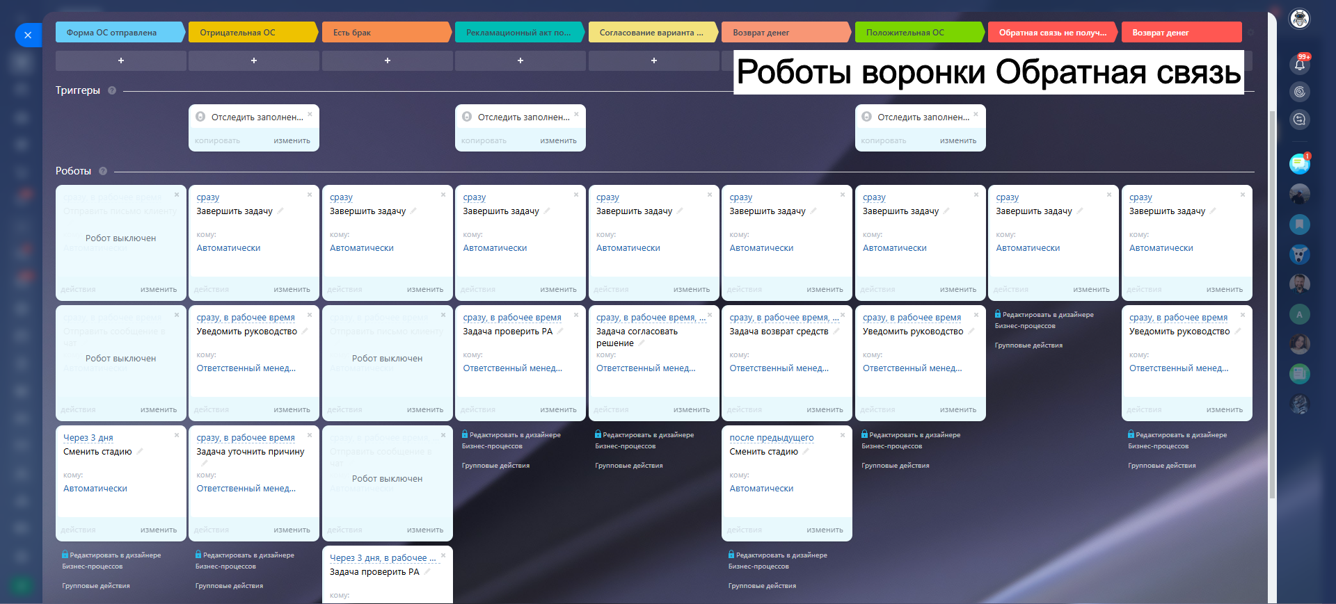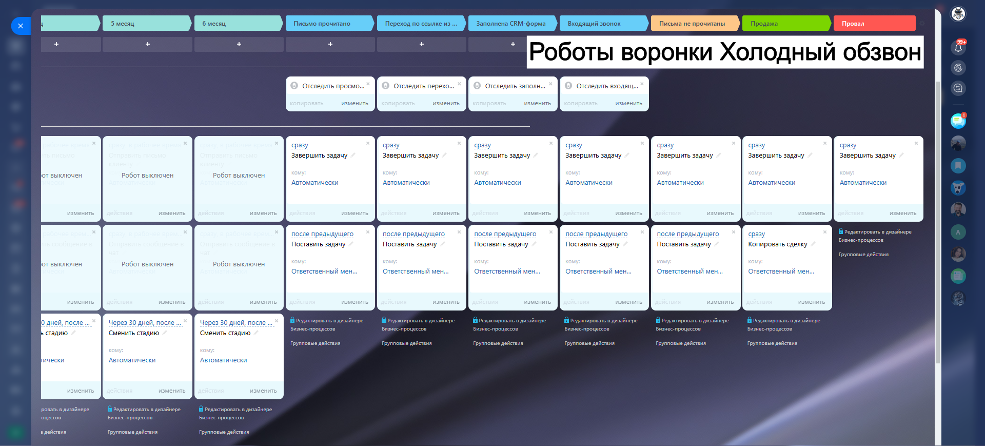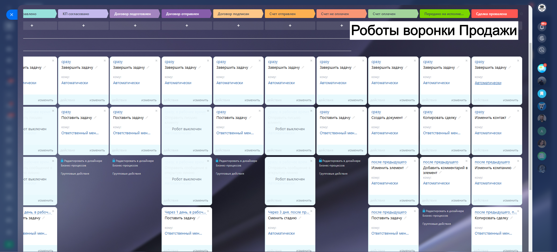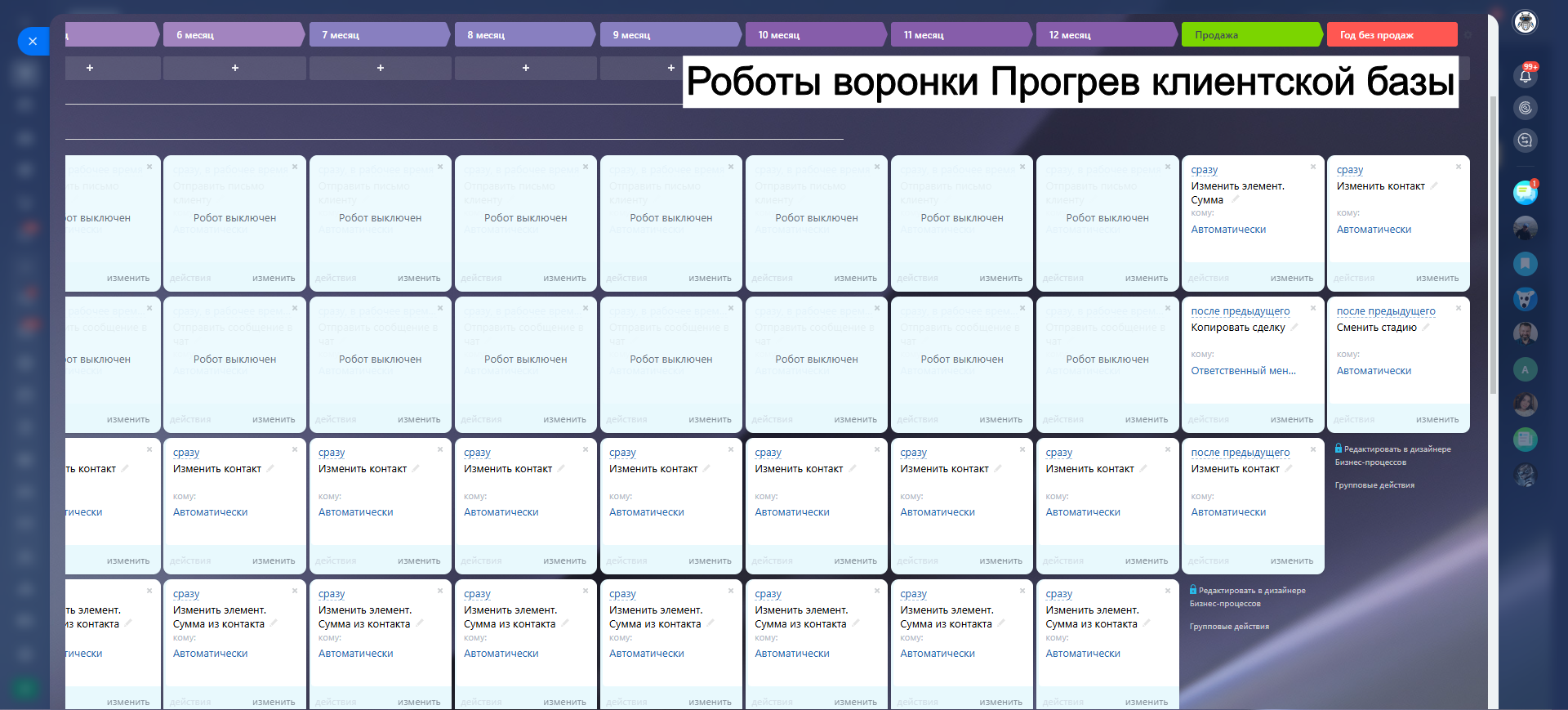 Мы разработали 5 автоматизированных воронок, каждая из которых отвечает за отдельный блок бизнес-процессов: