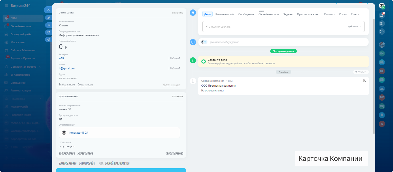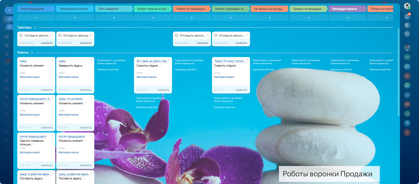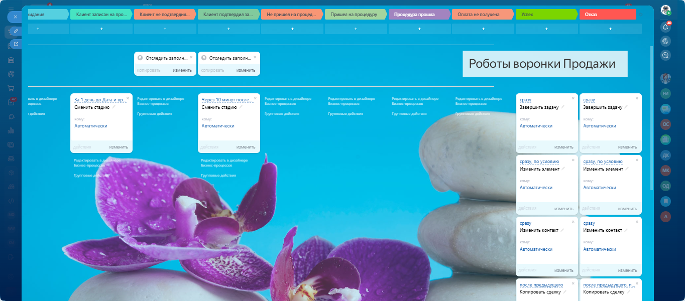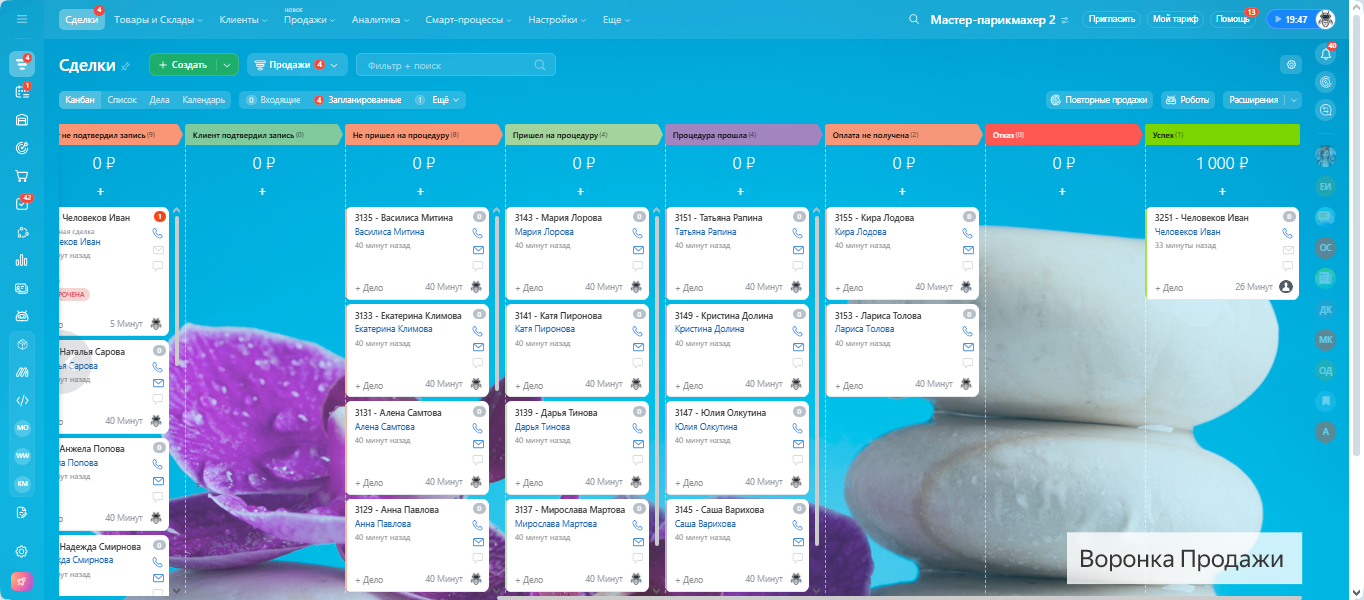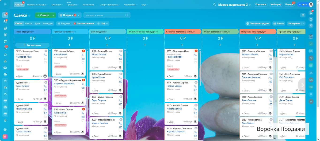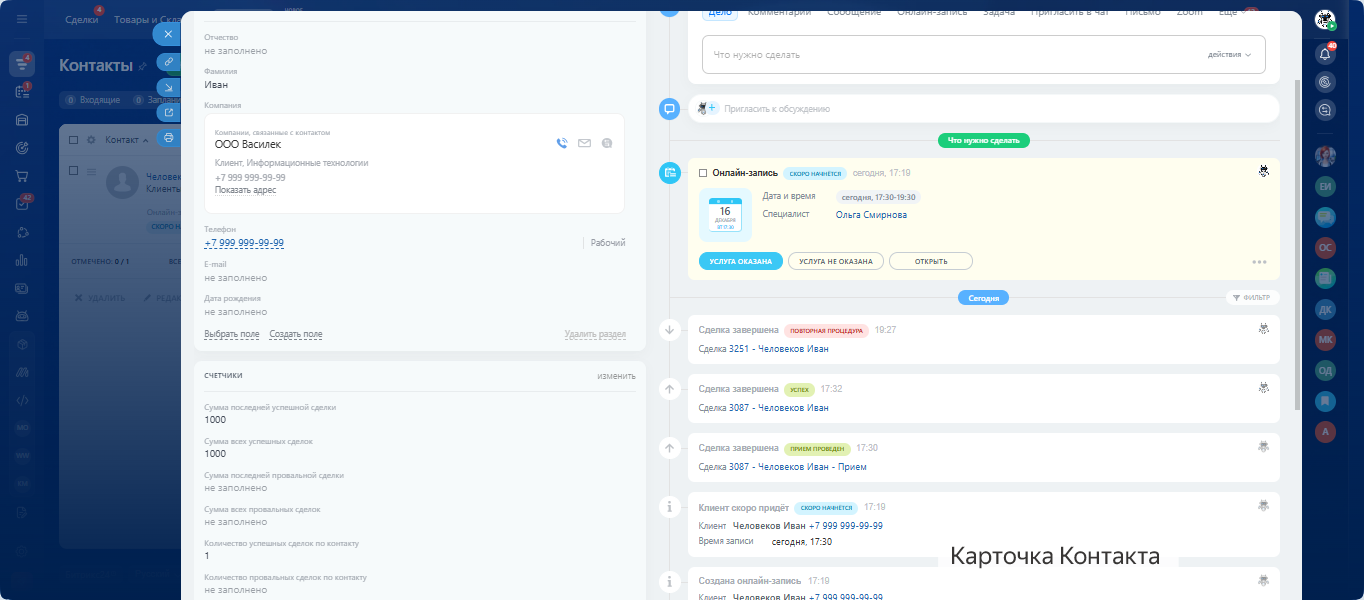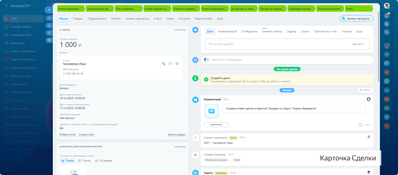 Все настроено: воронки, задачи, напоминания, онлайн-запись и формы обратной связи.