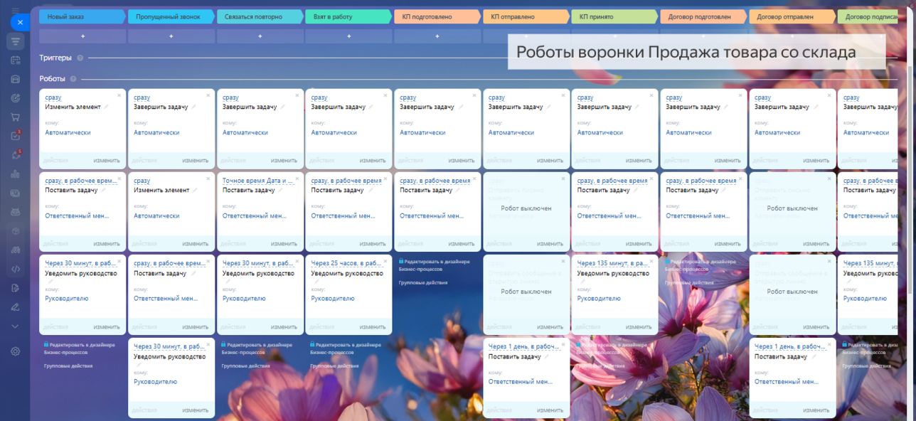 Хотите упростить управление продажами, закупками и логистикой? Наше готовое решение включает 5 автоматизированных воронок, которые охватывают весь цикл сделки: