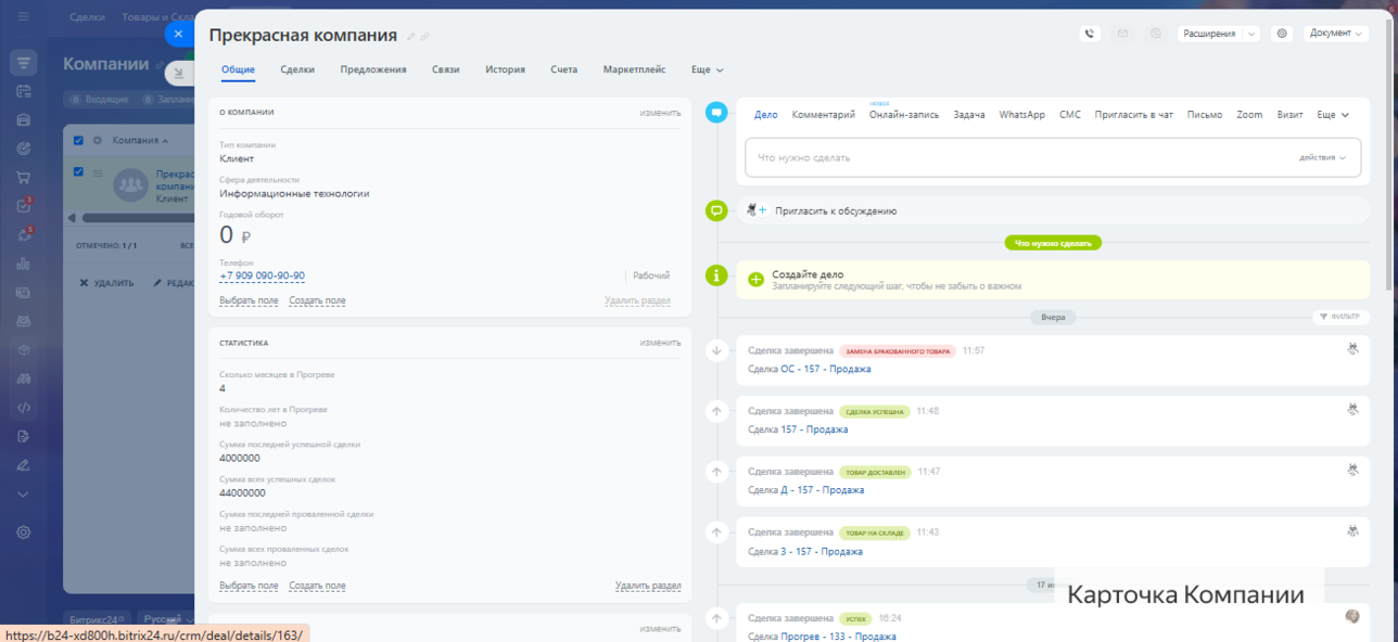Видео инструкция по работе с готовой CRM Оптовые продажи в YouTube: https://youtu.be/UKq9lyWyTsA