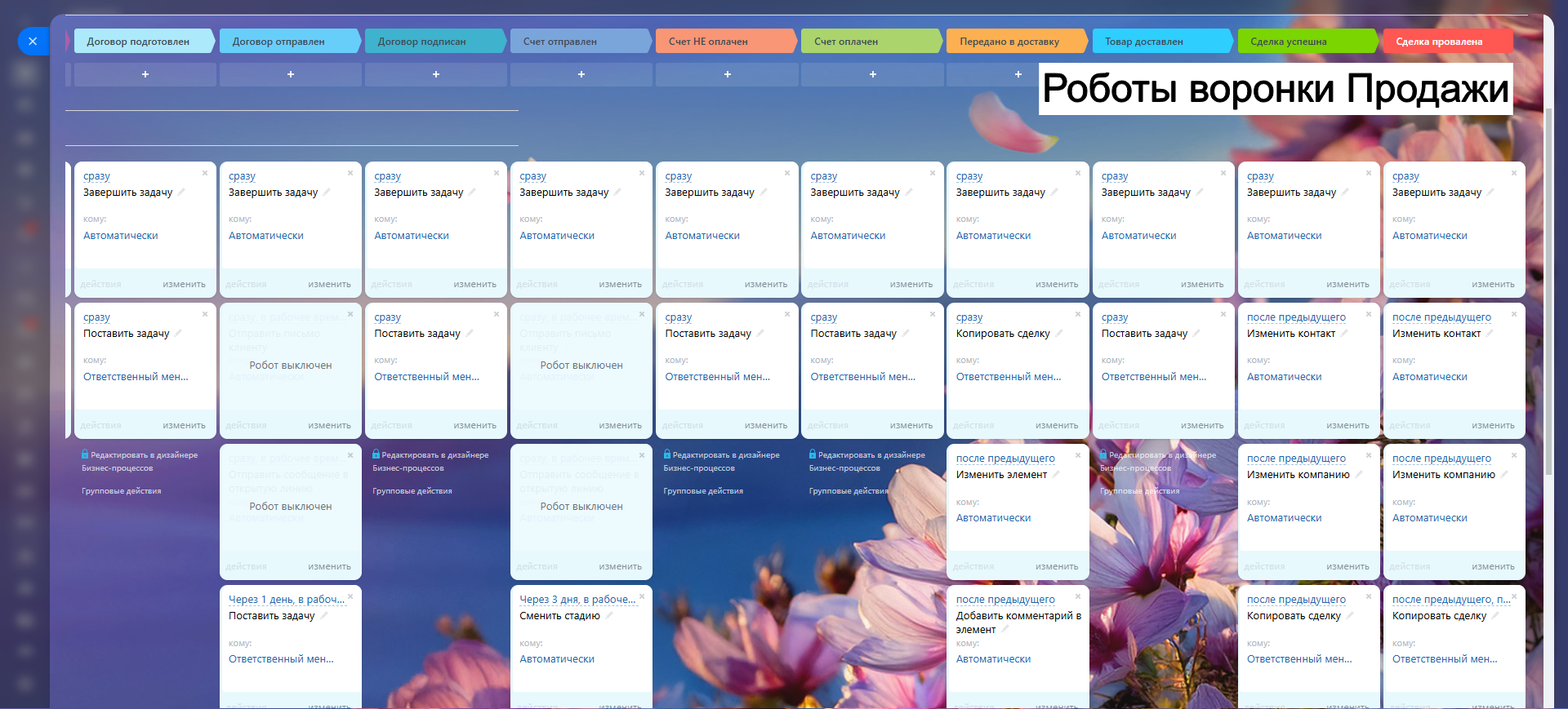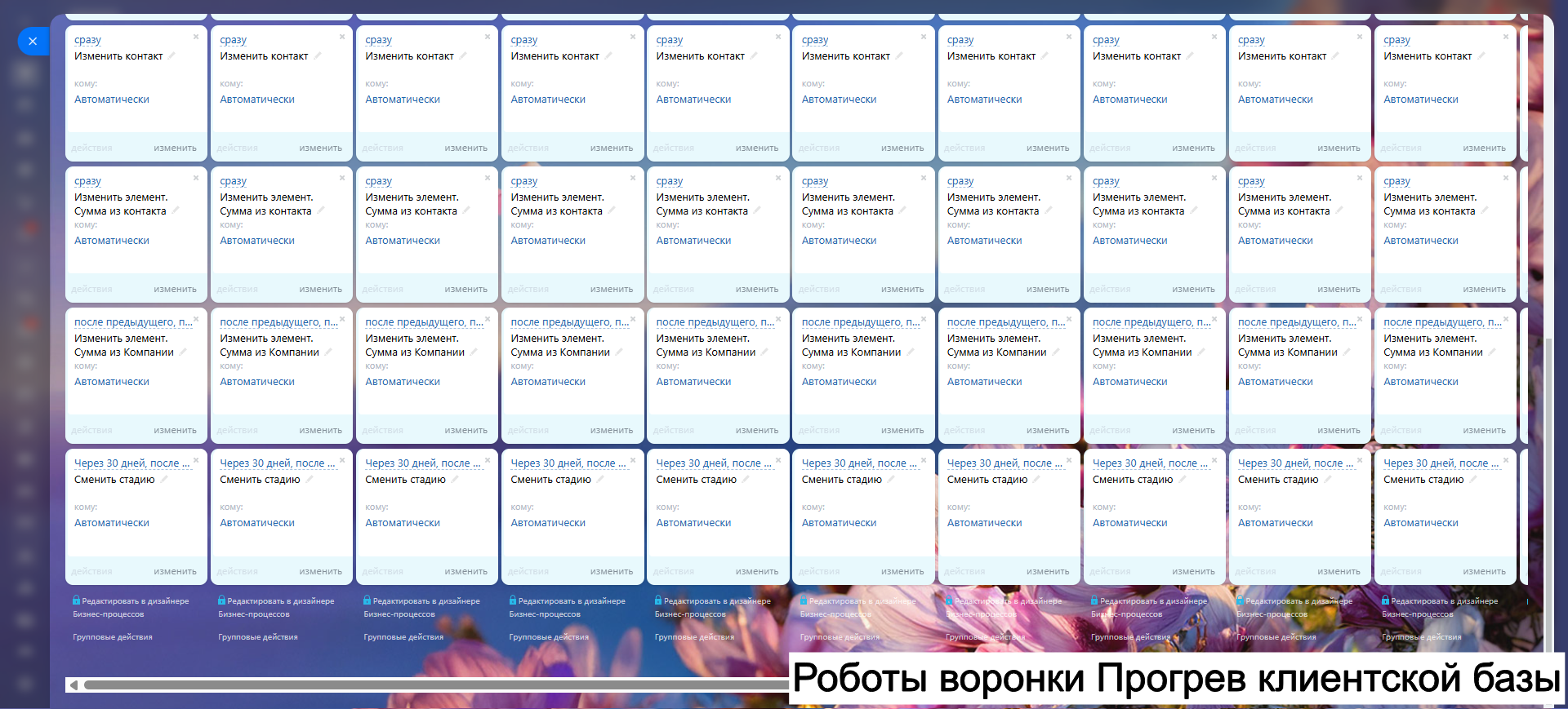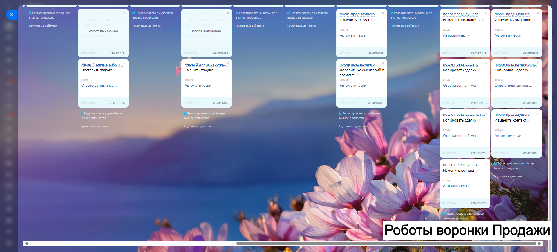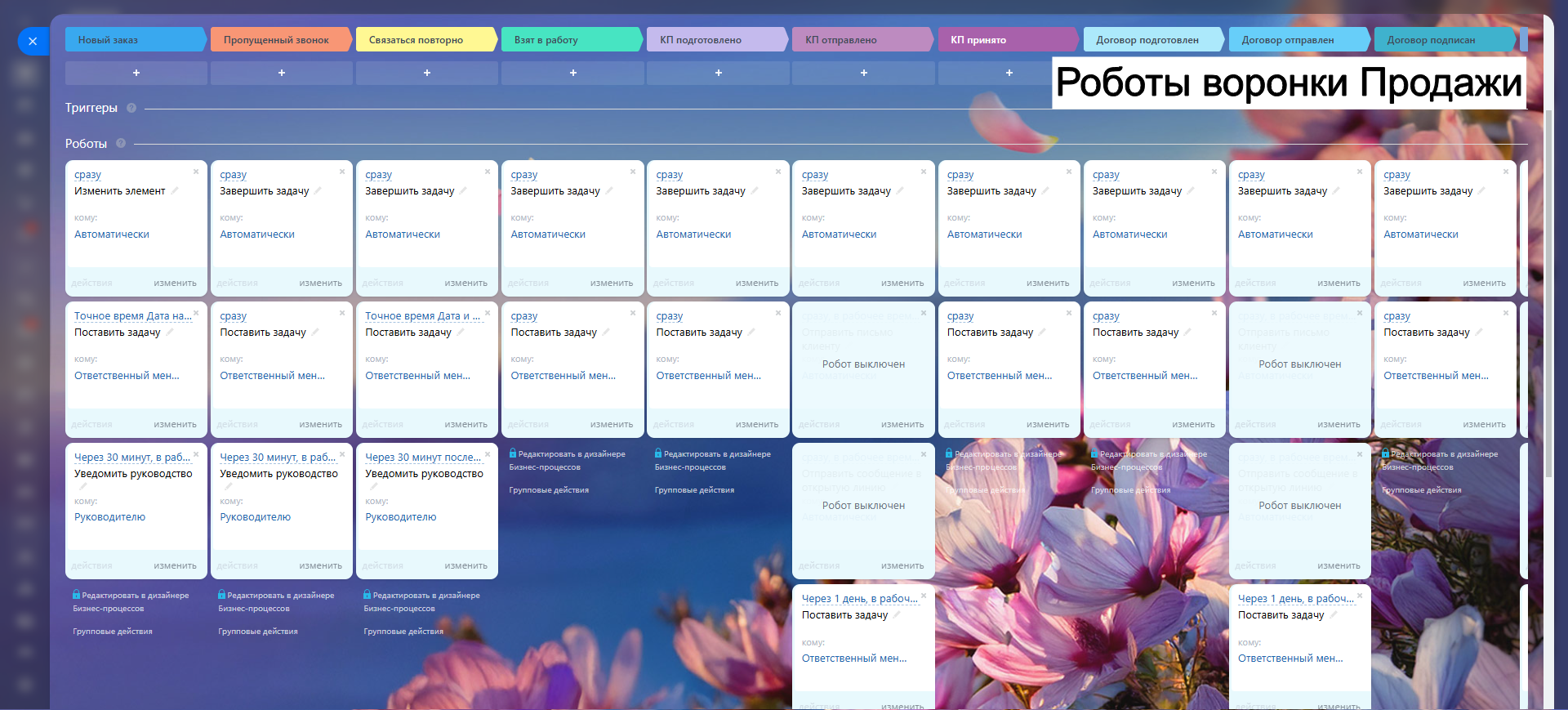 Благодаря гибким настройкам, автоматическим задачам и уведомлениям, вы сокращаете рутину, увеличиваете конверсию и удерживаете клиентов.