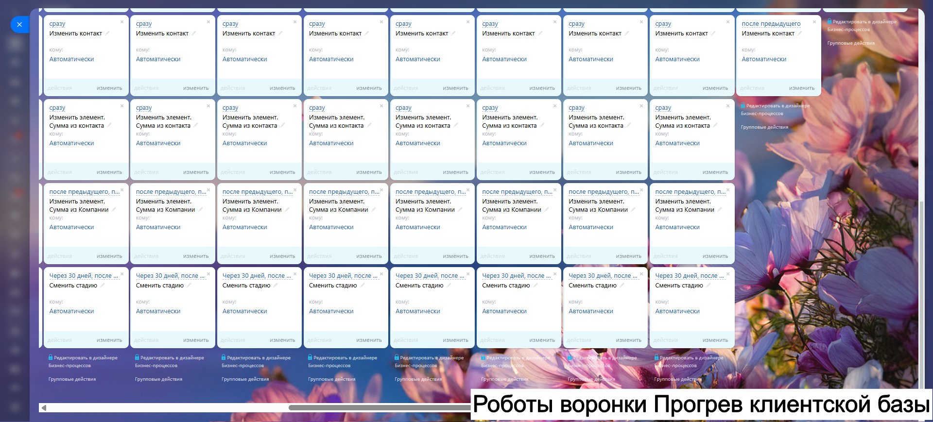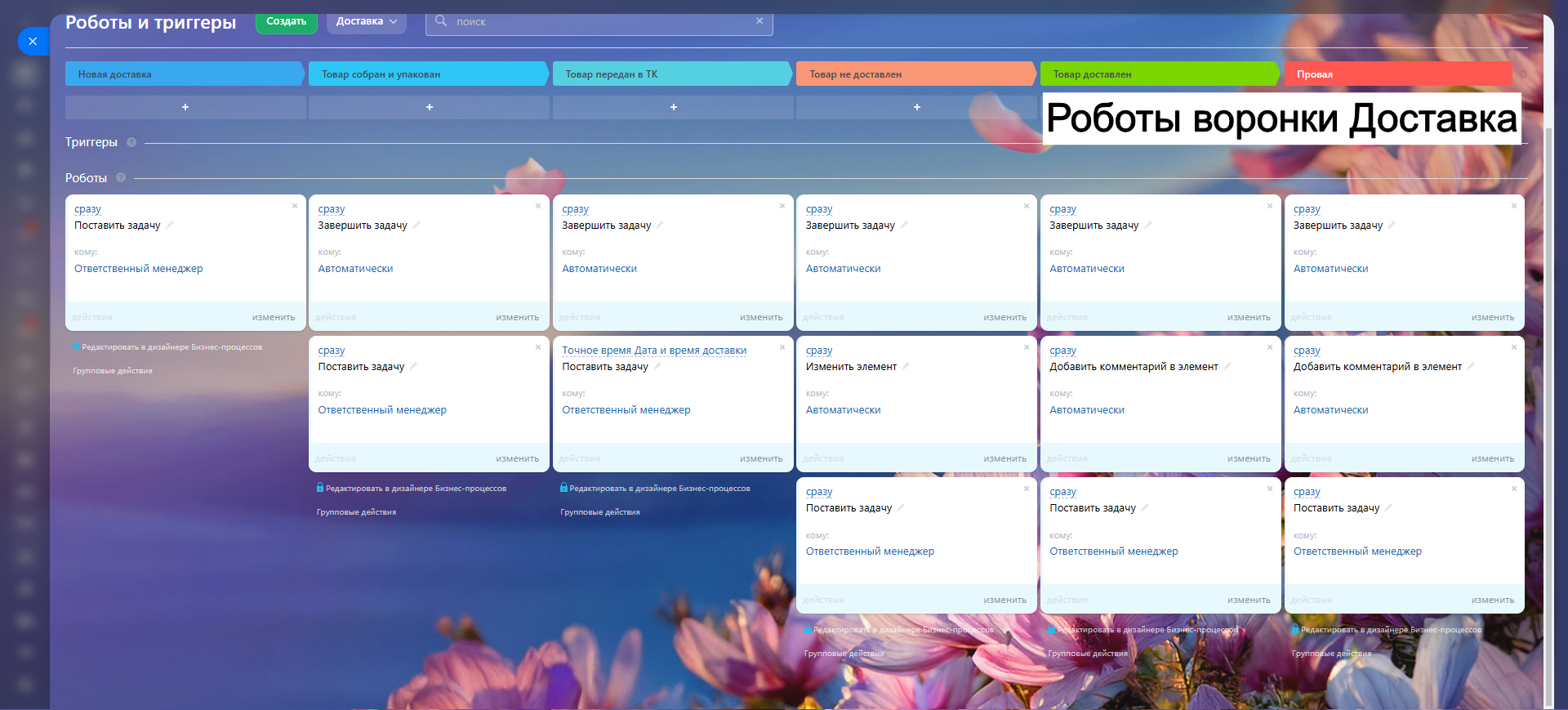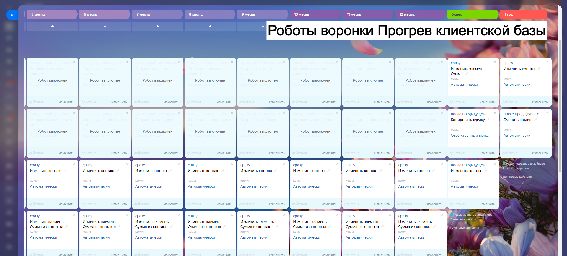 Благодаря гибким настройкам, автоматическим задачам и уведомлениям, вы сокращаете рутину, увеличиваете конверсию и удерживаете клиентов.