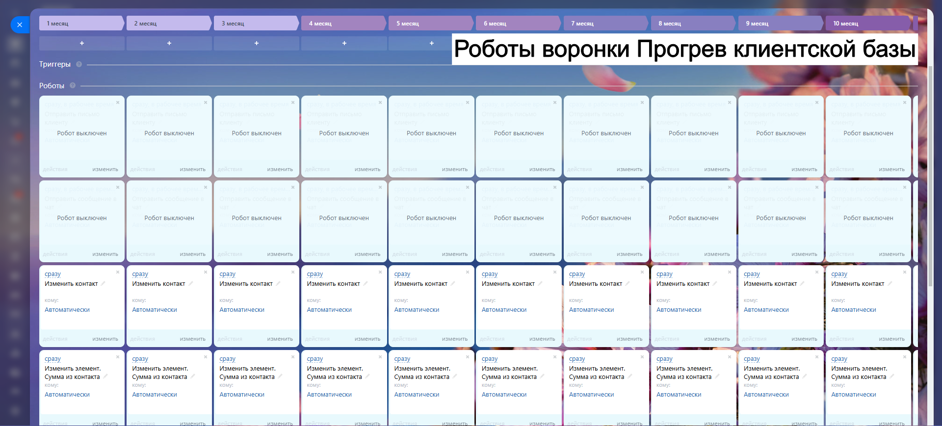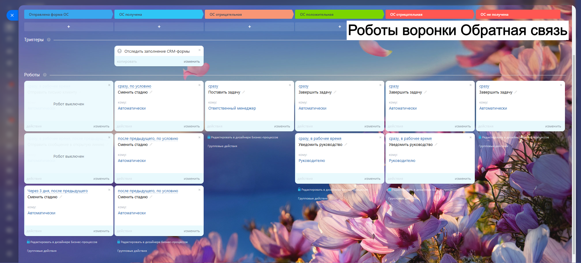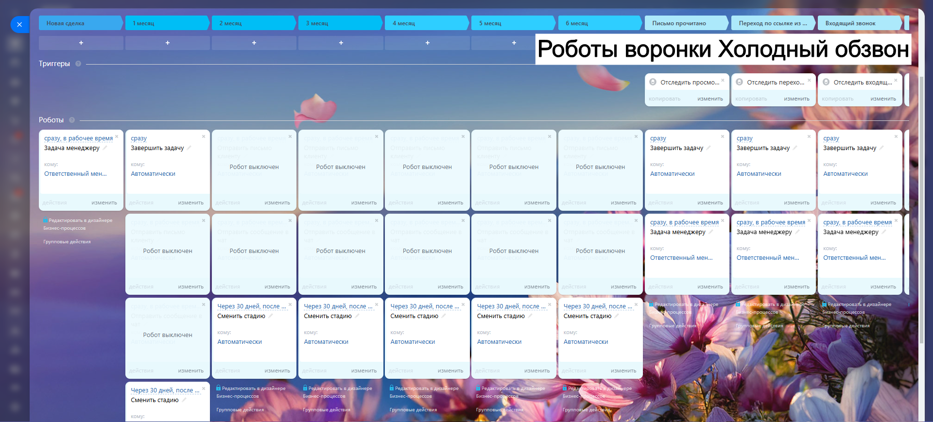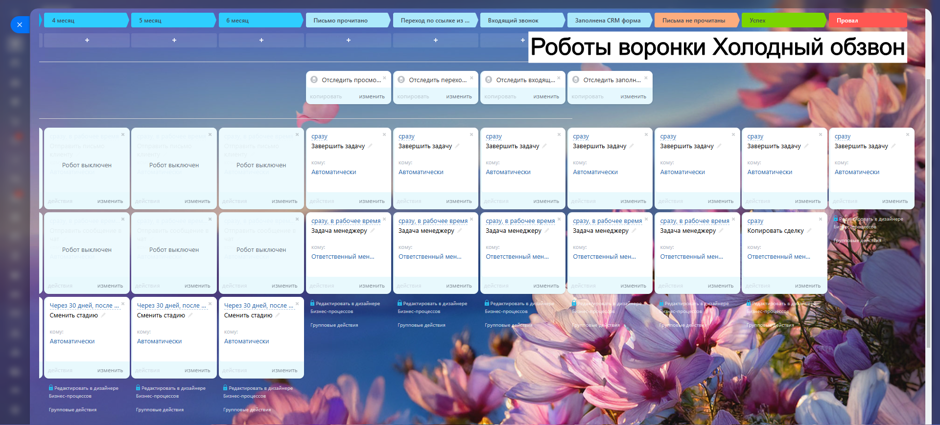 Благодаря гибким настройкам, автоматическим задачам и уведомлениям, вы сокращаете рутину, увеличиваете конверсию и удерживаете клиентов.