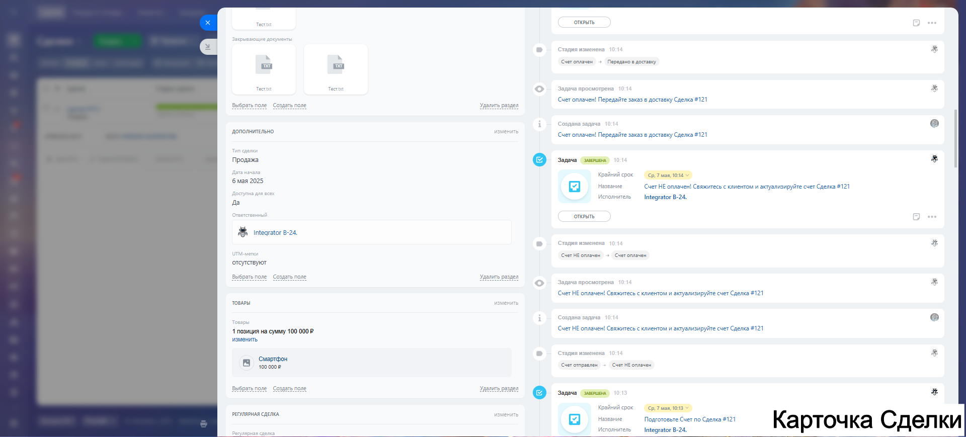 - Продажи – от заявки до закрытия сделки.