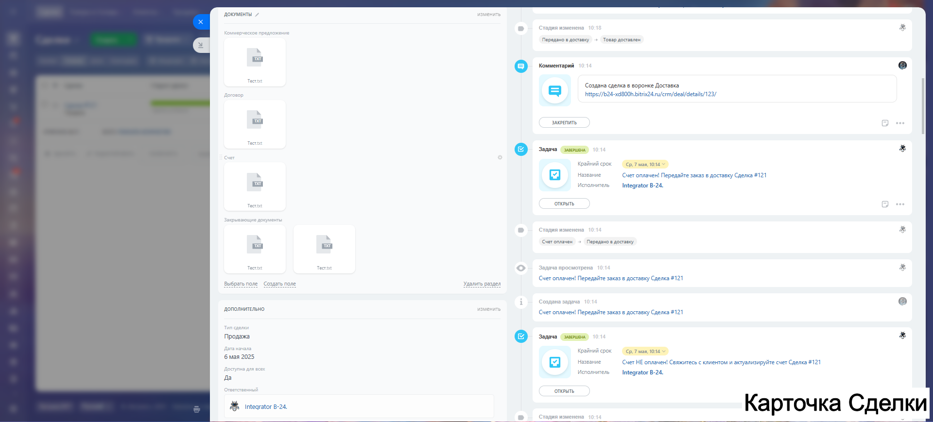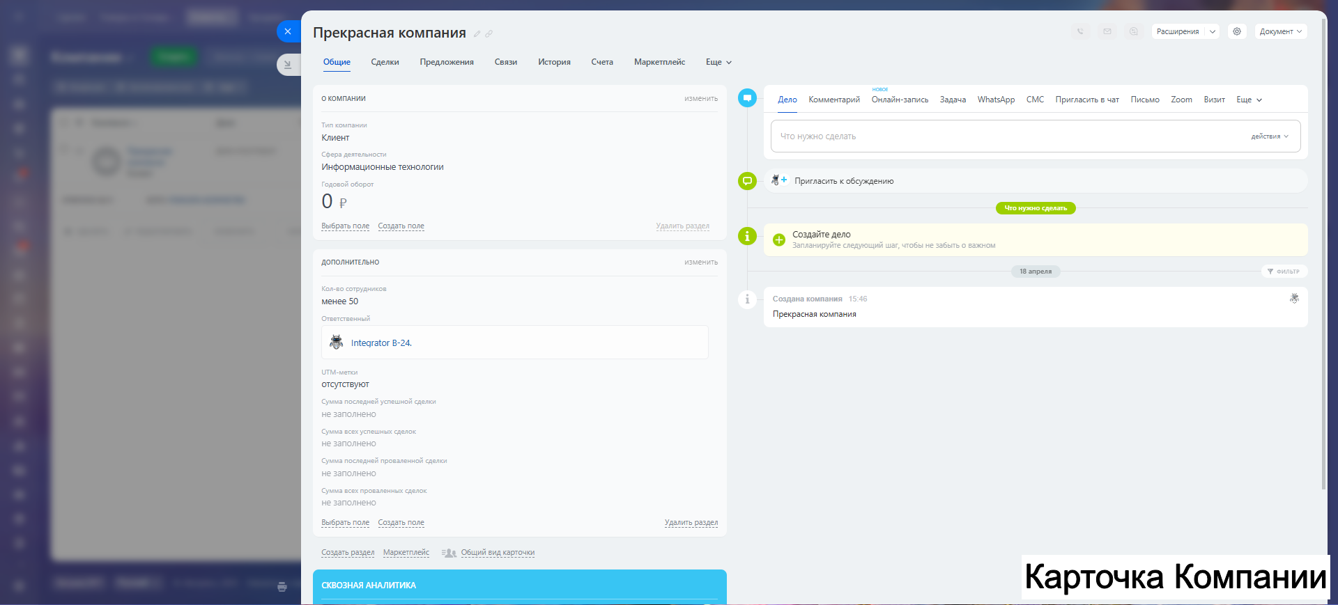 - Создание КП, договоров, счетов.