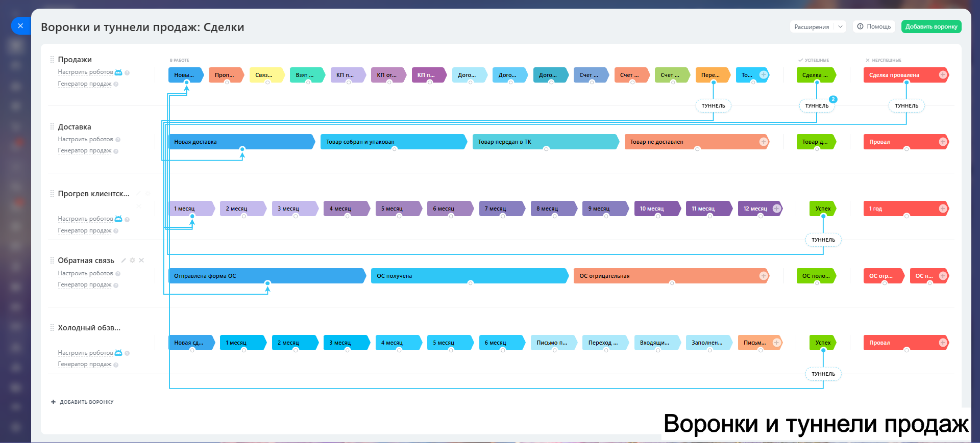 > 5 рабочих воронок:
