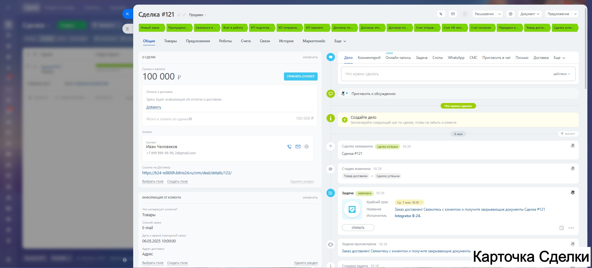 - Стадия Товар доставлен