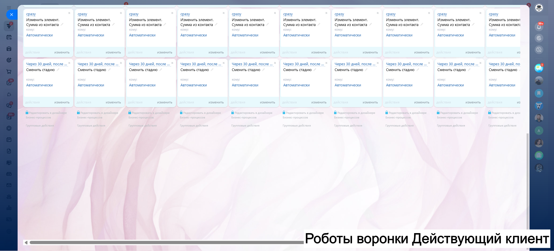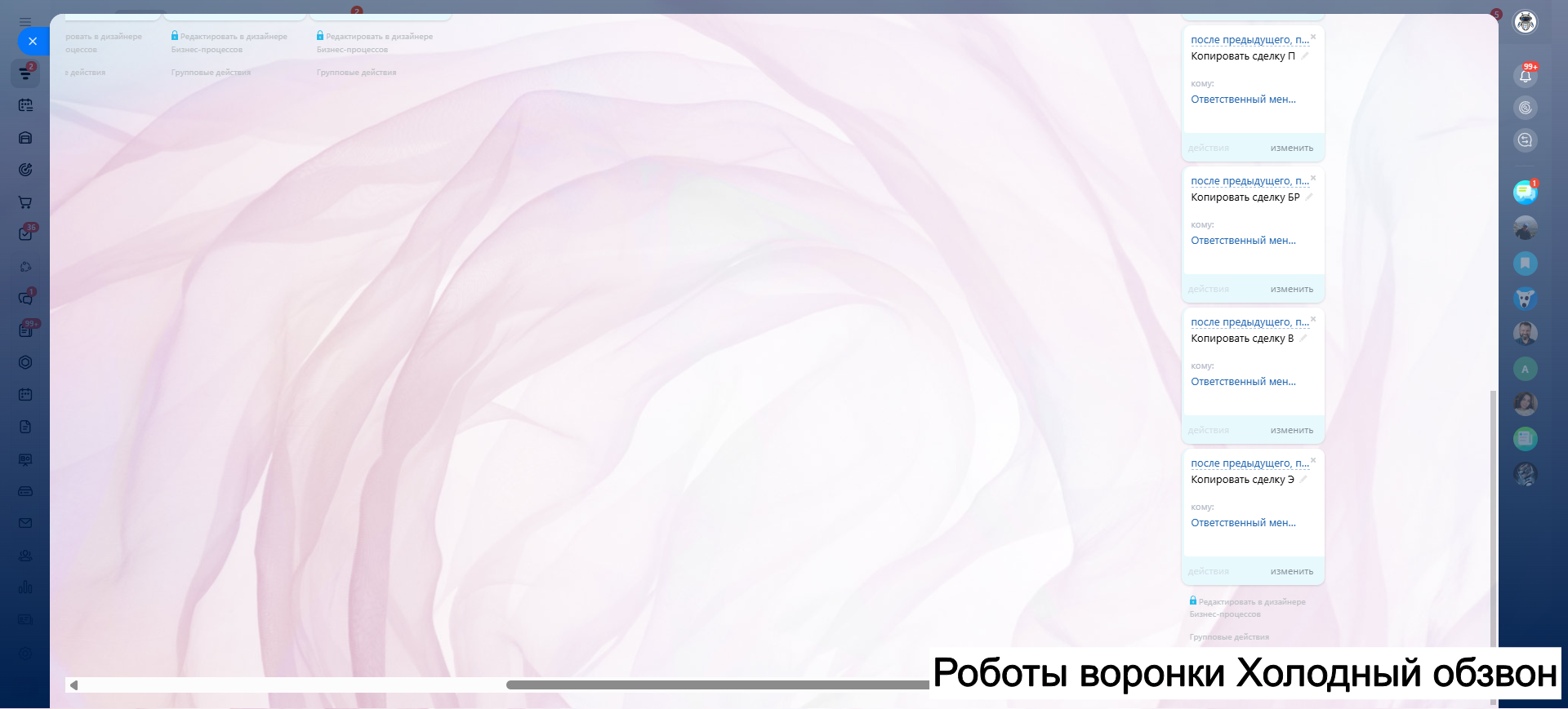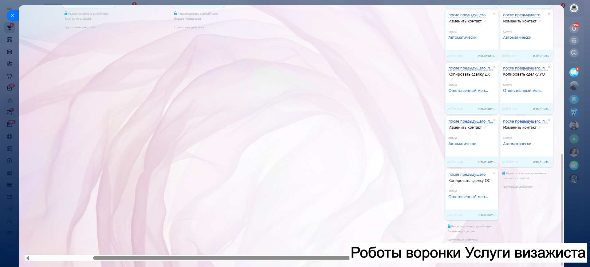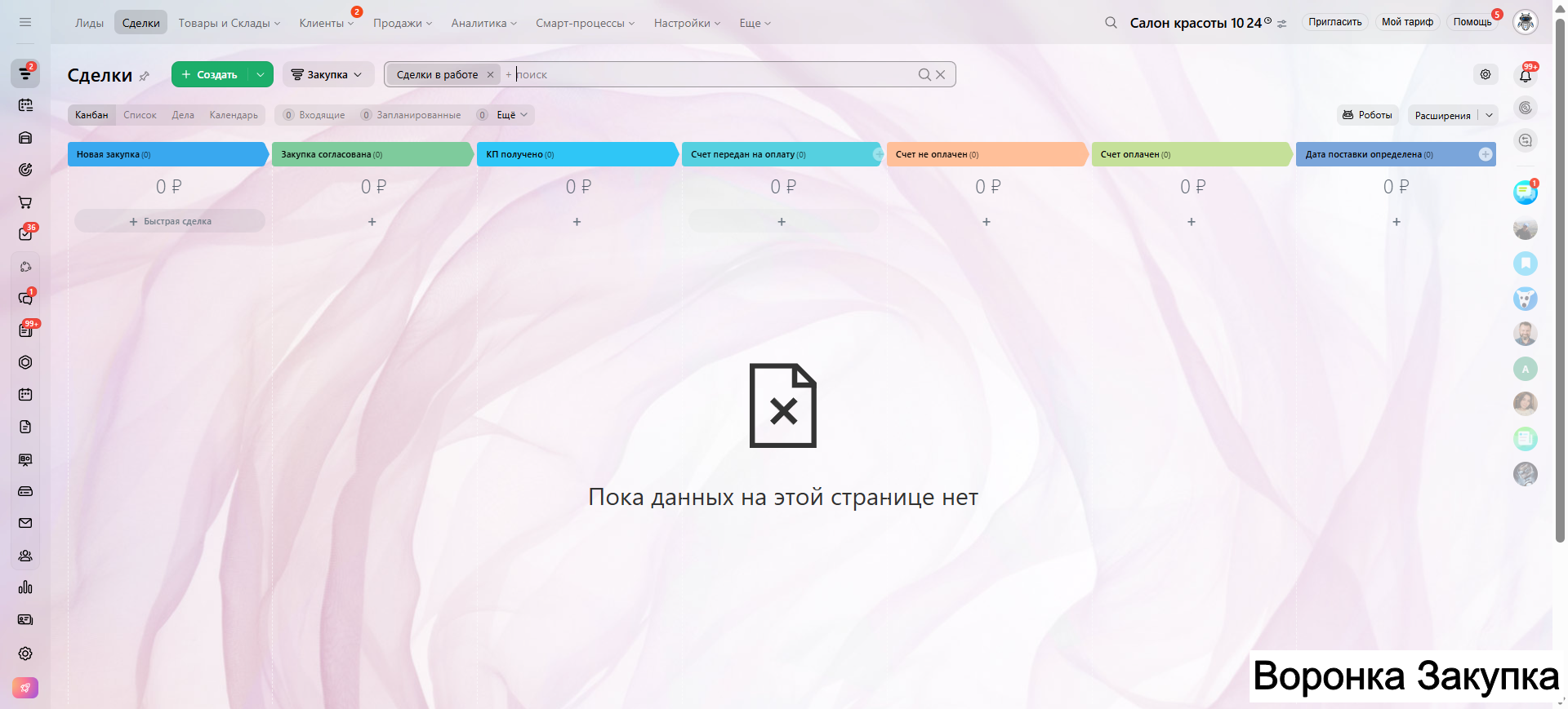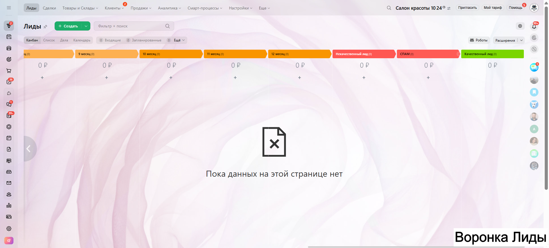 Видео инструкция по работе с готовой CRM для салона красоты в RuTube: https://rutube.ru/video/a06b4ef58924b4aa085482bf07d6df21/