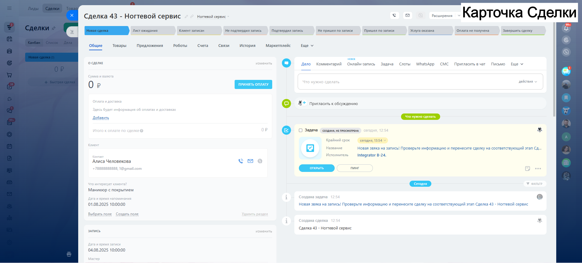 - Стадия Клиент записан