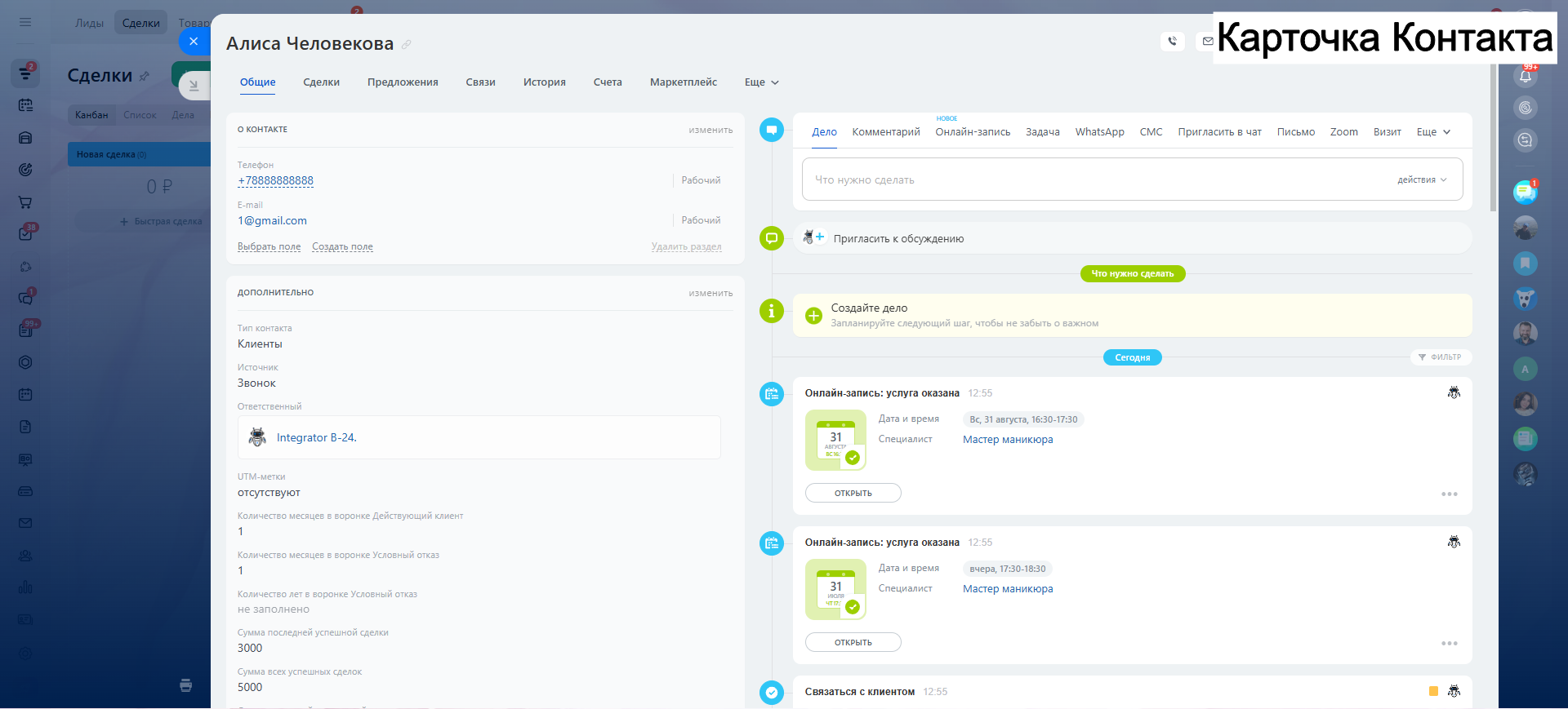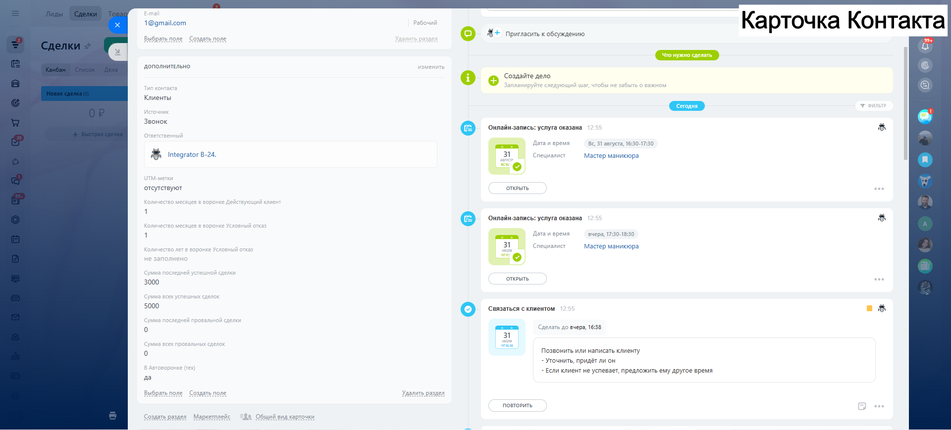 Видео инструкция по работе с готовой CRM для салона красоты в YouTube: https://youtu.be/q8SNvgkGDds