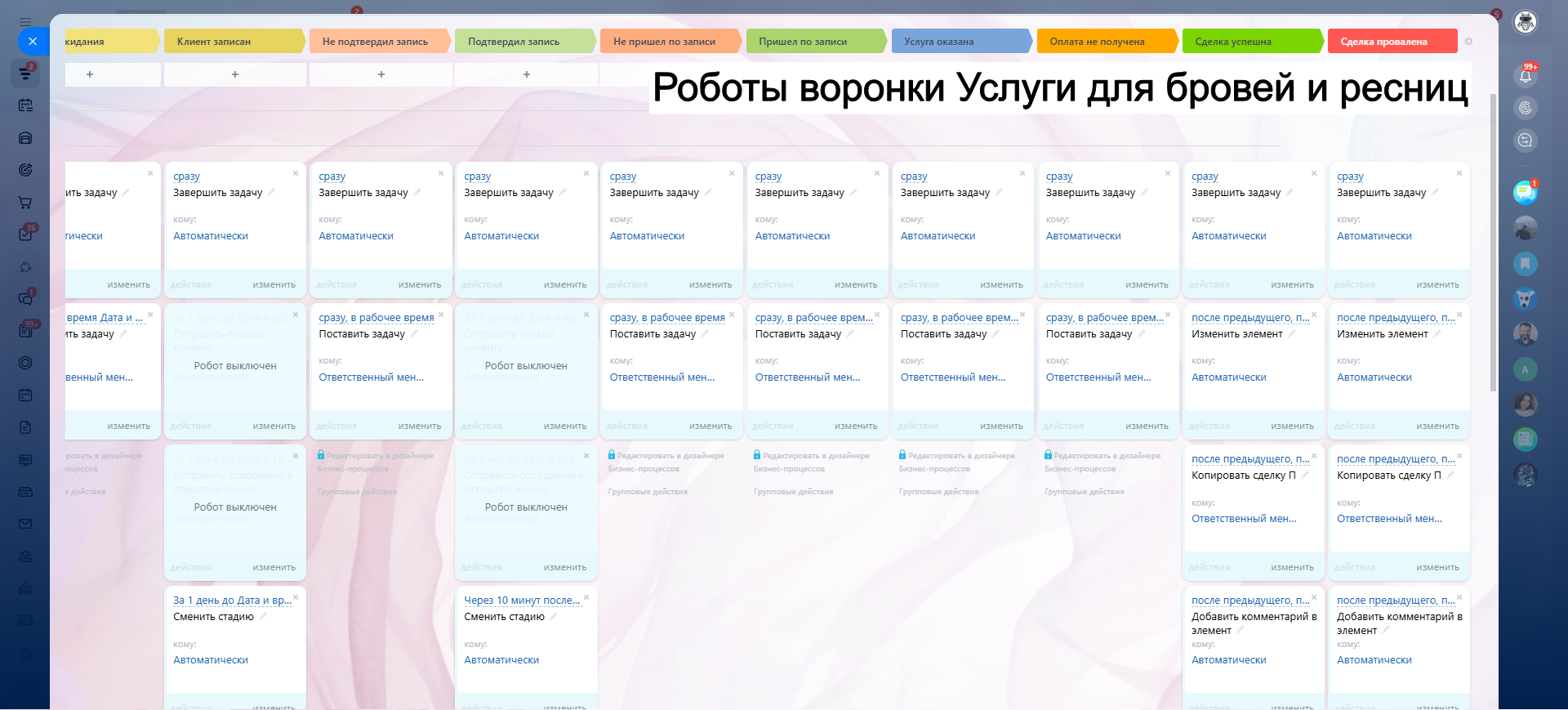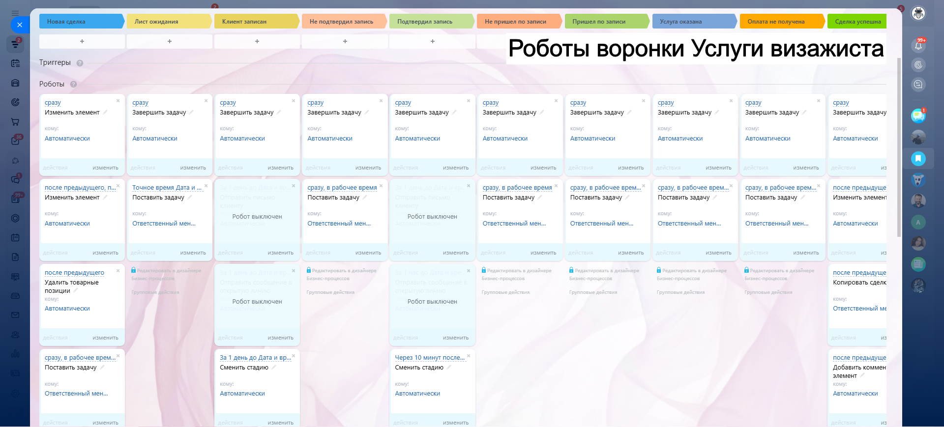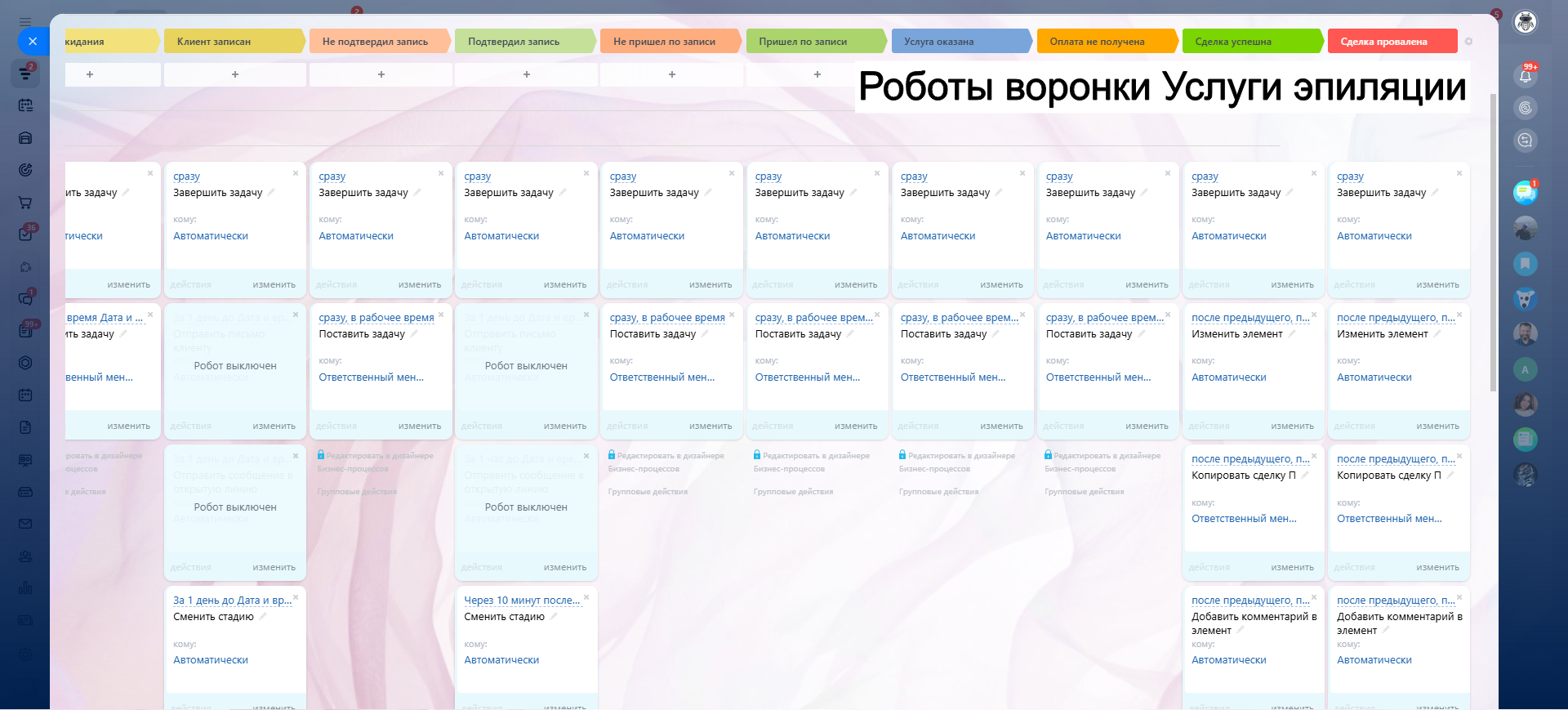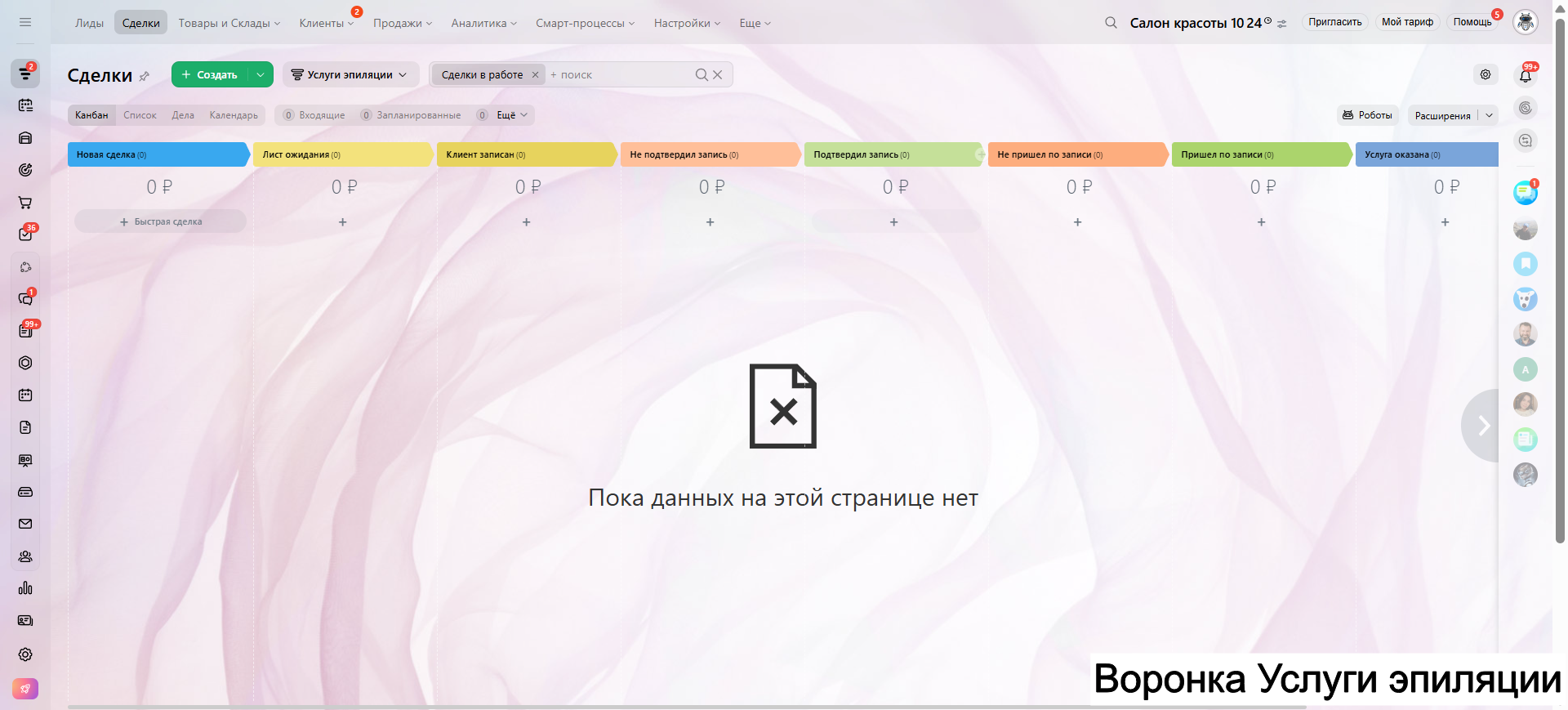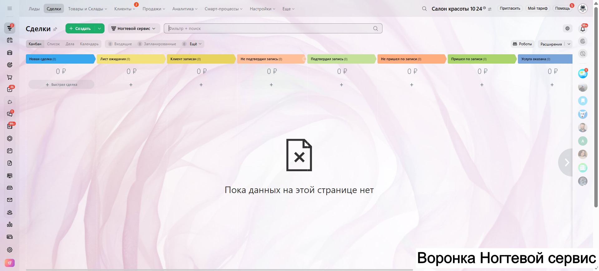 САЛОН КРАСОТЫ - ГОТОВАЯ CRM система: 10 готовых воронок: запись, напоминания, обратная связь, повторные визиты и контроль оплат.