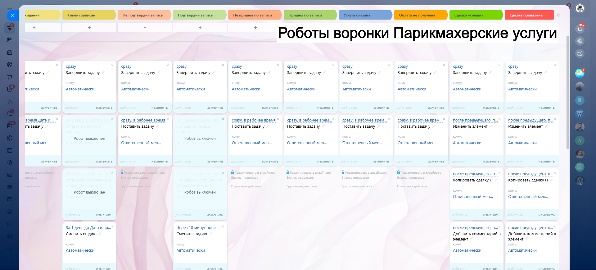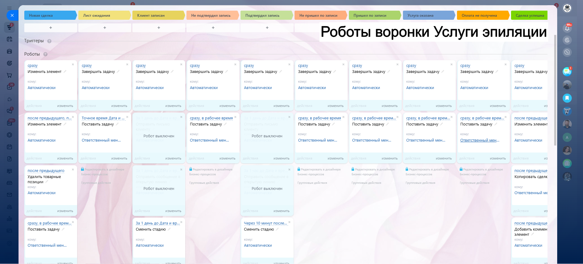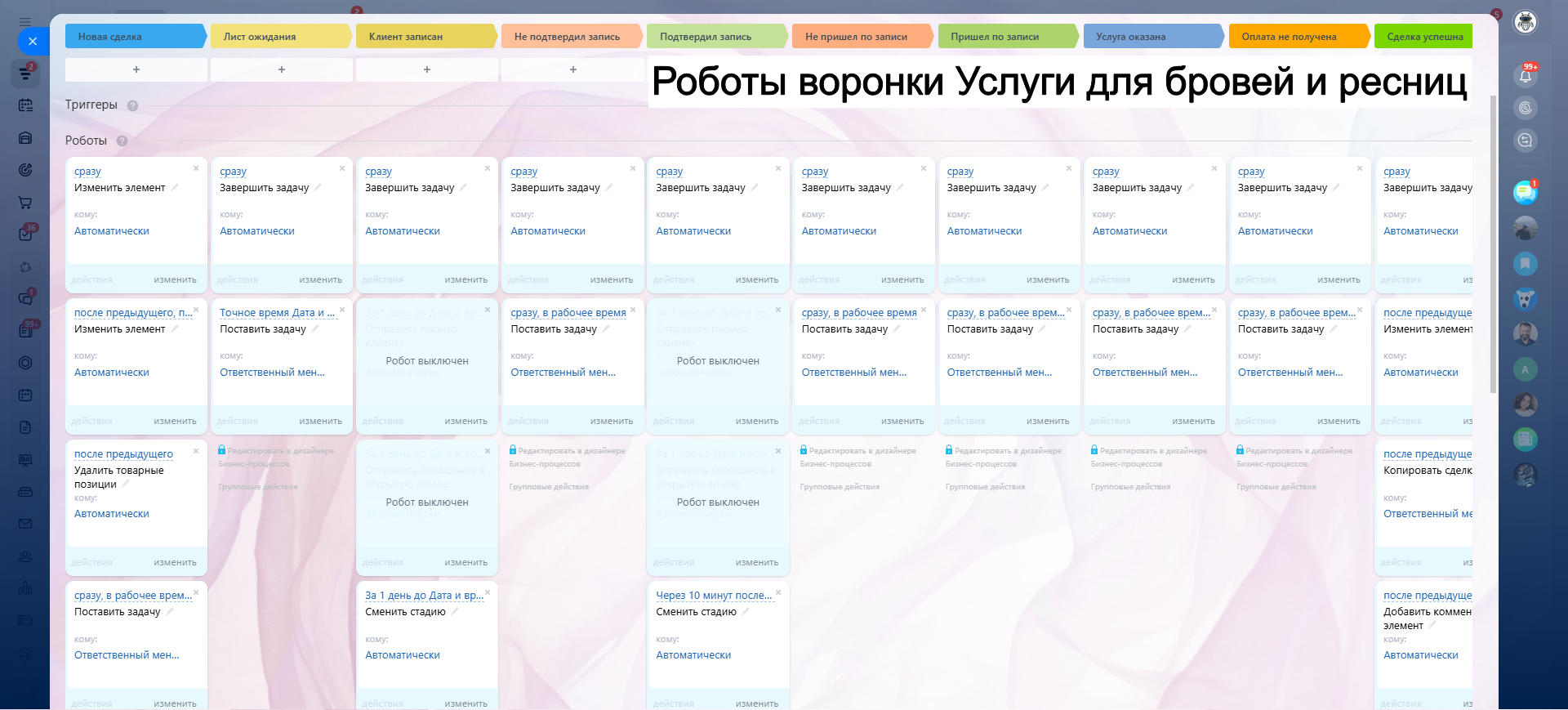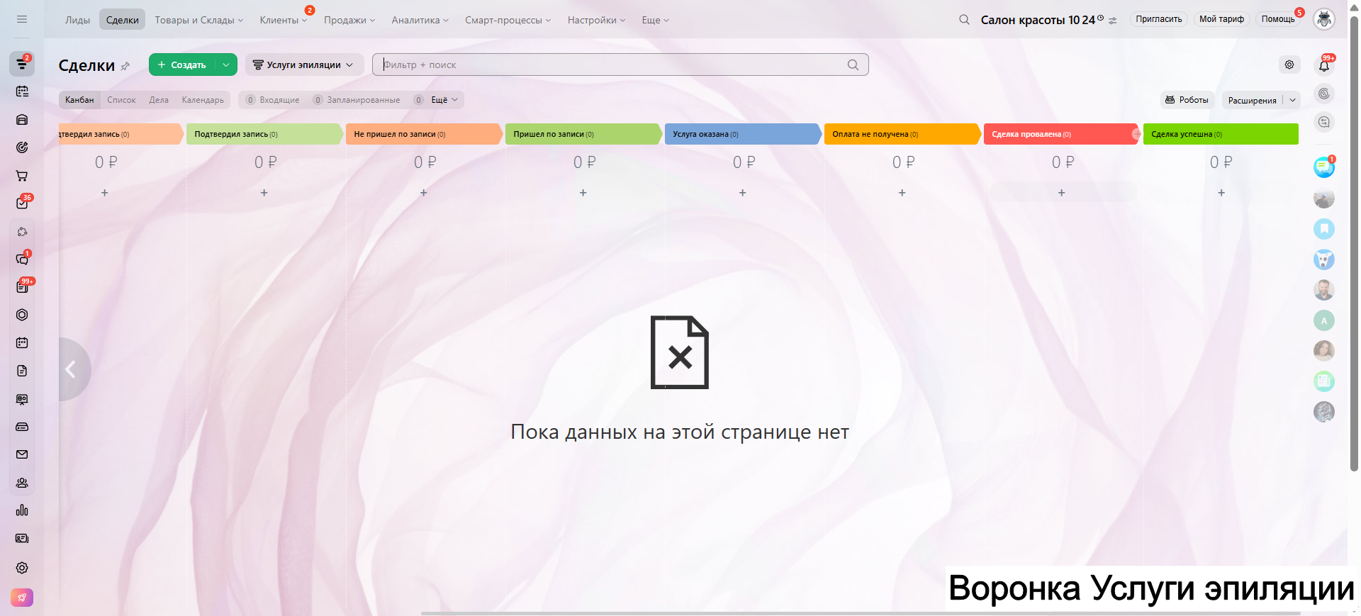 САЛОН КРАСОТЫ - ГОТОВАЯ CRM система: 10 готовых воронок: запись, напоминания, обратная связь, повторные визиты и контроль оплат.