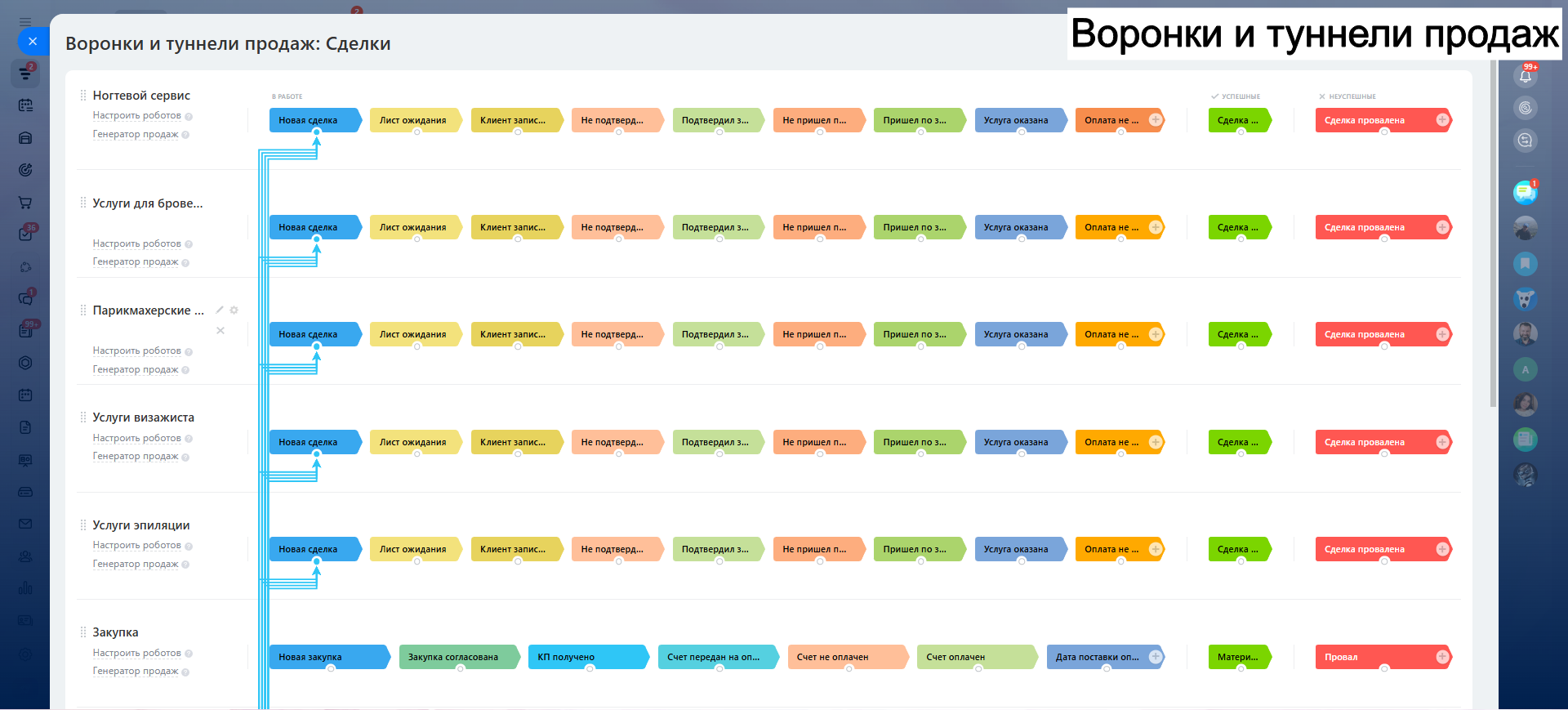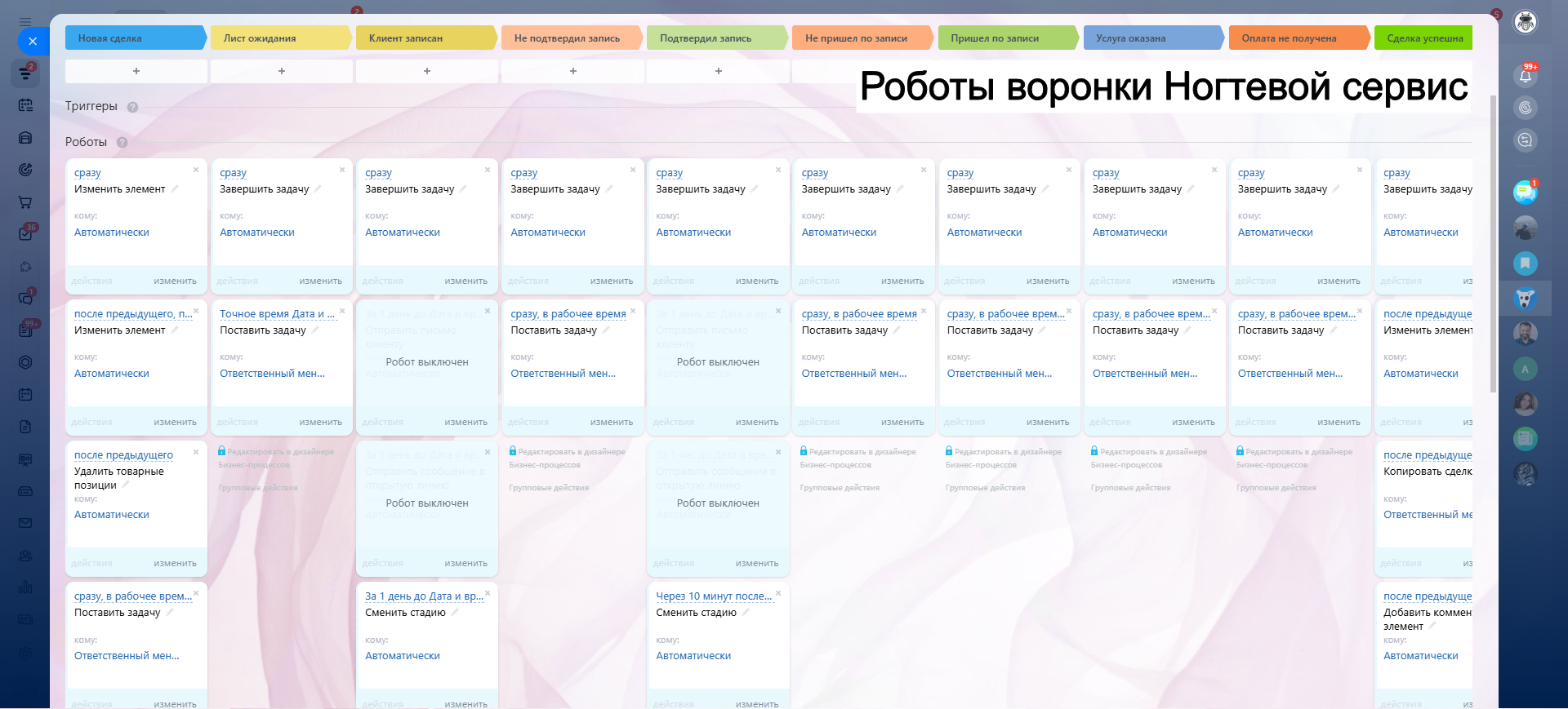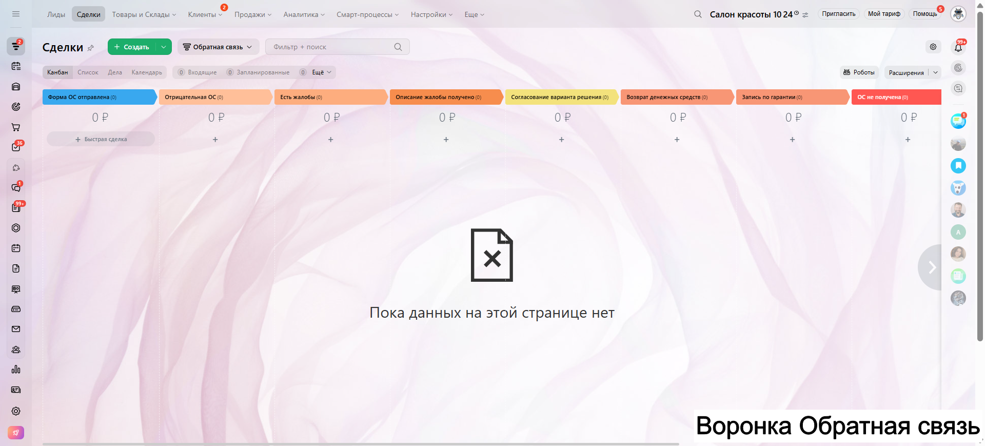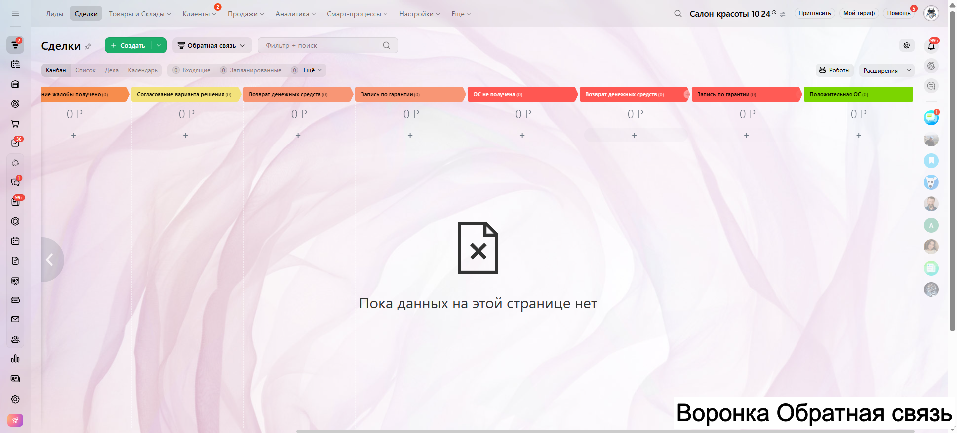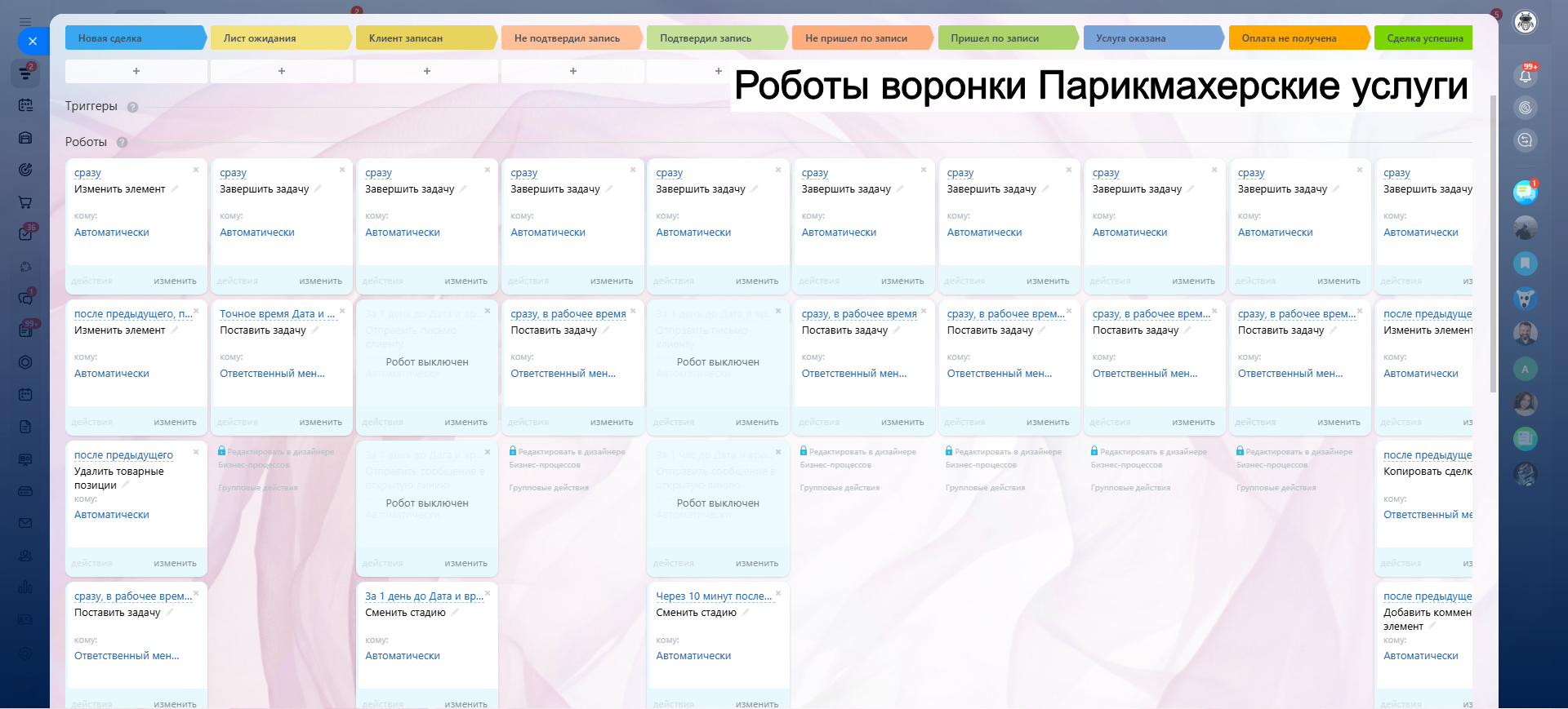 САЛОН КРАСОТЫ - ГОТОВАЯ CRM система: 10 готовых воронок: запись, напоминания, обратная связь, повторные визиты и контроль оплат.