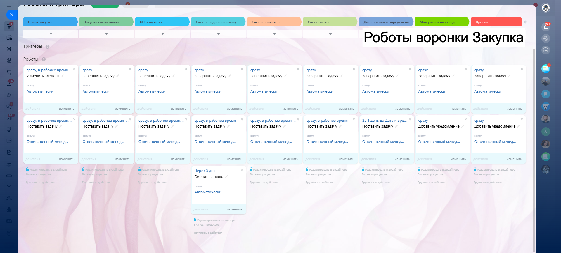 - Стадия Закупка согласована