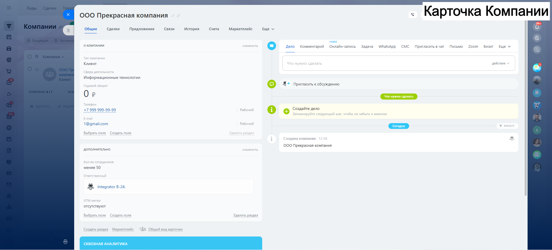 - Поле Название компании