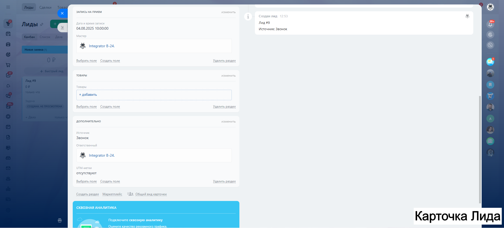 - Поле Название лида