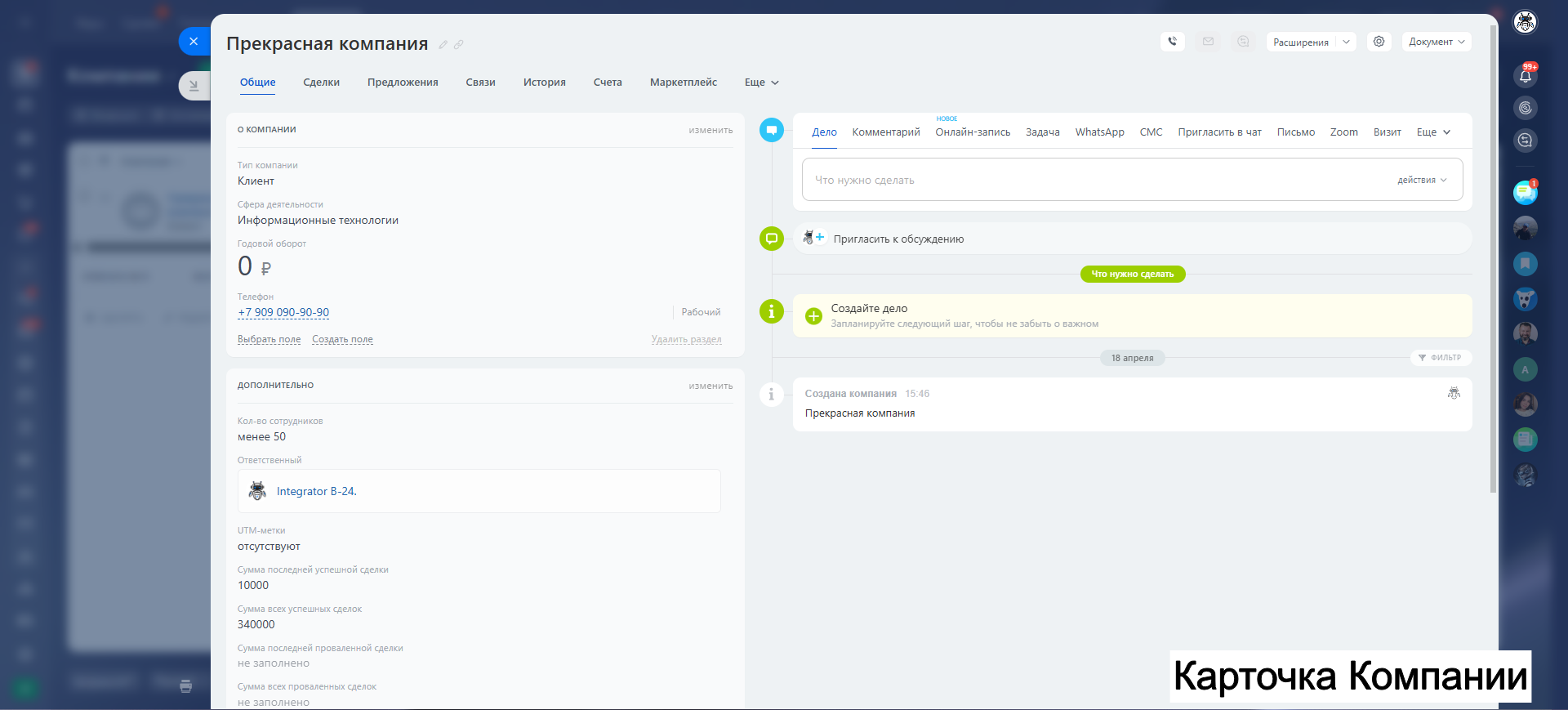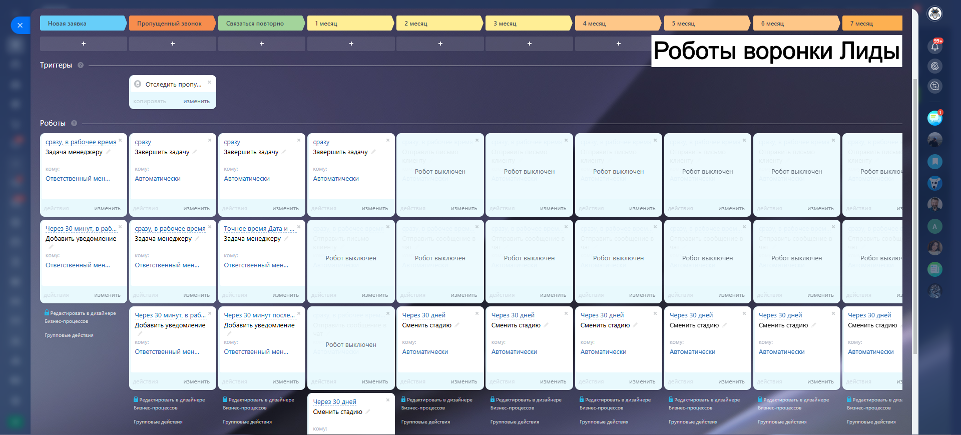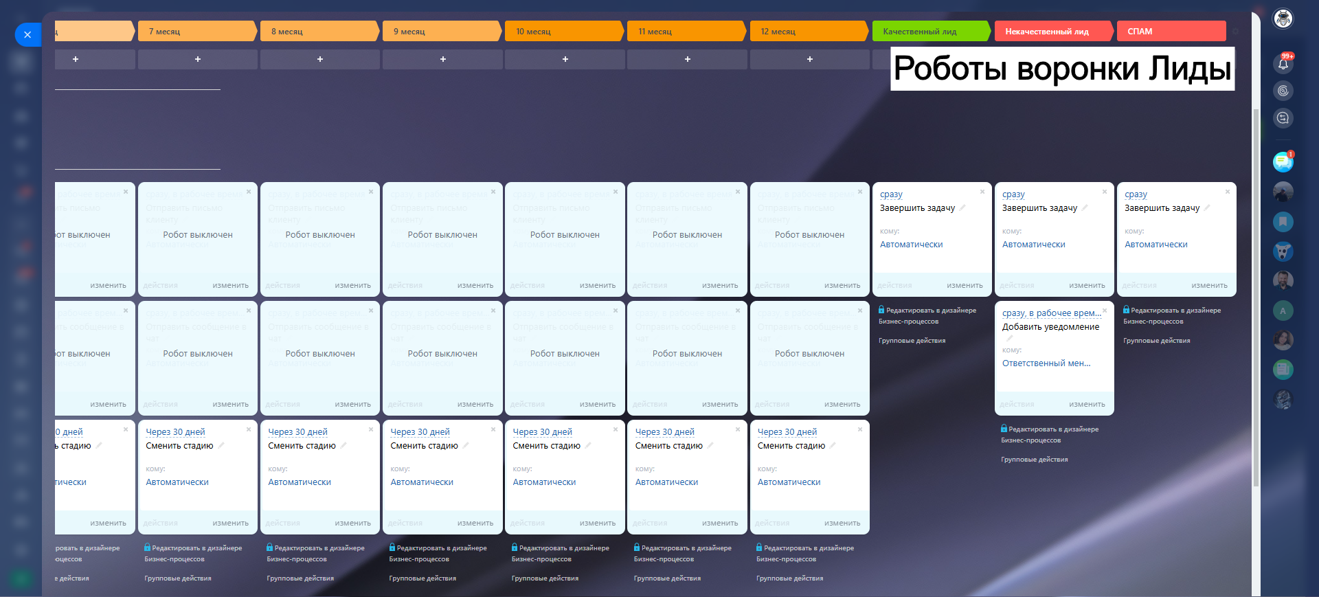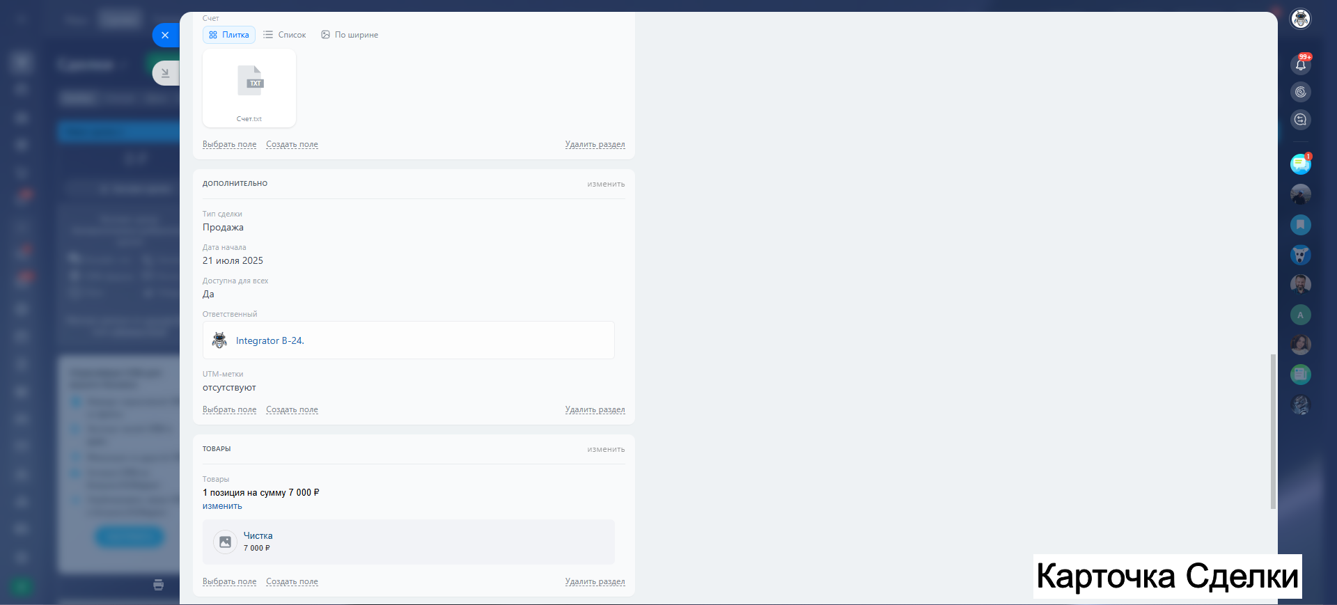 - Создание сделок. Разделение качественных и некачественных лидов, прозрачный учёт.