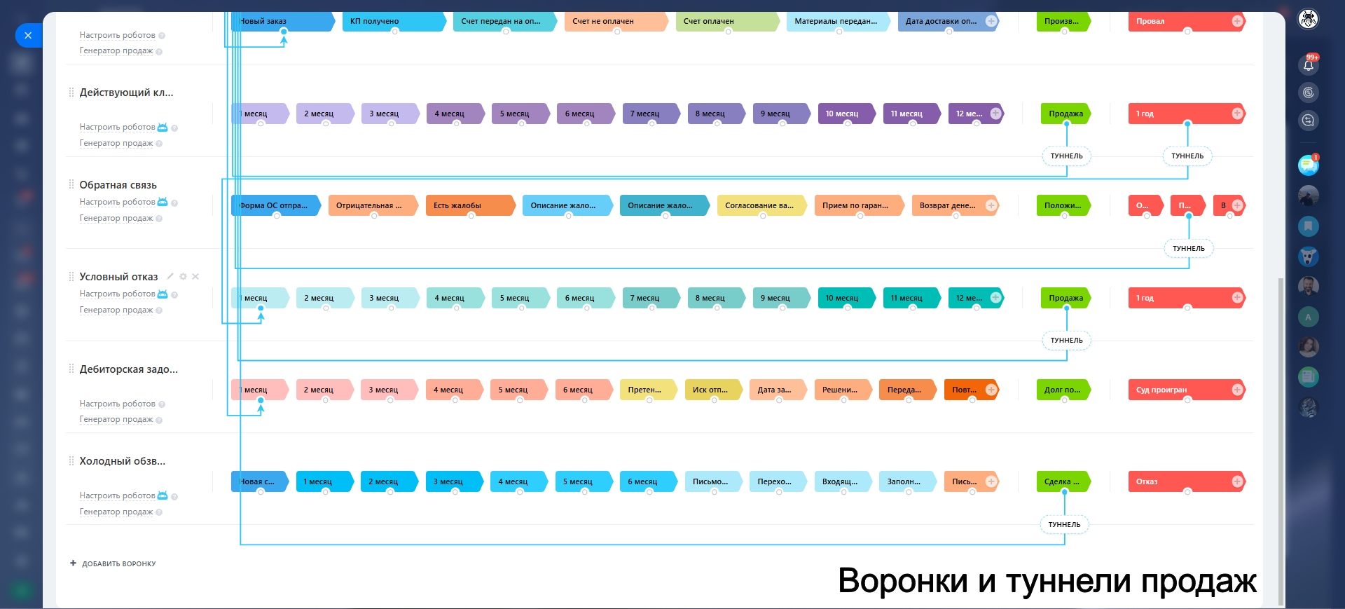 - Воронка продаж. Контроль подтверждения записи, договоров, счетов и оплат.