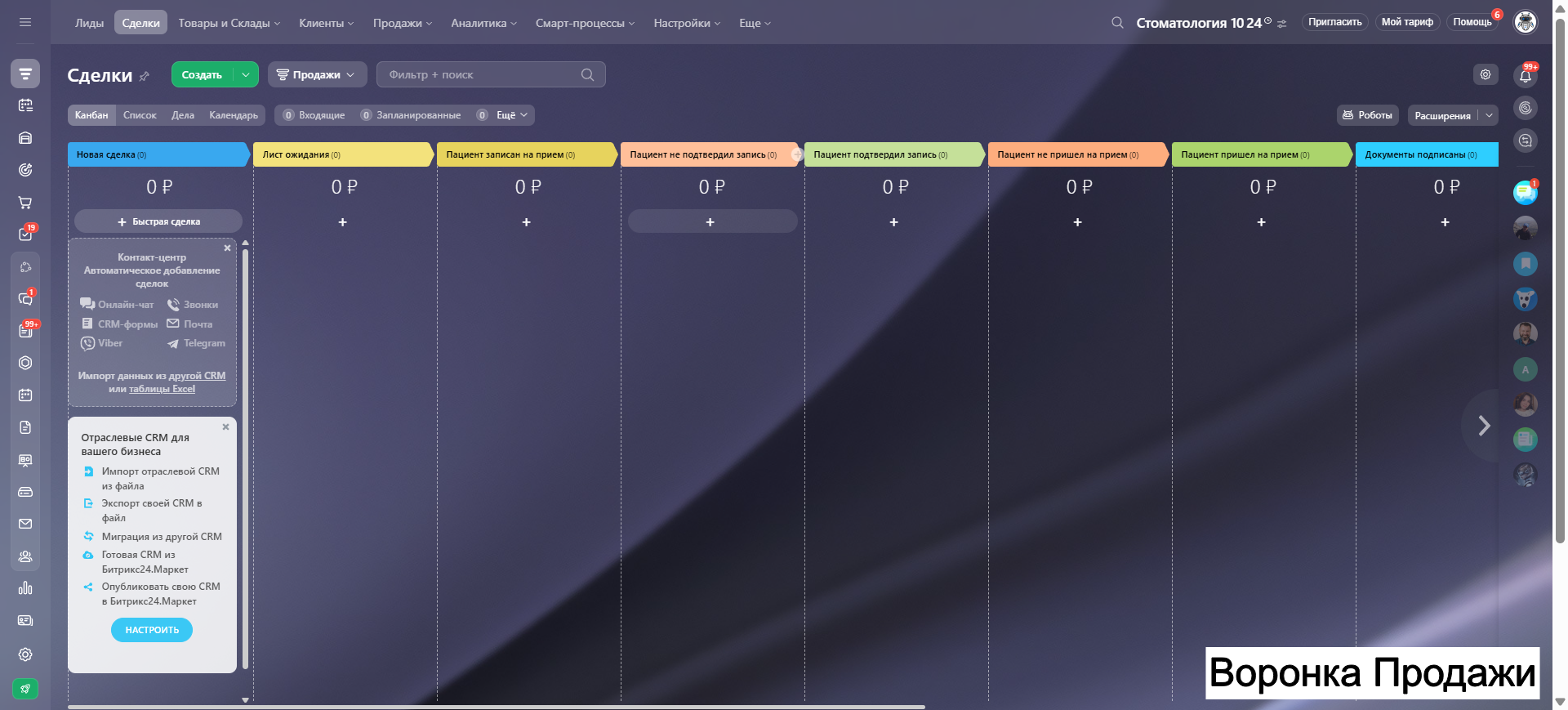 СТОМАТОЛОГИЯ - ГОТОВАЯ CRM система: 10 воронок - автоматизация приёма пациентов, напоминаний, оплаты, лаборатории и обратной связи