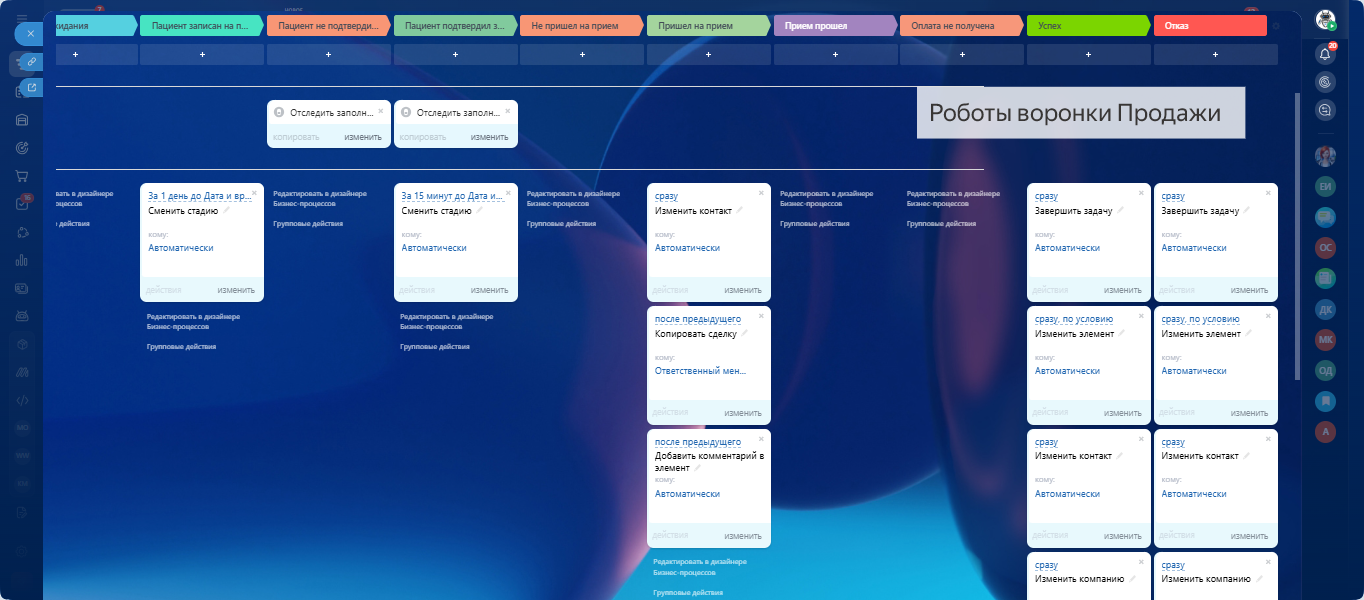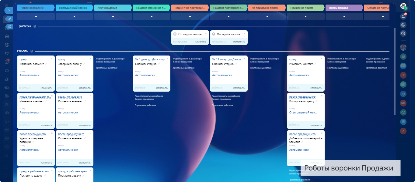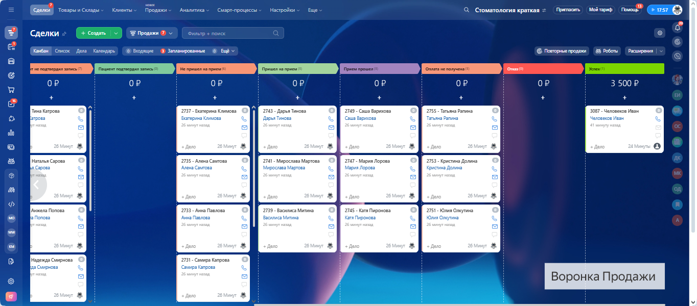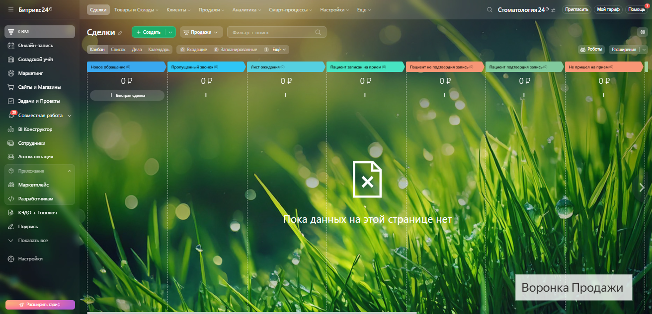 СТОМАТОЛОГИЯ - ГОТОВАЯ CRM система: 2 воронки автоматизации - приёмы и продажи. Запись пациентов, напоминания, автоматическое формирование договоров, контроль оплат, повторные записи.