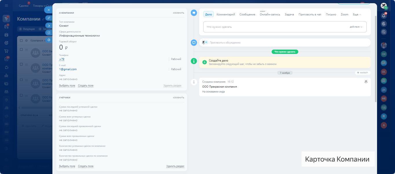 - Поле Количество провальных сделок по компании