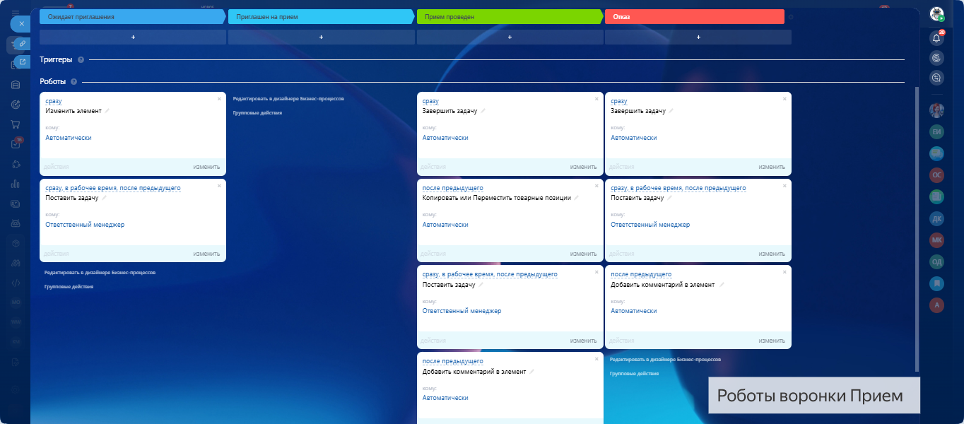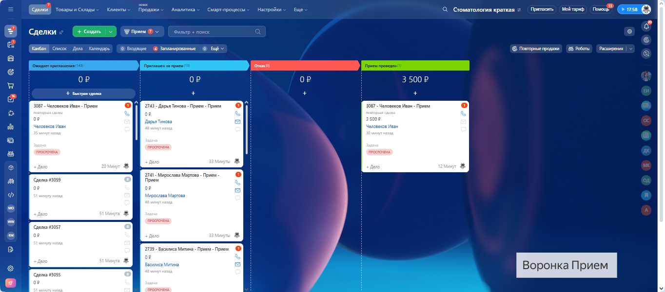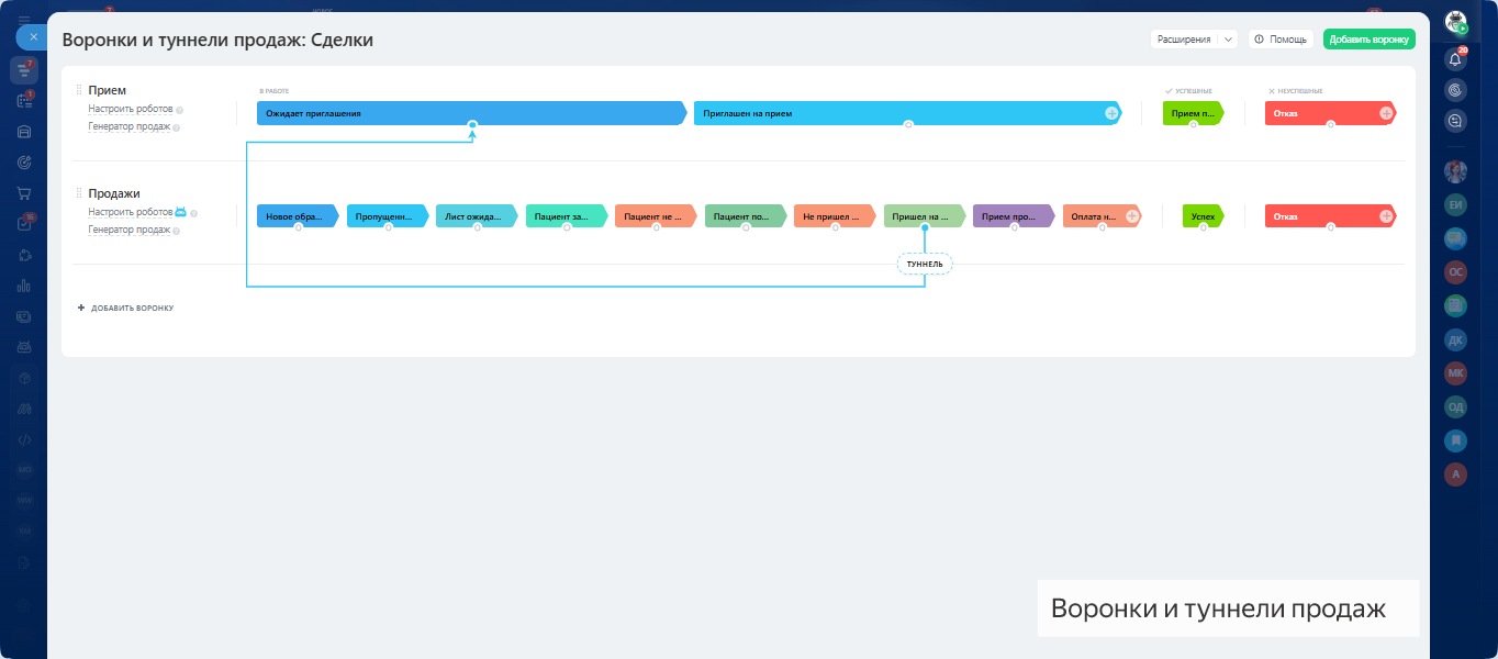 - 2 готовые воронки: продажи и приёмы