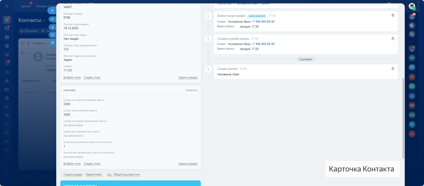 - Поле Количество провальных сделок по контакту