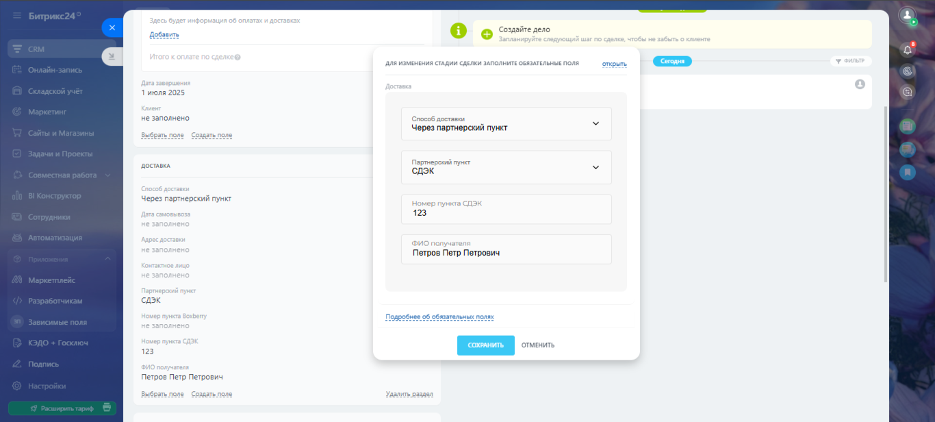 Приложение «ЗАВИСИМЫЕ ПОЛЯ» позволяет гибко управлять отображением и обязательностью полей в сделках, лидах, компаниях и контактах. Вы можете настраивать автоматическое скрытие или показ полей в зависимости от выбранных условий, делая работу в CRM более удобной и эффективной.