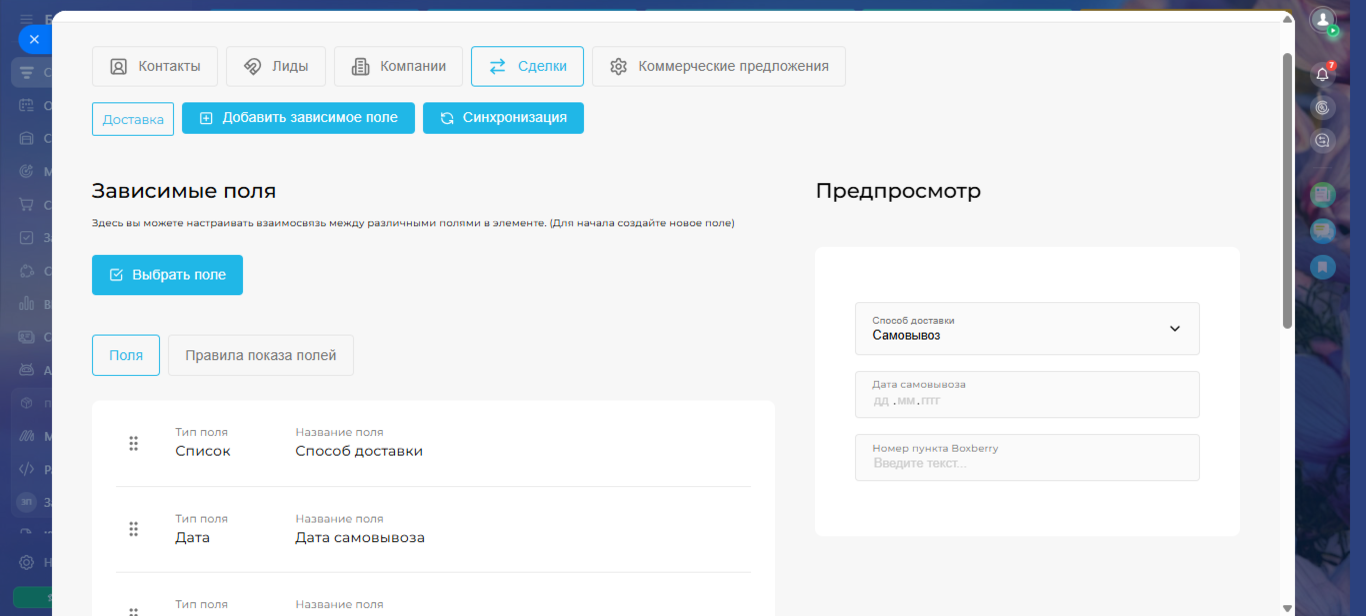ЗАВИСИМЫЕ ПОЛЯ с правилами показа в лидах, сделках, компаниях, контактах