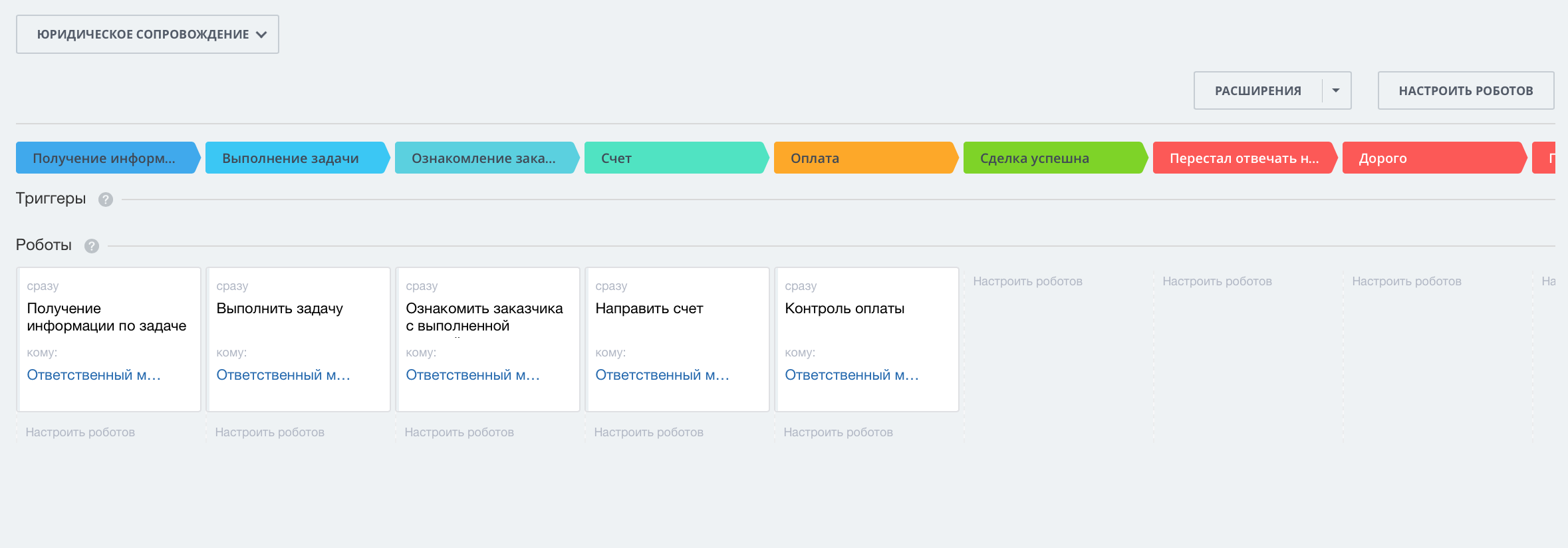 Направление Сделки "Юридическое сопровождение" состоит из следующих этапов: